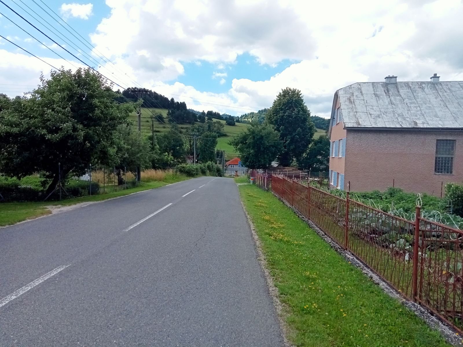 Przechodzę przez miejscowość Wielki Lipnik i kieruję się drogą asfaltową na Veterný vrch. Miejscowość mała, gęsta zabudowa.