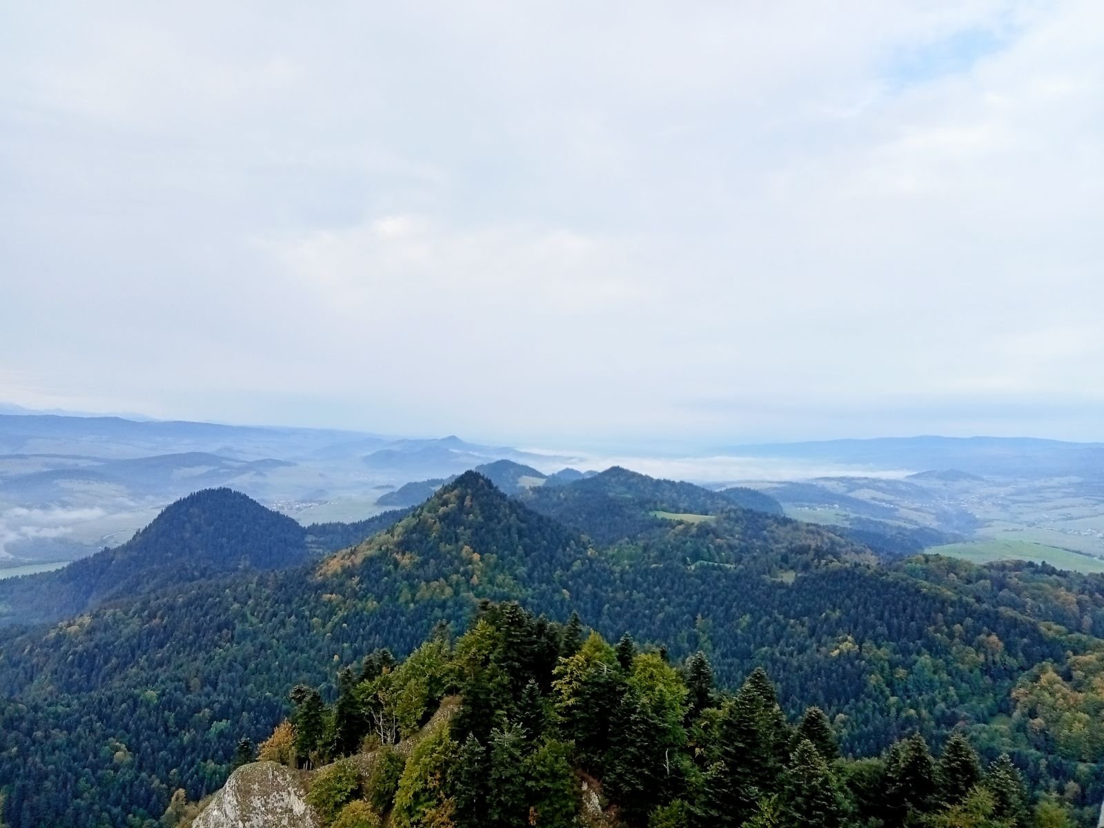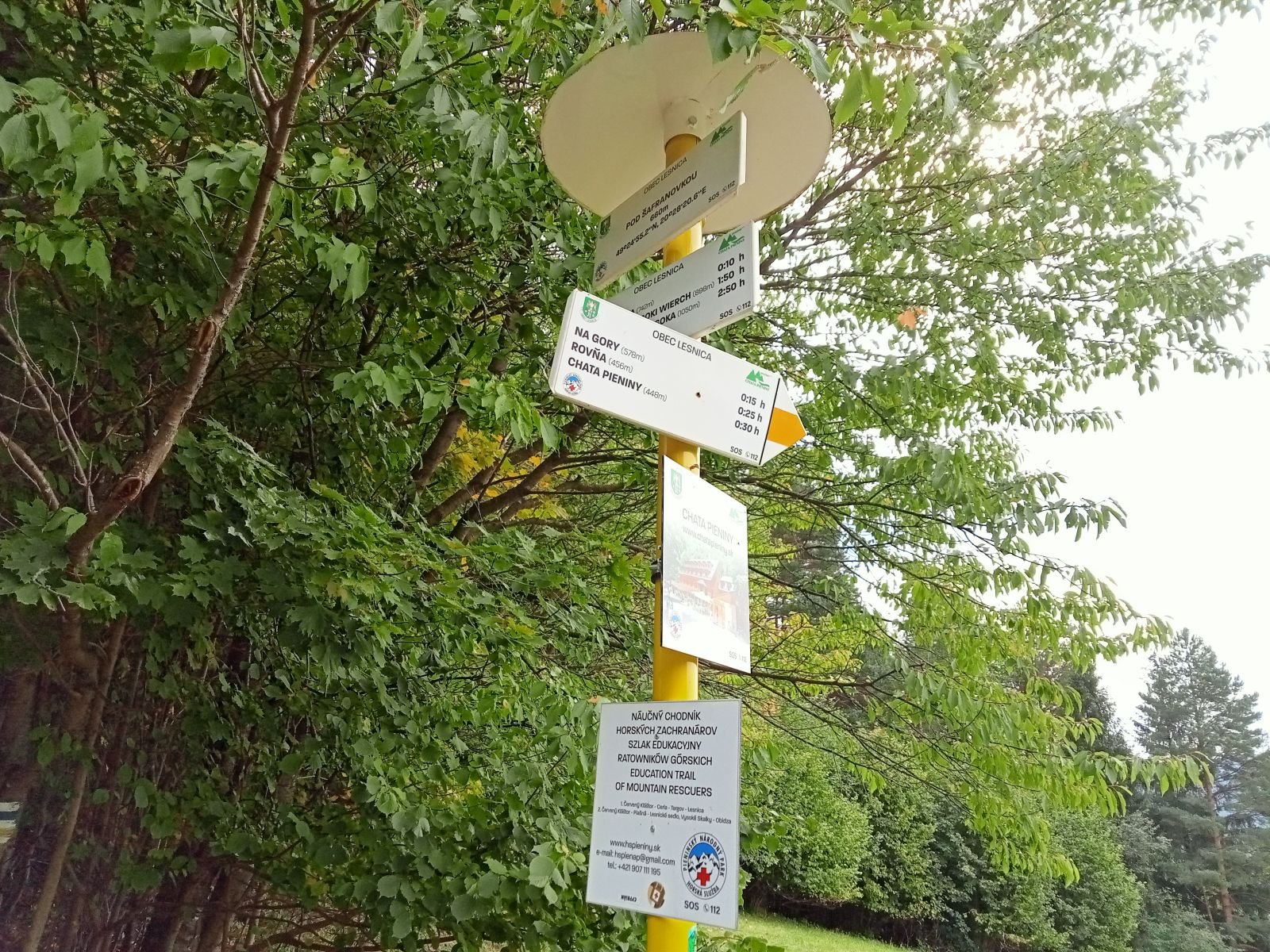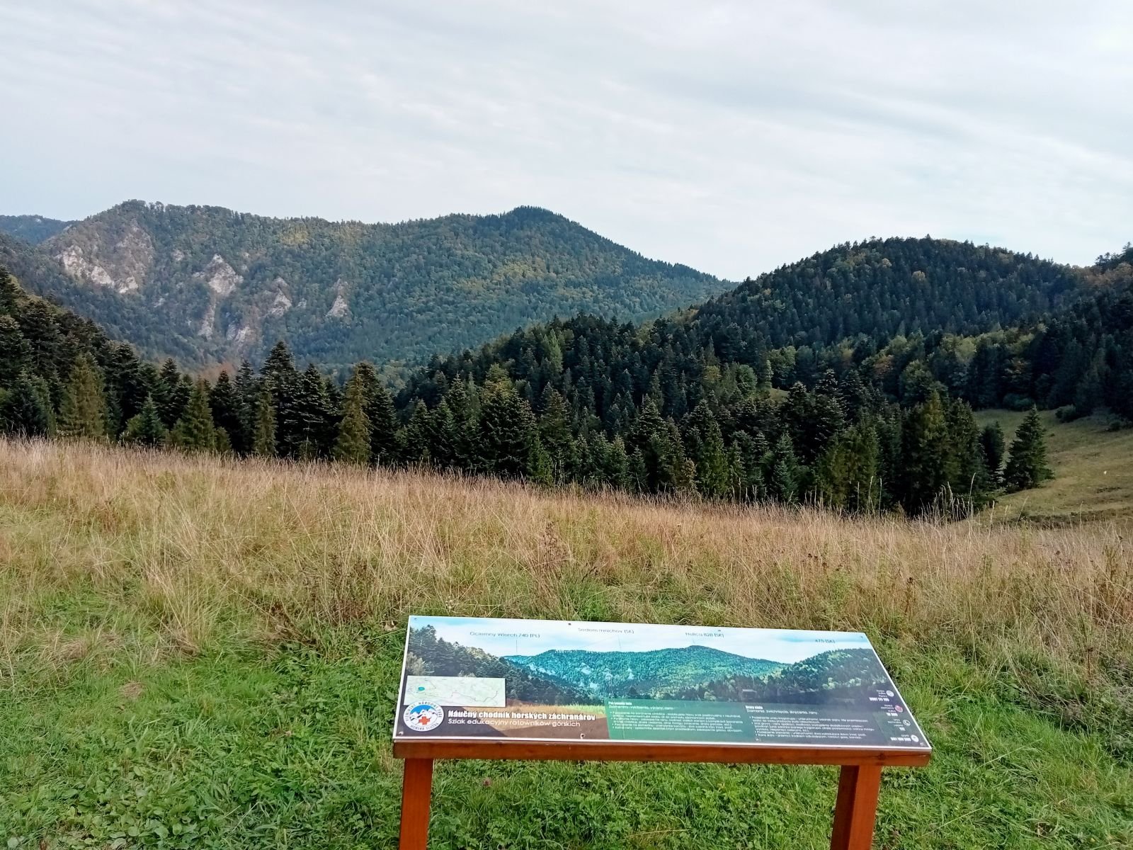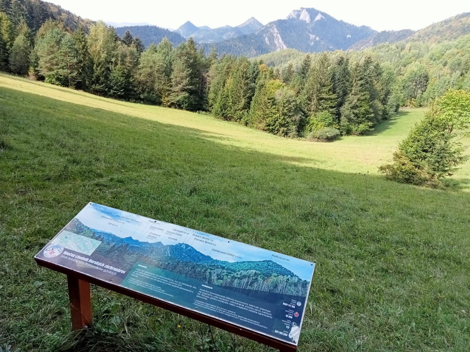 Niesamowity widok na Pieniny, wszystko doskonale opisane na tablicy informacyjnej. Kierujemy się na Przełęcz i schodzimy do Leśnicy.