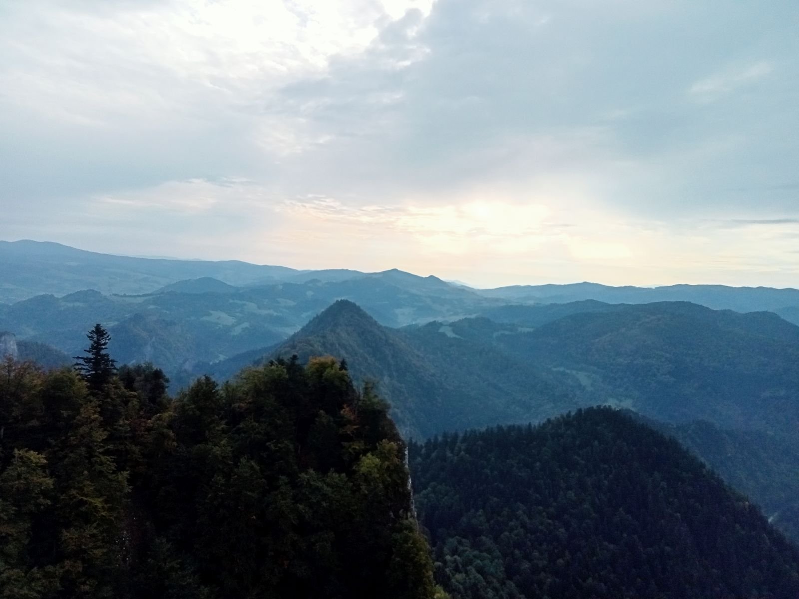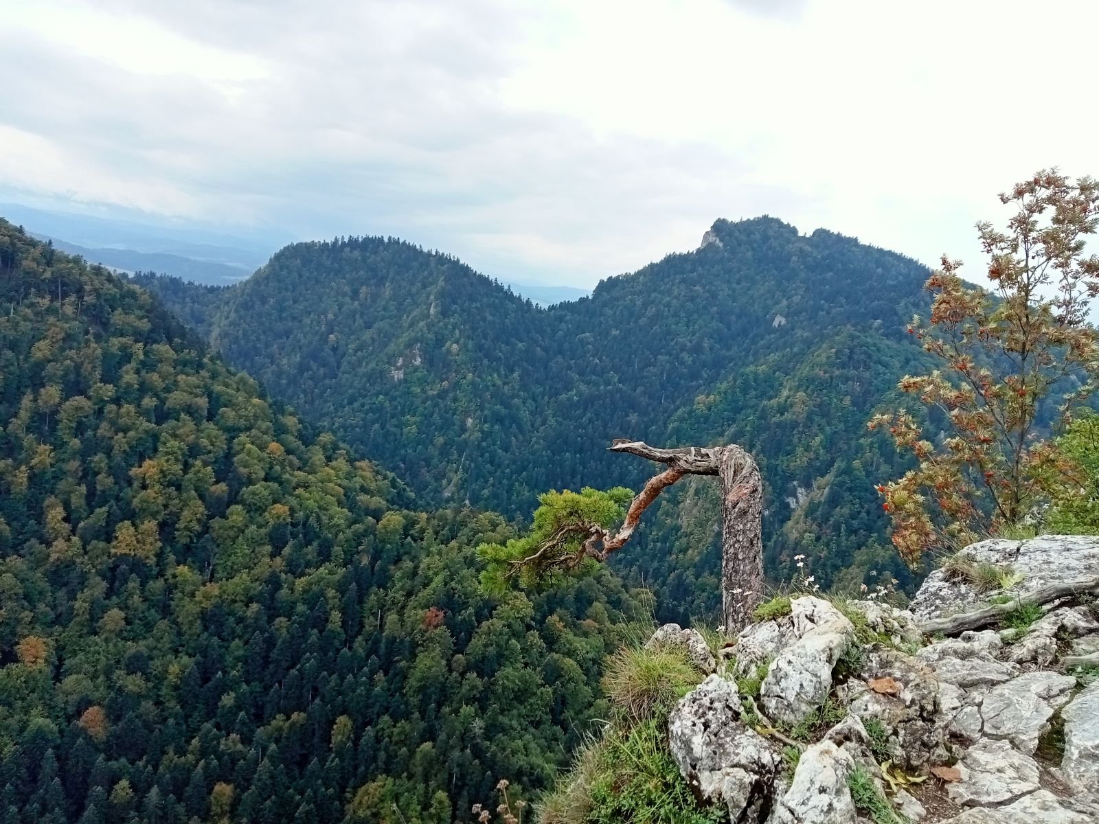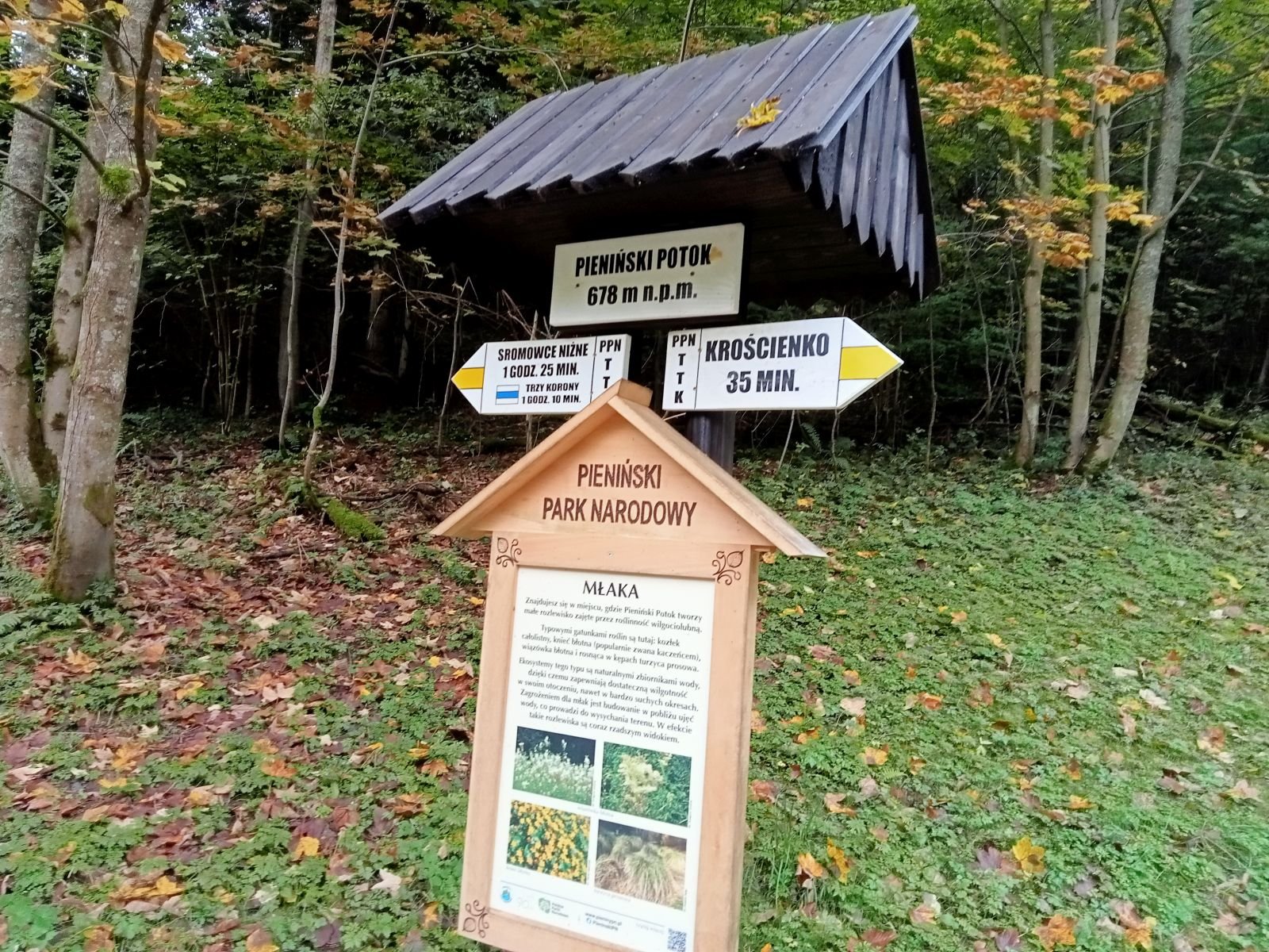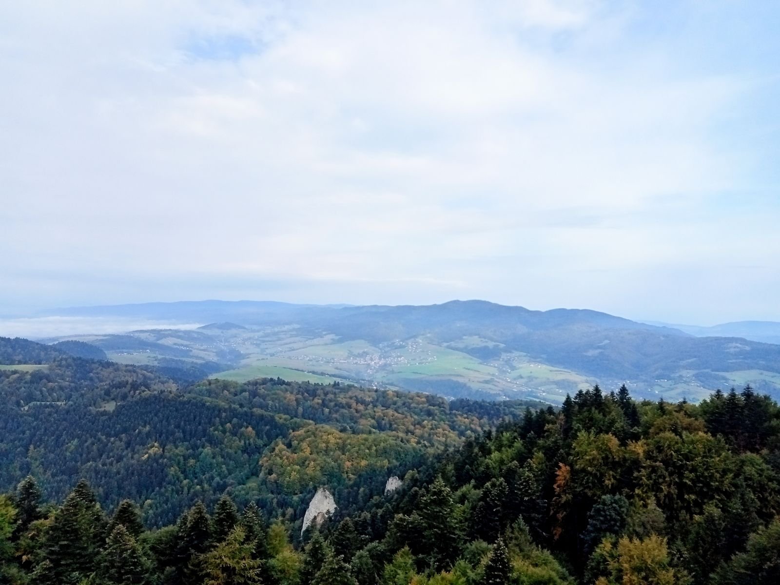 Niesamowity widok na Pieniny, wszystko doskonale opisane na tablicy informacyjnej. Kierujemy się na Przełęcz i schodzimy do Leśnicy.