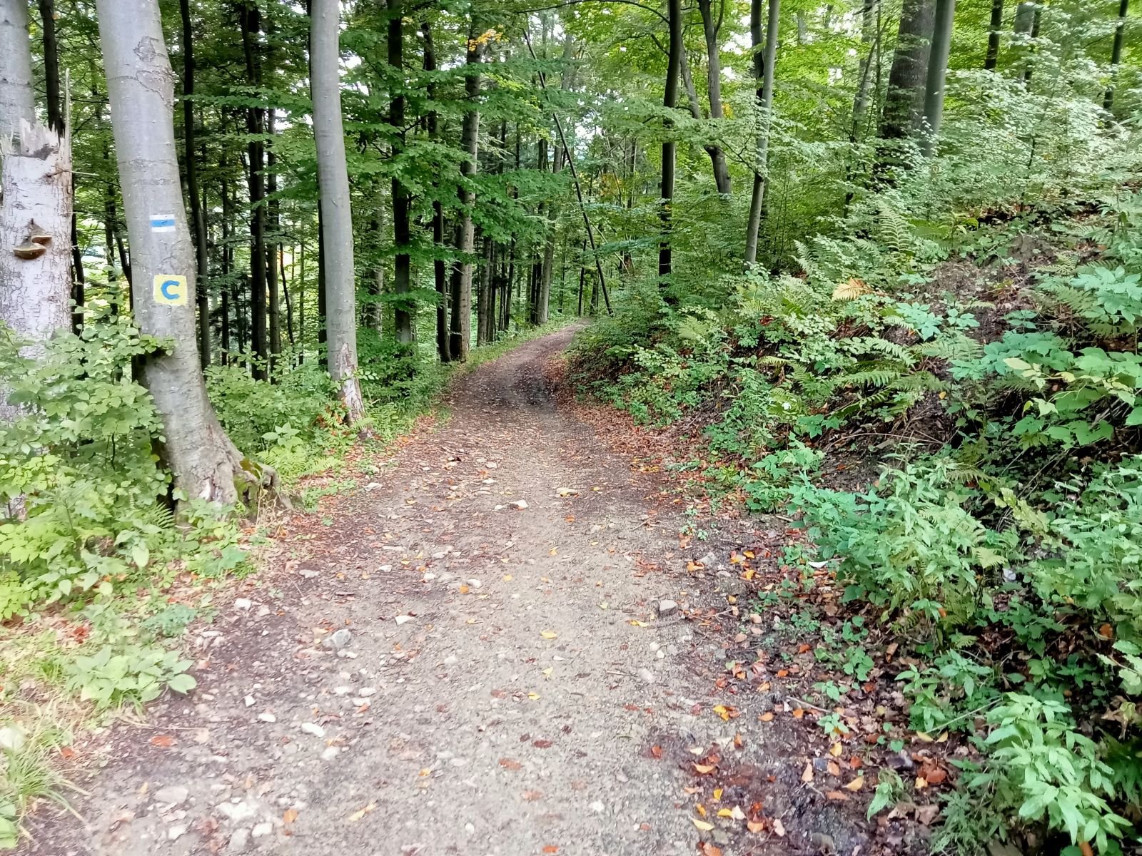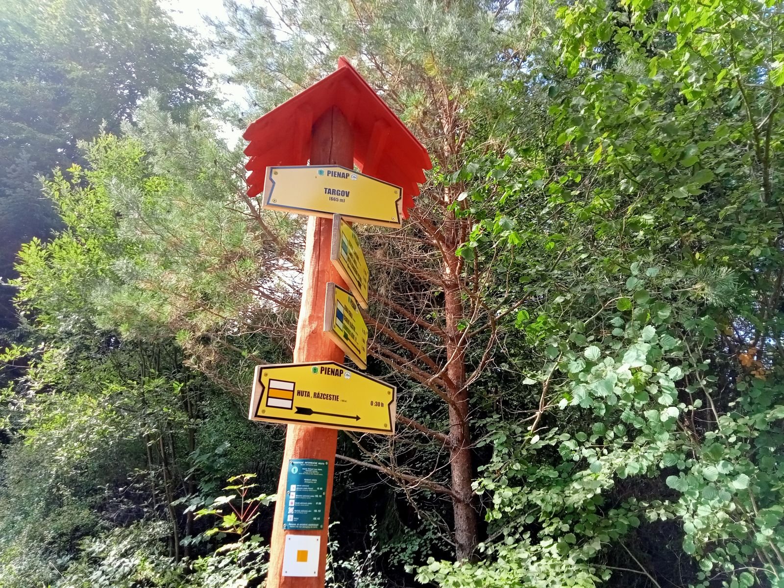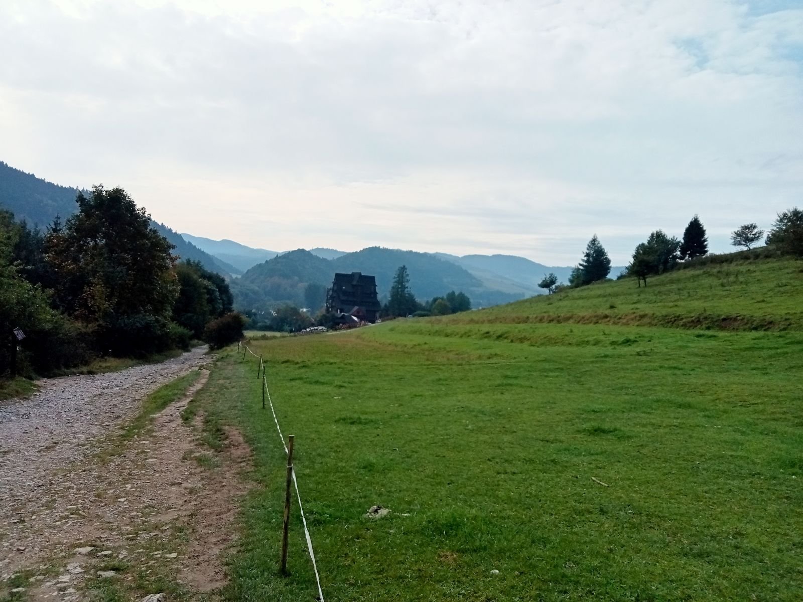 Jesteśmy przy Centrum turystycznym, obok schronisko turystyczne (Chata Pieniny). Wyszło w końcu długo oczekiwane słońce, turystów przy schronisku nie brakuje. Z tego miejsca cofamy się ok 300 metrów i wybieramy żółty szlak na Palenicę, choć do Szczawnicy szybciej byśmy doszli idąc dalej niebieskim szlakiem. Podejście na Palenicę dość łagodne, nie ma tragedii.