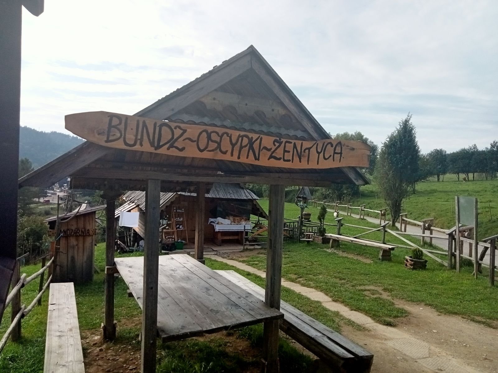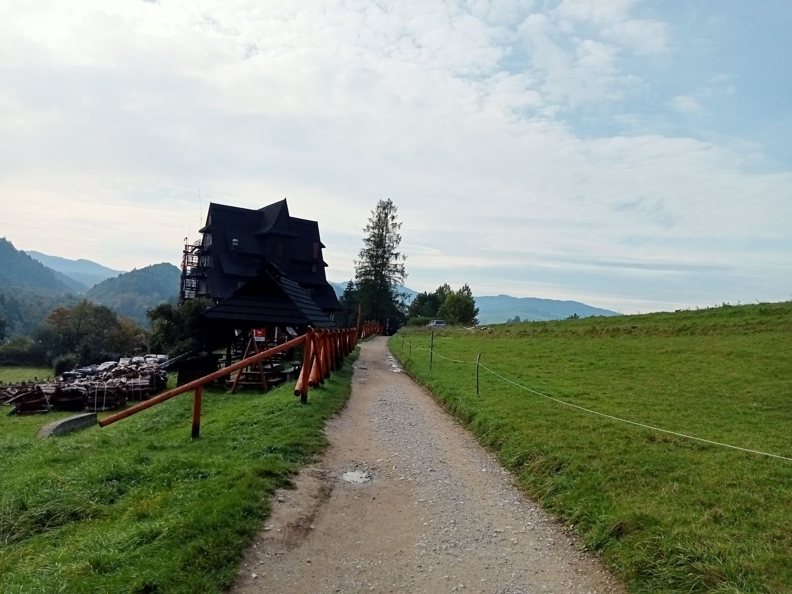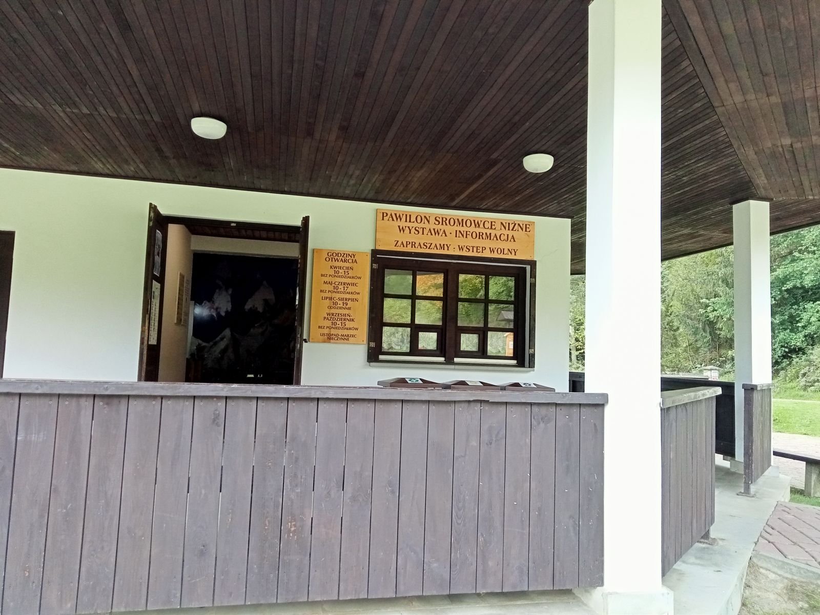 Następne mijamy Pawilon Sromowce Niżne z bezpłatną wystawą przyrodniczą i widoczną na zdjęciu bacówkę, 200 metrów dalej spotykamy byka, który stoi na drodze asfaltowej, mamy szczęście do takich przygód ( filmik na naszym profili facebookowym)