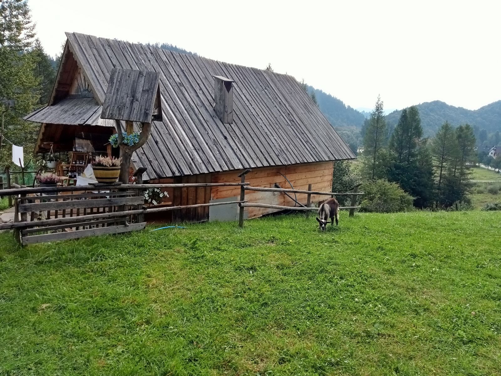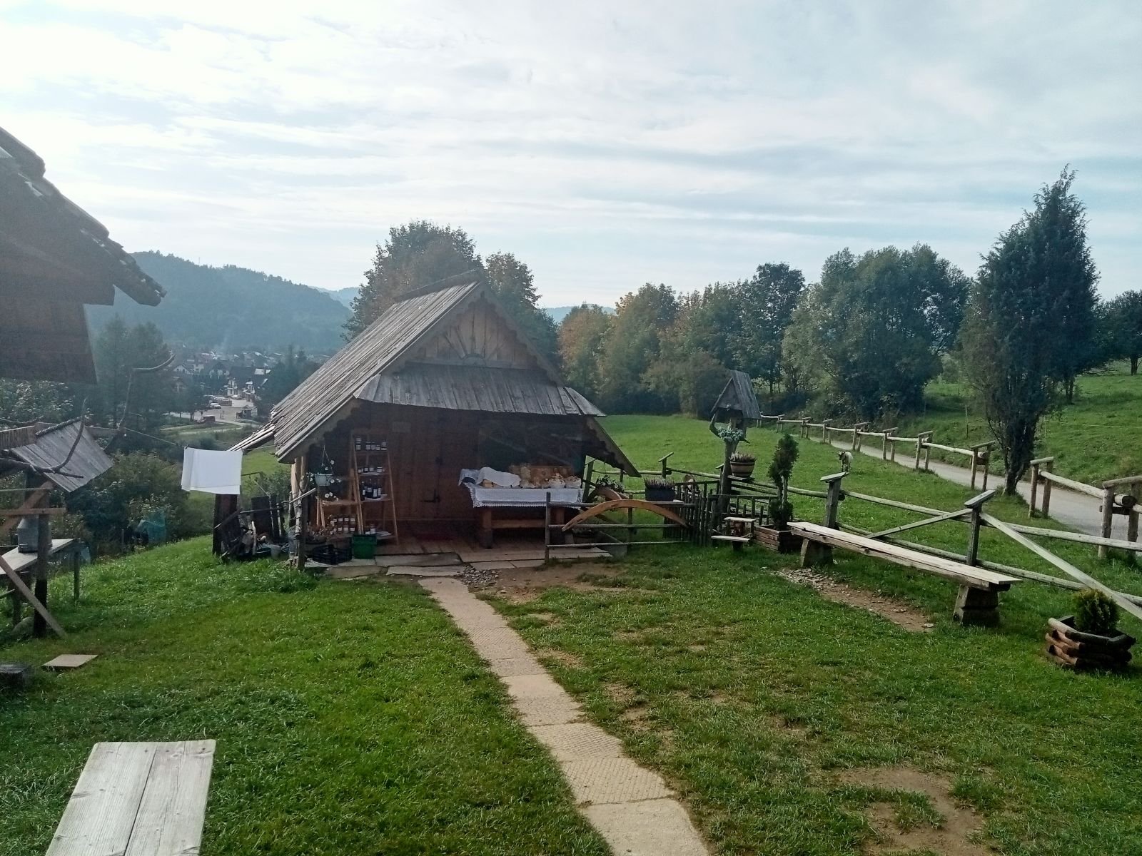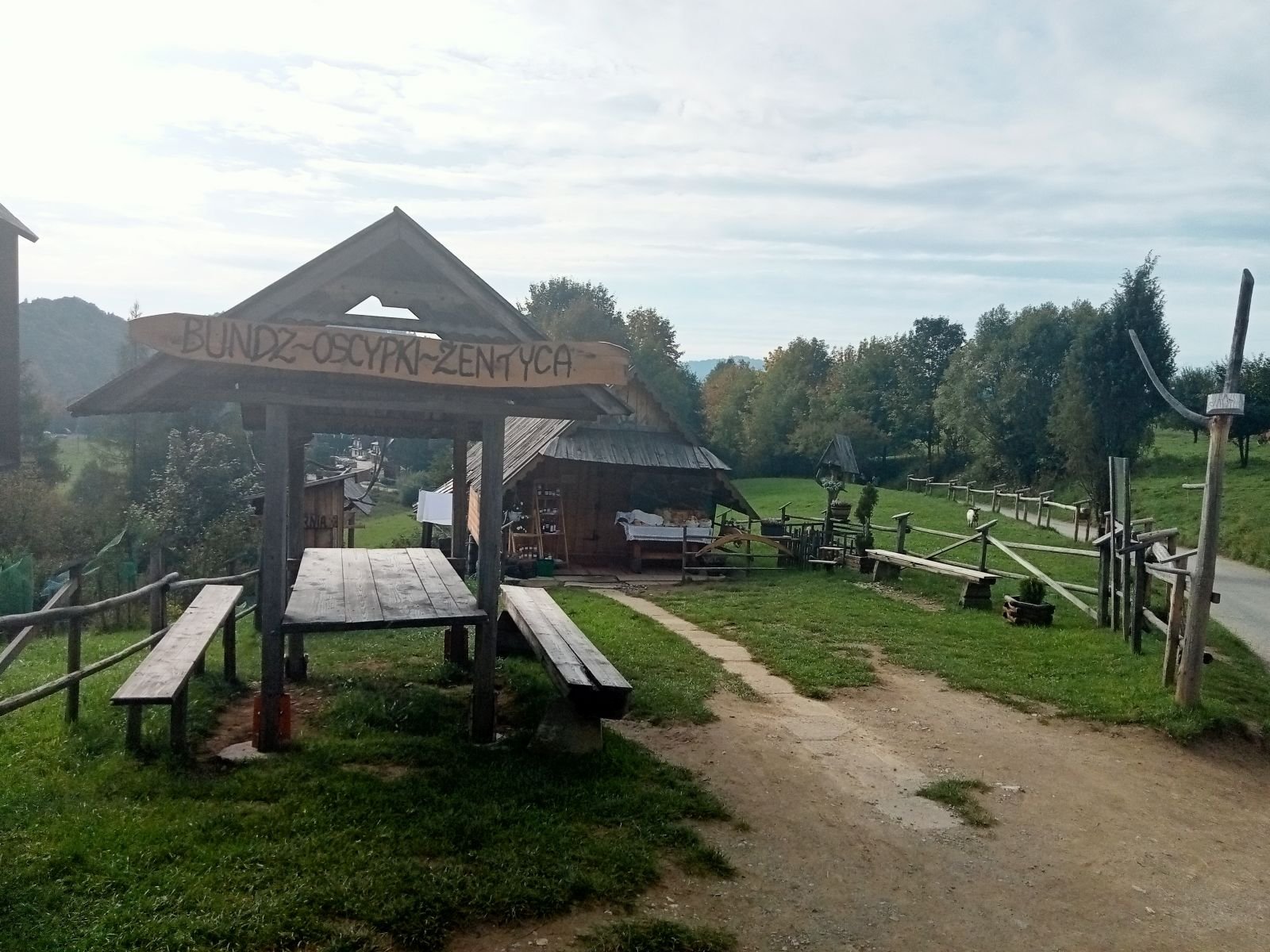 Następne mijamy Pawilon Sromowce Niżne z bezpłatną wystawą przyrodniczą i widoczną na zdjęciu bacówkę, 200 metrów dalej spotykamy byka, który stoi na drodze asfaltowej, mamy szczęście do takich przygód ( filmik na naszym profili facebookowym)