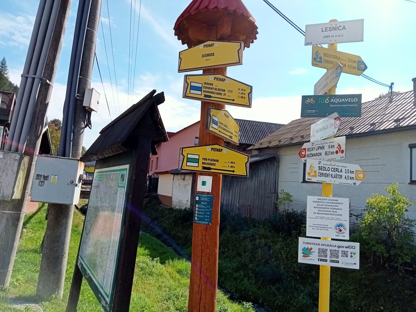 Leśnica niewielka wieś na Słowacji choć polski wątek pojawia się w jej historii... około pół tysiąca mieszkańców. Leży w głębokiej dolinie leśnickiego potoku do którego tu powrócimy, Nie ma tu bezpośredniej drogi ze Szczawnicy, trzeba poruszać się naokoło przez Czerwony Klasztor. Miastem partnerskim Leśnicy jest Szczawnica. Jest tu tak spokojnie, że można bez problemu zasnąć na przystanku w centrum miejscowości ;)