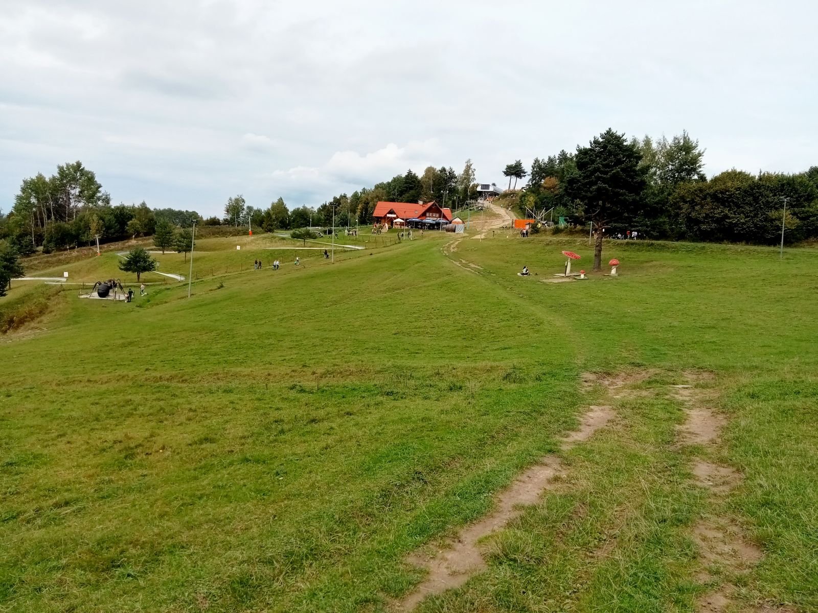 Szczyt Plenica 772 m Na szczycie znajdziemy obiekty gastronomiczne i zjeżdżalnie wózkową. Miejsce podobne do Jaworzyny Krynickiej. Pełna komercja, ludzi jak na tą pogodę sporo, choć nie widać tego na zdjeciu.