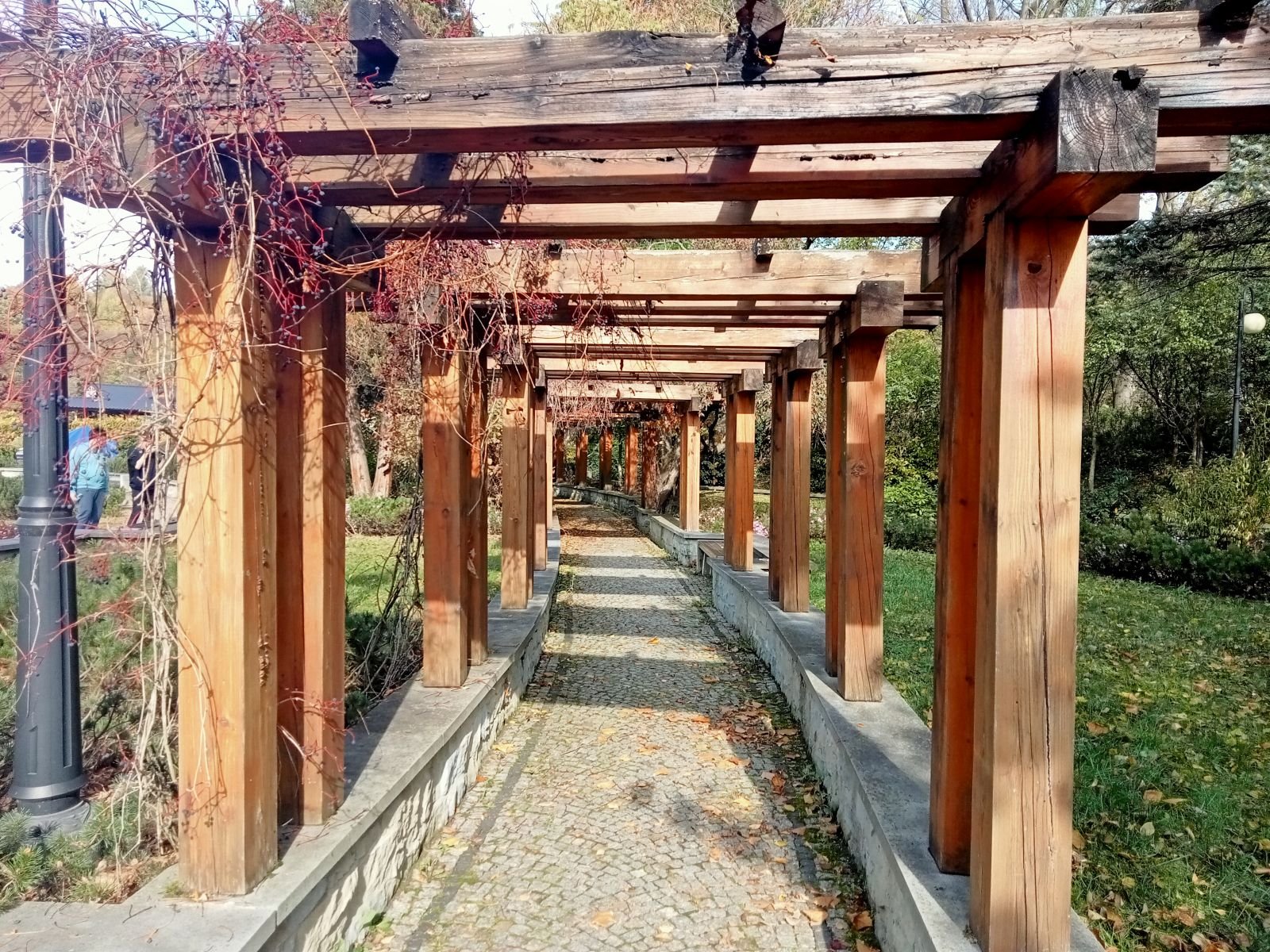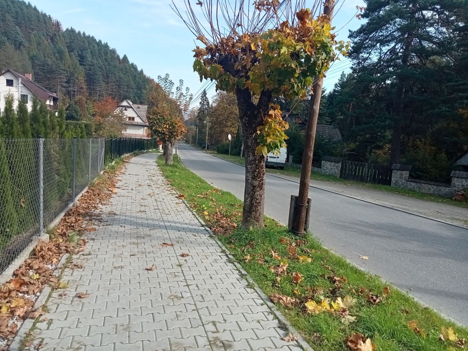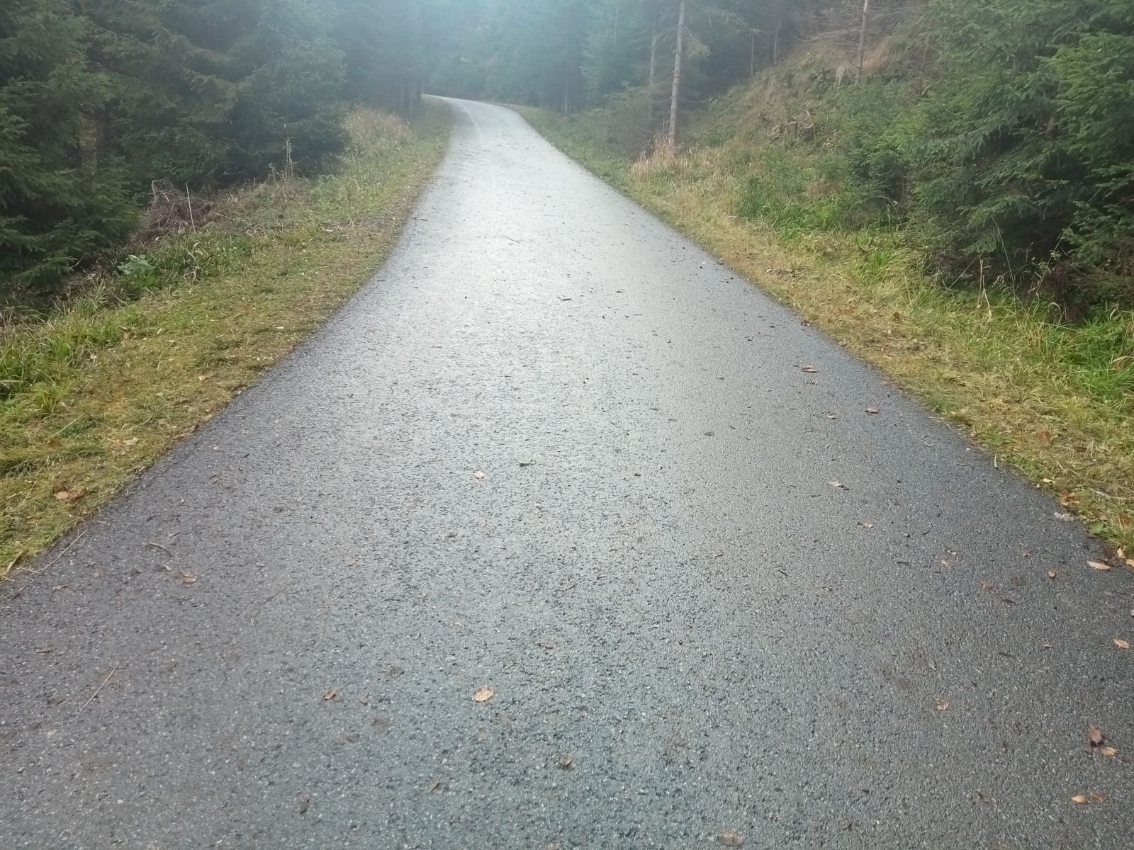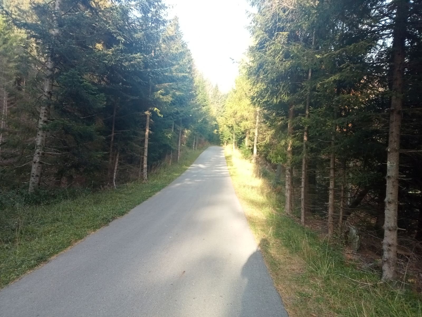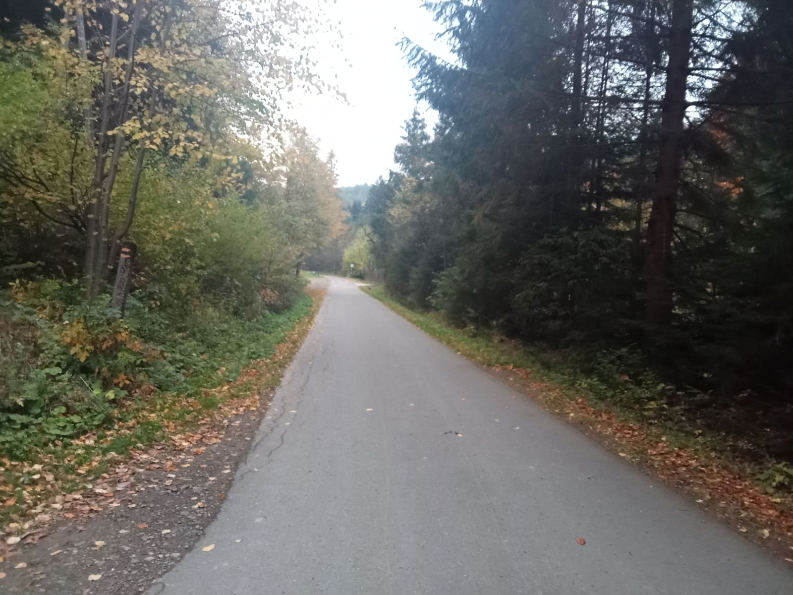 Bardzo fajnie wygląda jesienna alejka, skręcamy w lewo i jeszcze z dwa kilometry. Po chwili spotykamy biegacza ponownie z latarką czołową choć już dawno jasno.