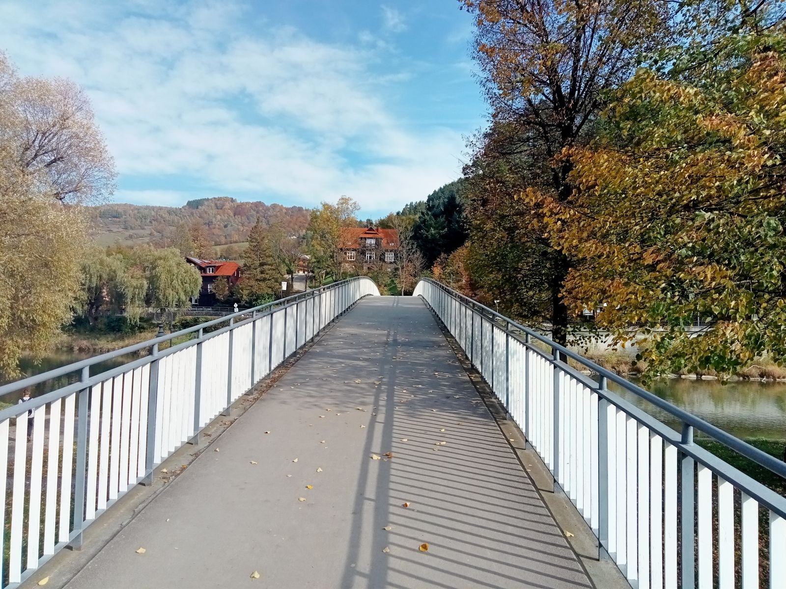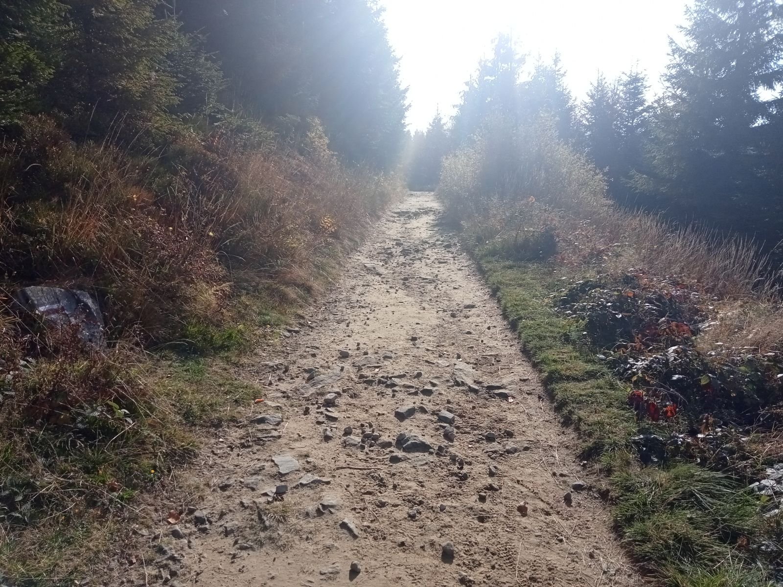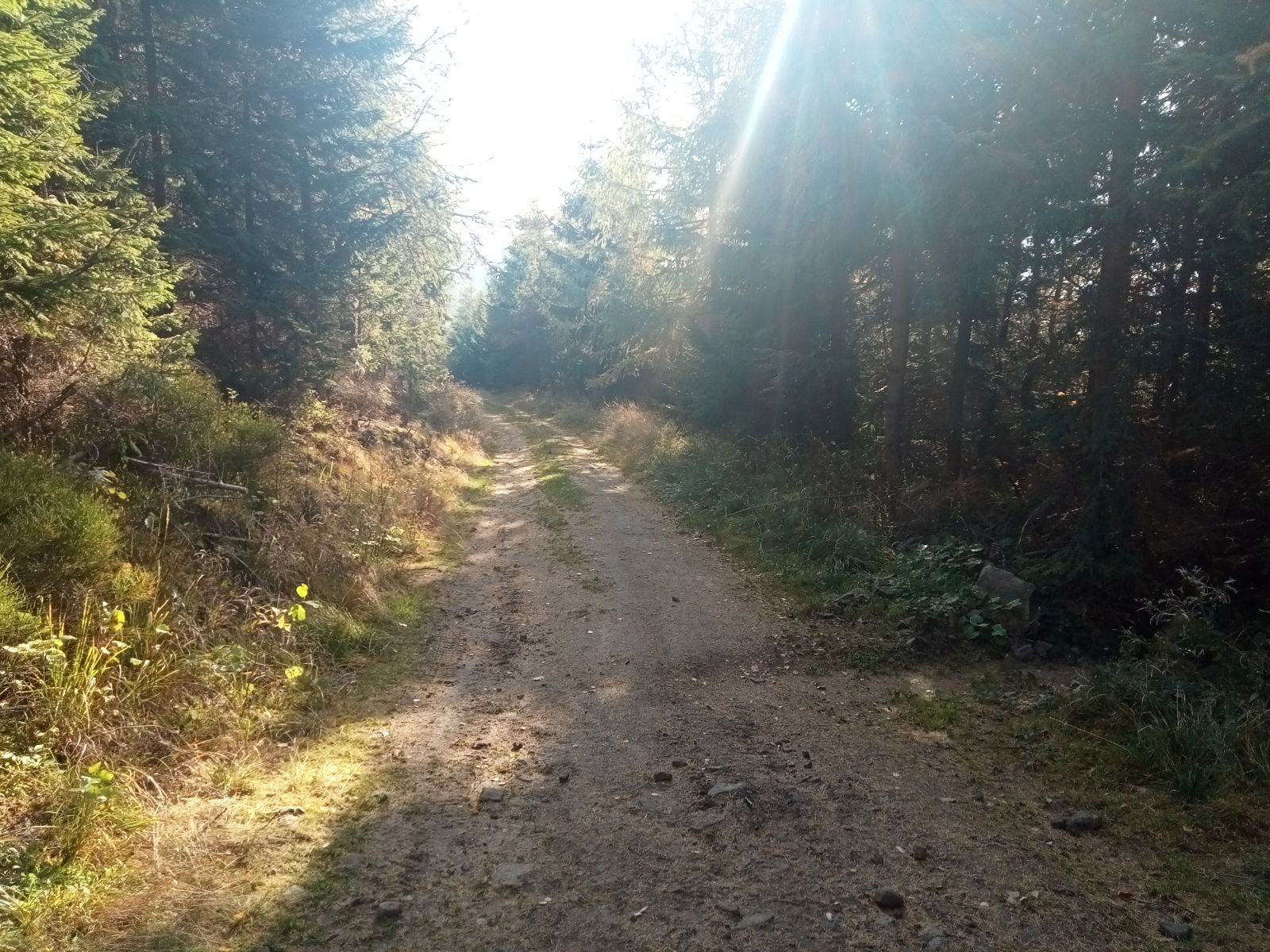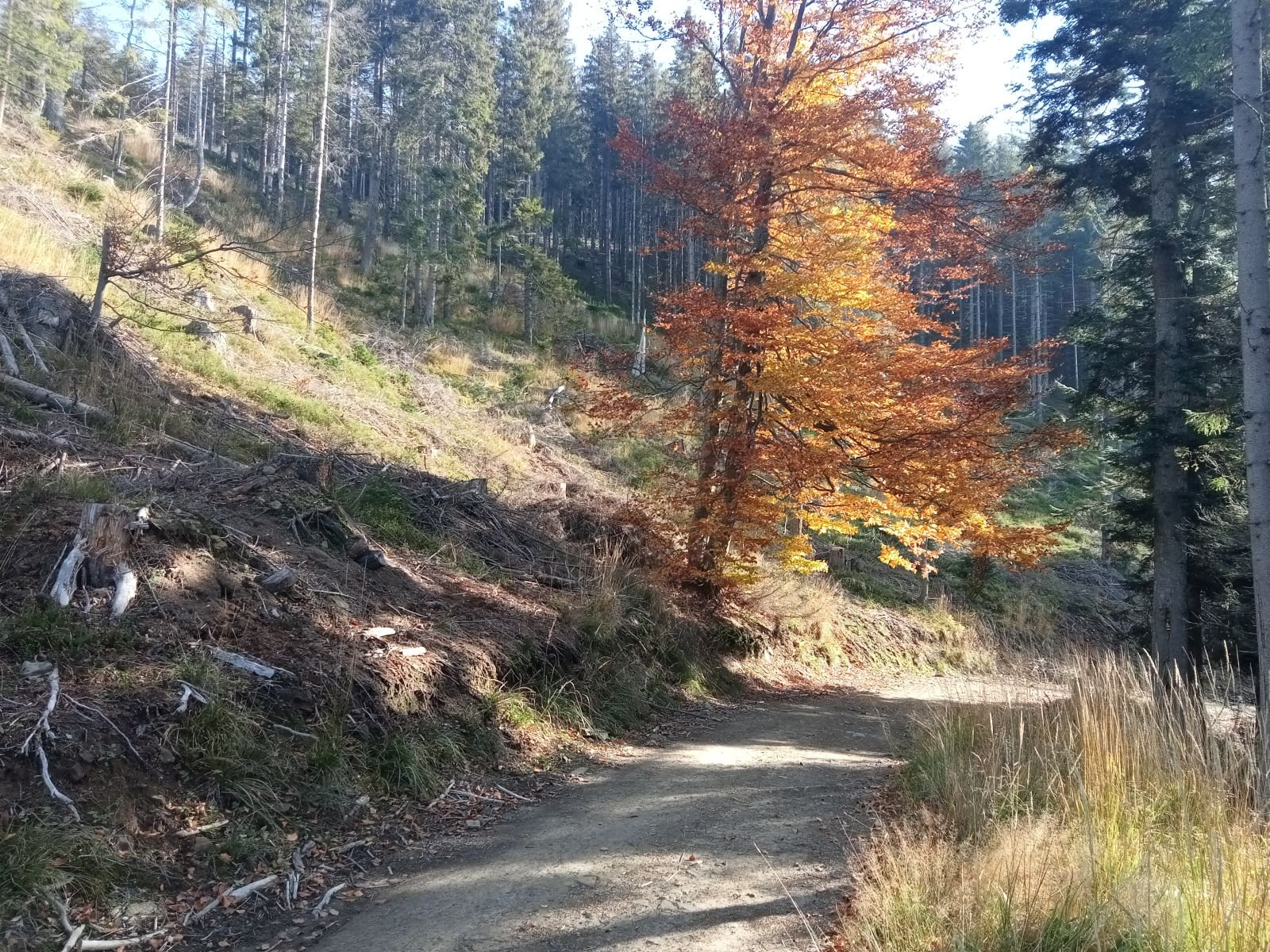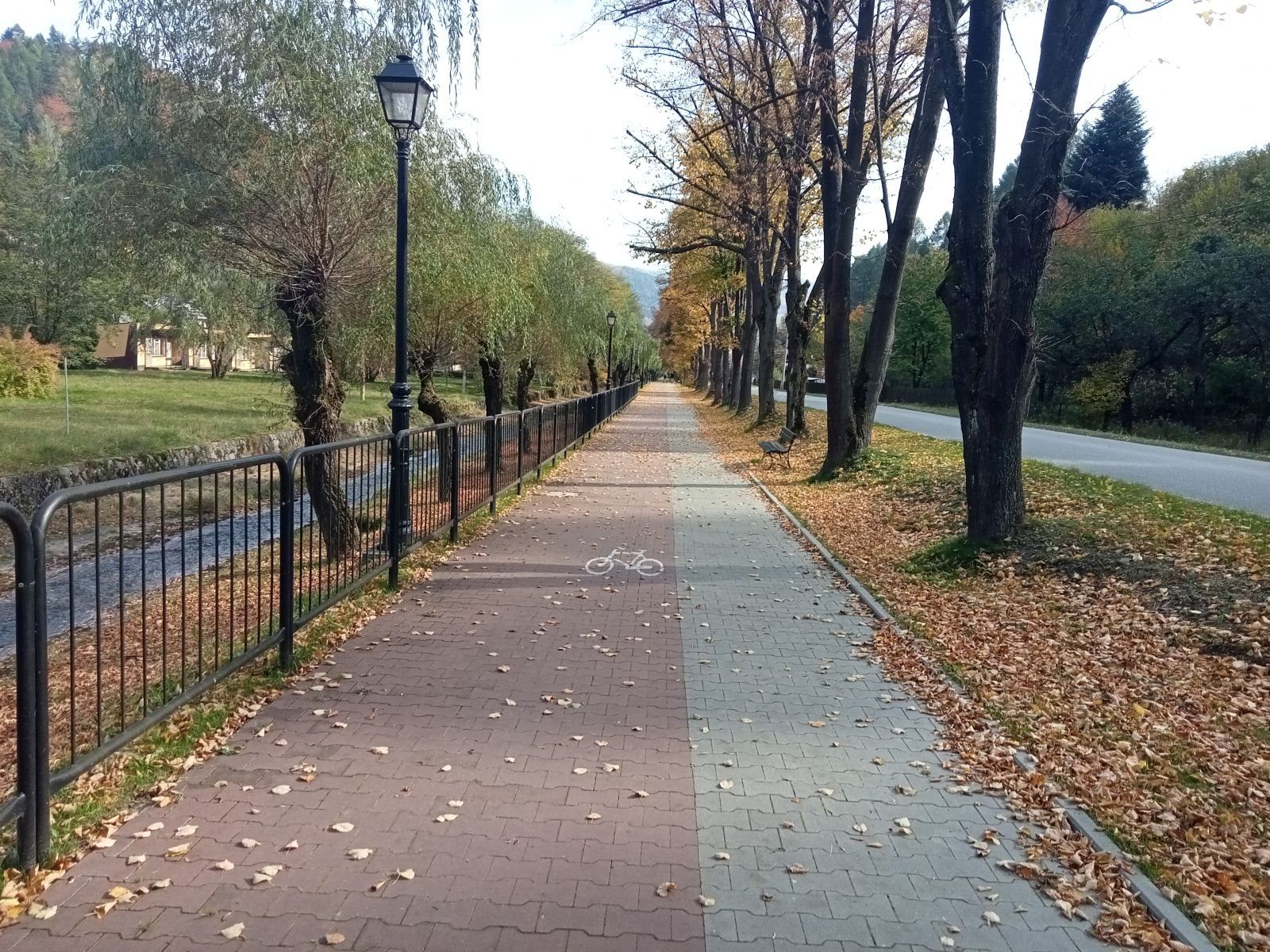 Dojście do Przehyby oznaczone jest na czarno, ten odcinek był przez nas sporo razy opisywany. Ładnie ten teren wygląda jesienią, trzeba to przyznać! Potok Jaworzynka widoczny na poniższym zdjęciu towarzyszy nam przez kolejne kilometry. Już po chwili wędrówki spotykamy pierwszego rowerzystę zjeżdżającego z góry z latarką czołową umieszczoną oczywiście na głowie, ciekawe o której zaczął swoją nocną trasę.