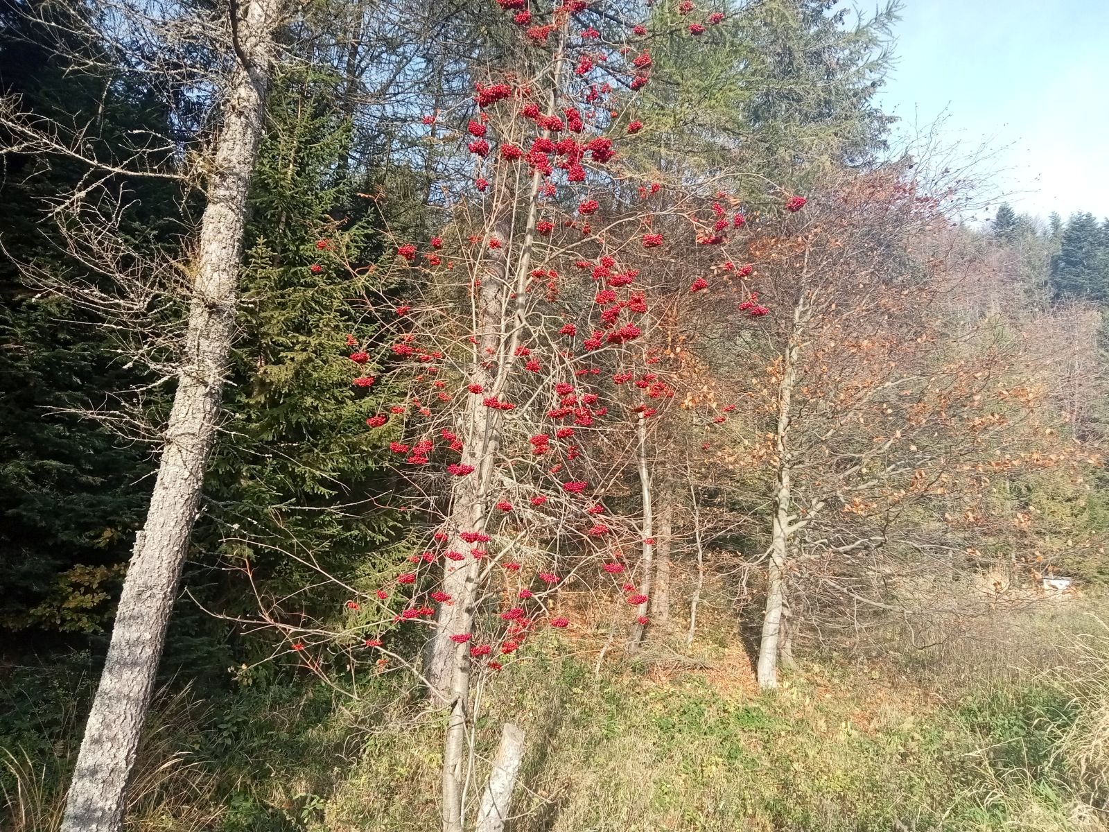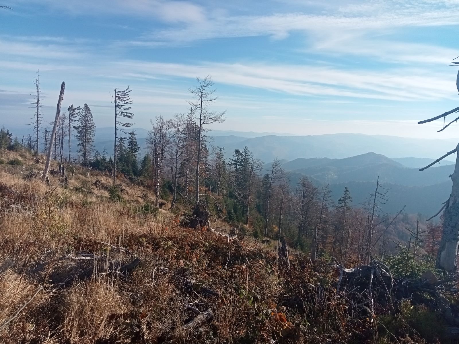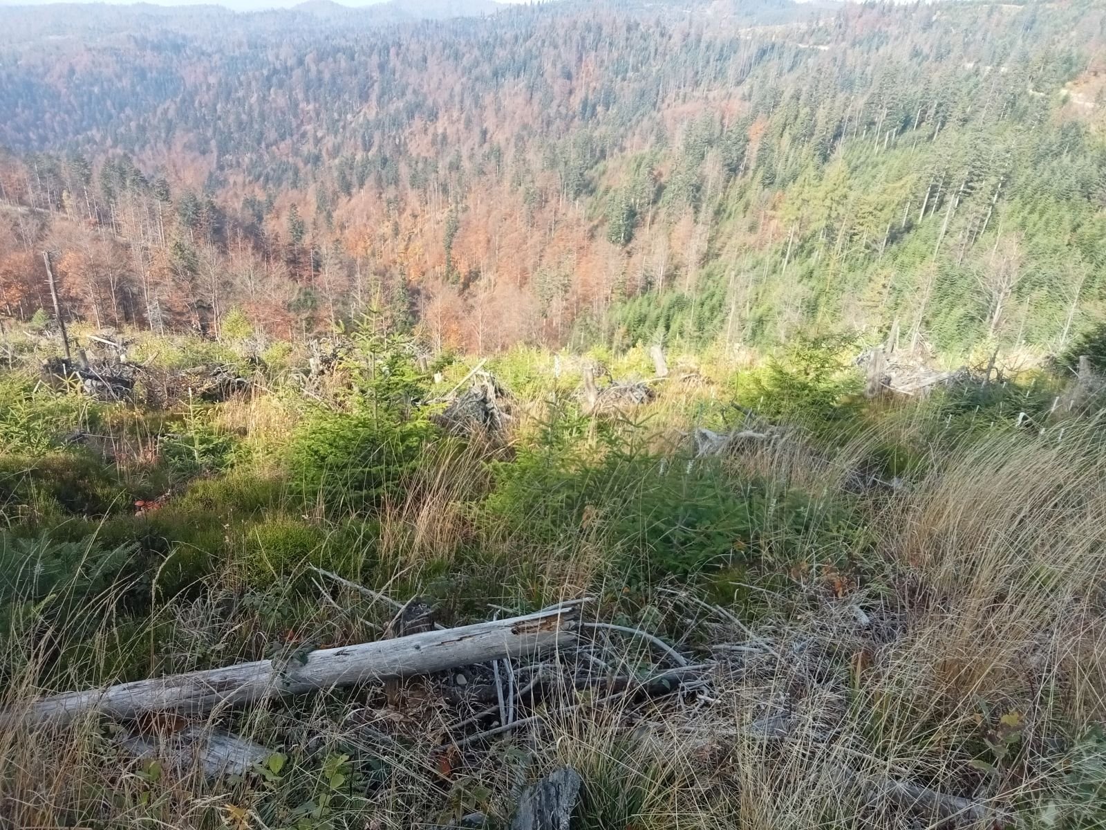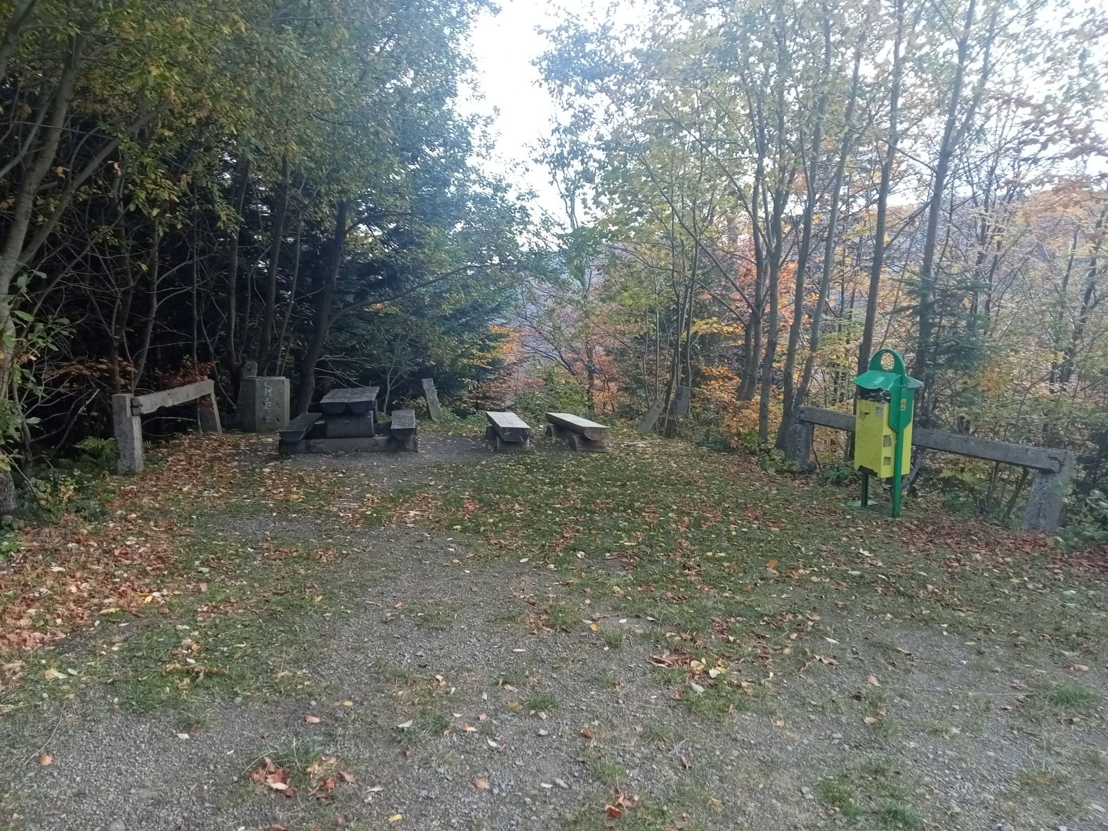 Widok z platformy widokowej na Przehybie w kierunku Starego Sącza. Jak widać nic prawie nie widać - zarosło. Jest miejsce na ognisko ale nie ma tu klimatu do posiadówki. Miejsce chyba zapomniane, choć swego czasu mówiono o planie wykonania tu wieży czy też platformy widokowej. Obok znajduję się nadajnik telewizyjny, który bardzo dobrze jest widoczny z dołu. W schronisku już o 9:00 sporo osób.