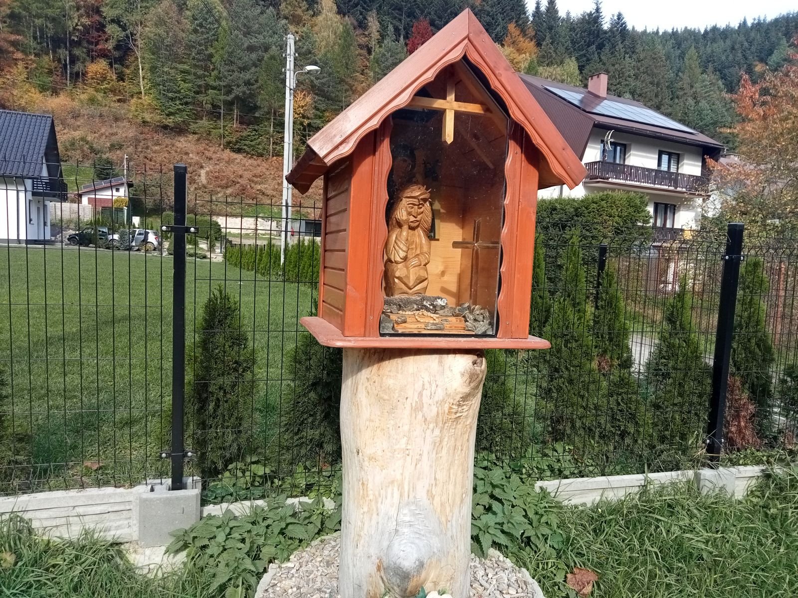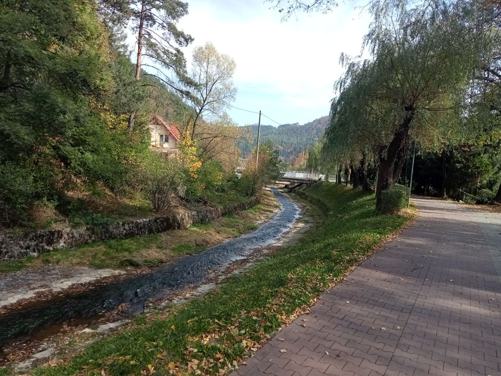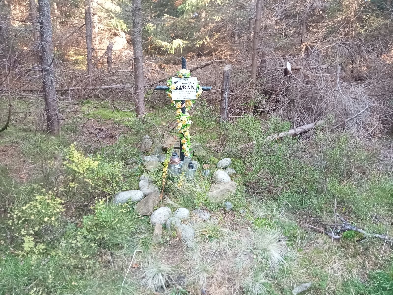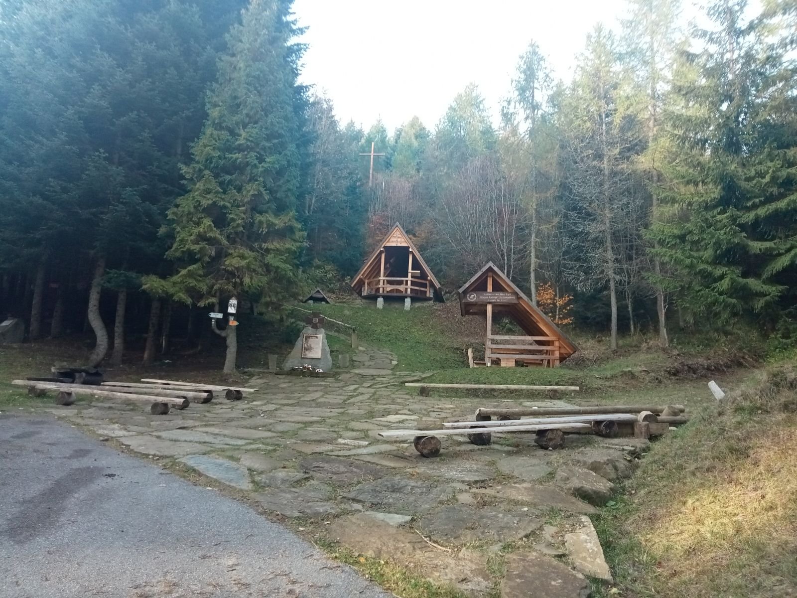 Sucha Dolina - Pomnik upamiętniający kurierów, łączników i przewodników. Przechodzili oni tędy na Słowację, przekraczając granicę w rejonie Obidzy i Eliaszówki. Mijamy kościół w Kosarzyskach i szukamy wodospadu. Cały czas idziemy bulwarem spacerowym.