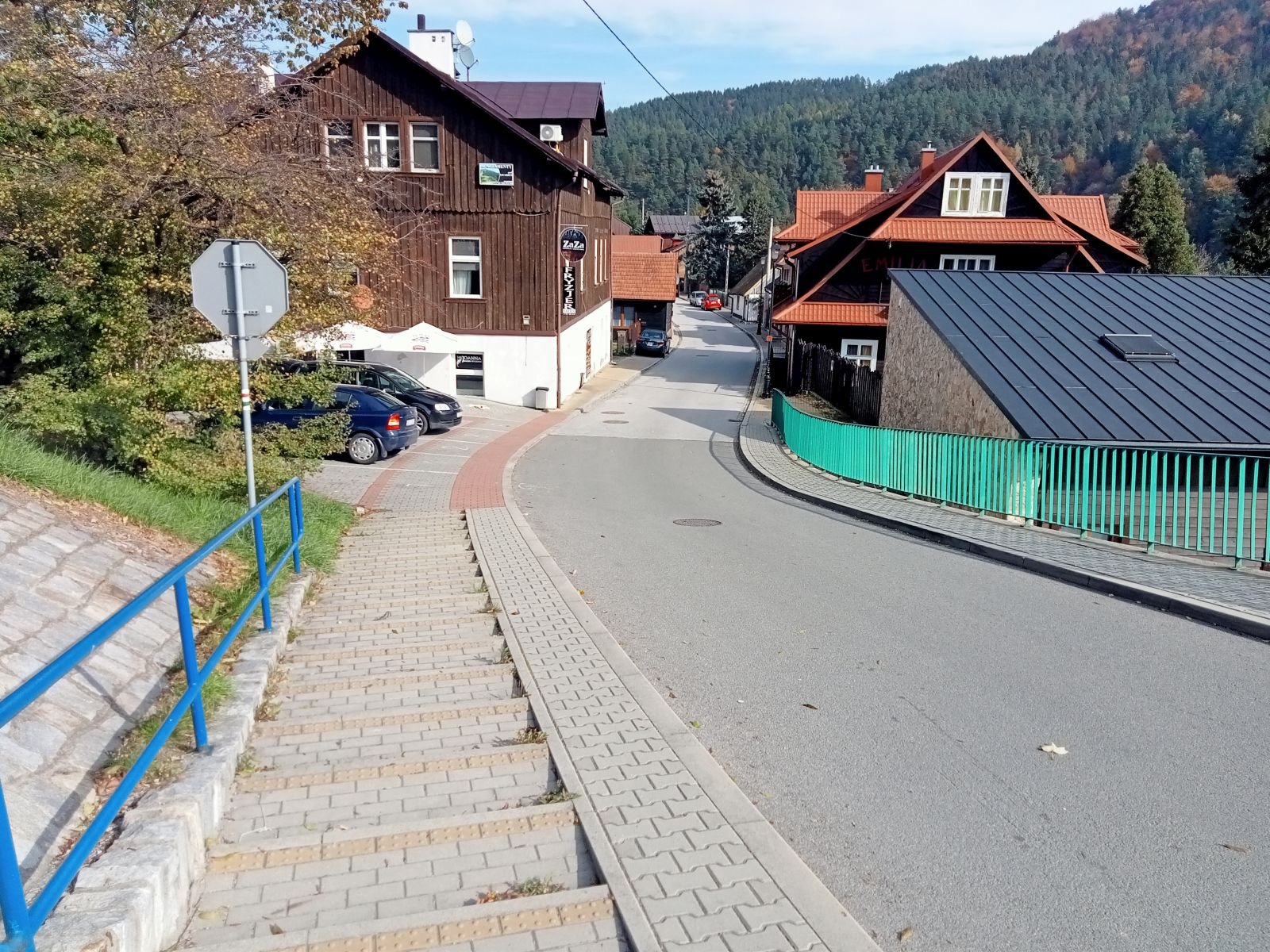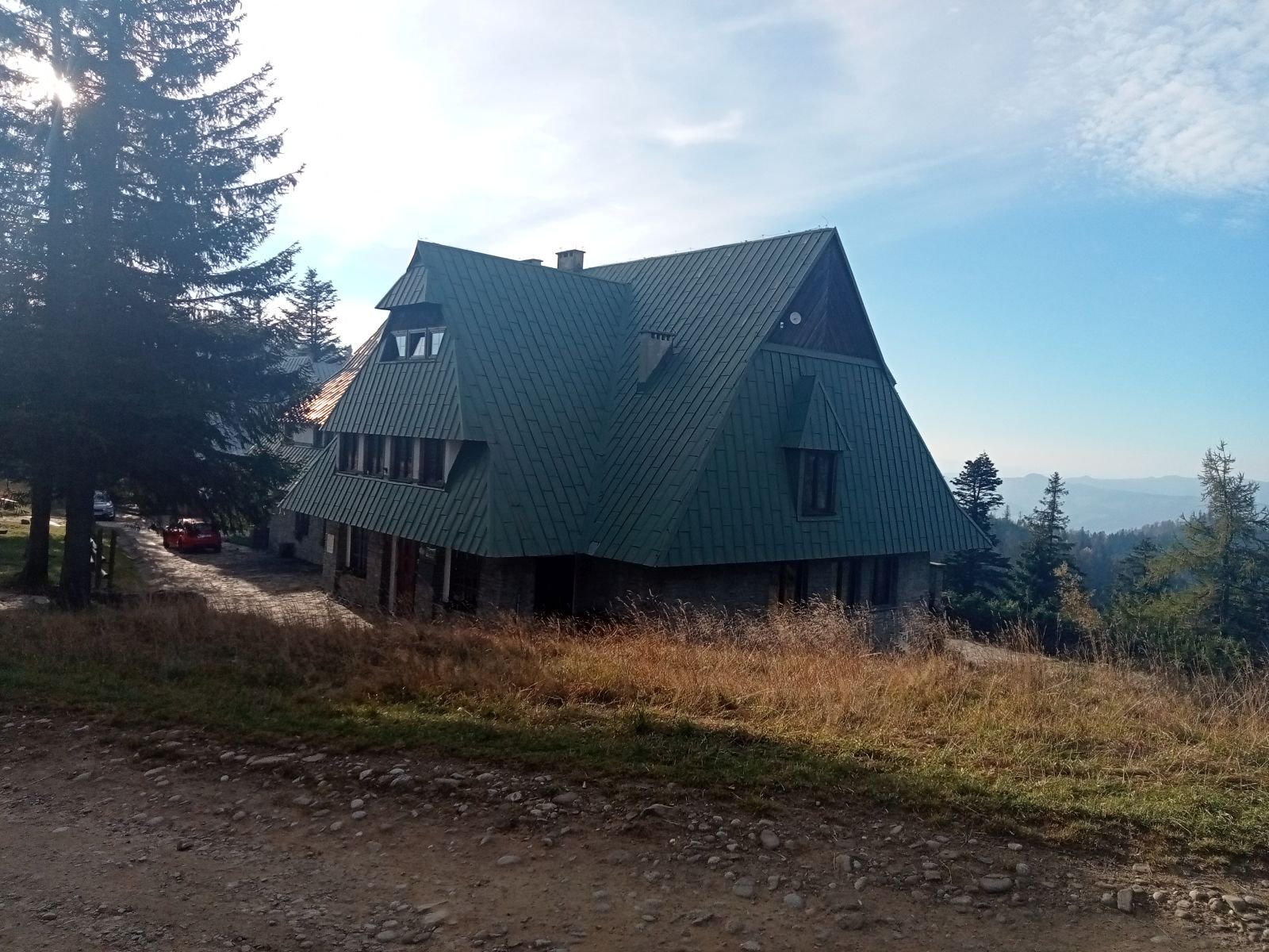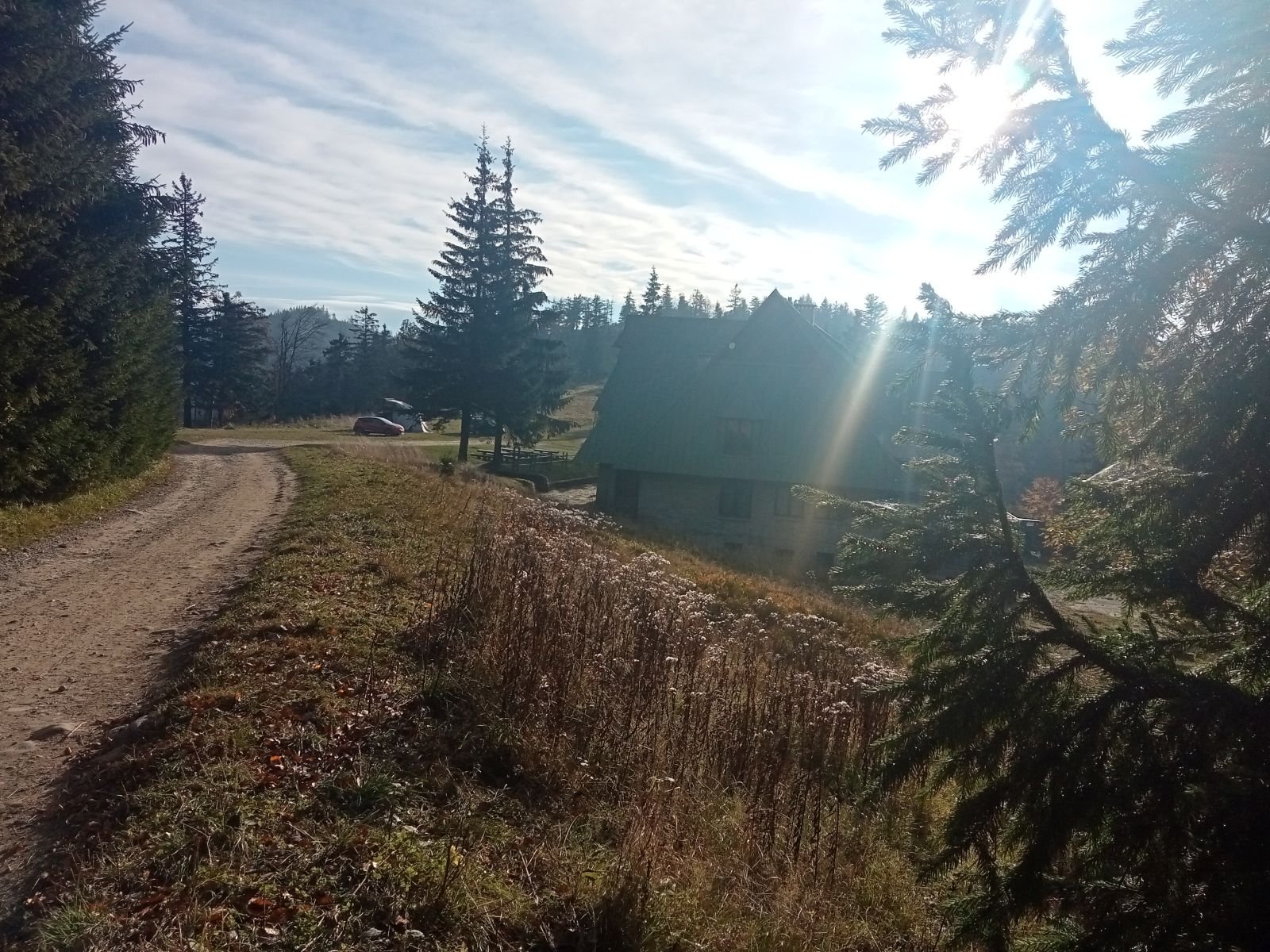 Kierujemy się na Suchą Dolinę znaną z ośrodka narciarskiego. Na zdjęciu widoczny nasz cel - Pijalnia Artystyczna.