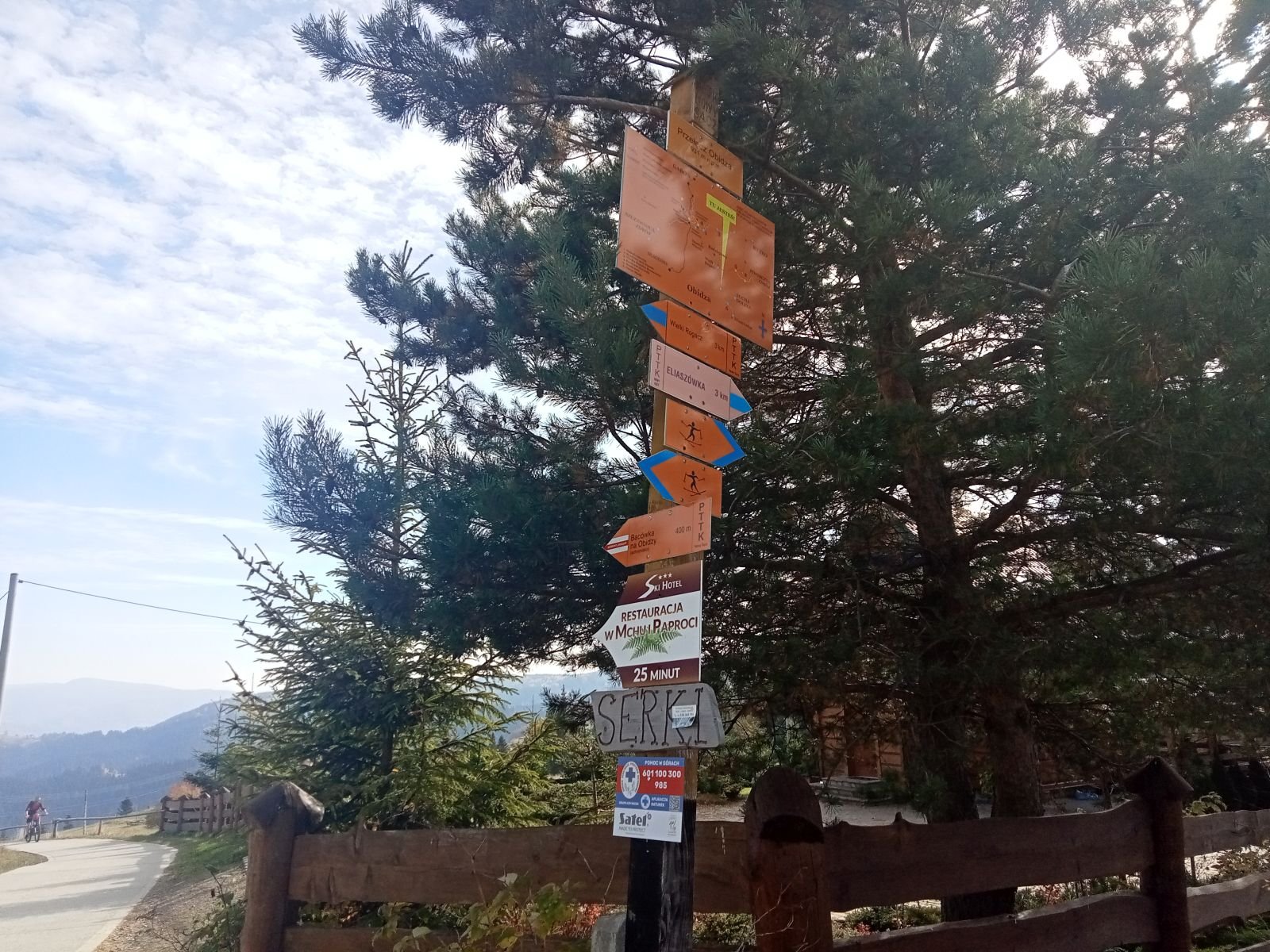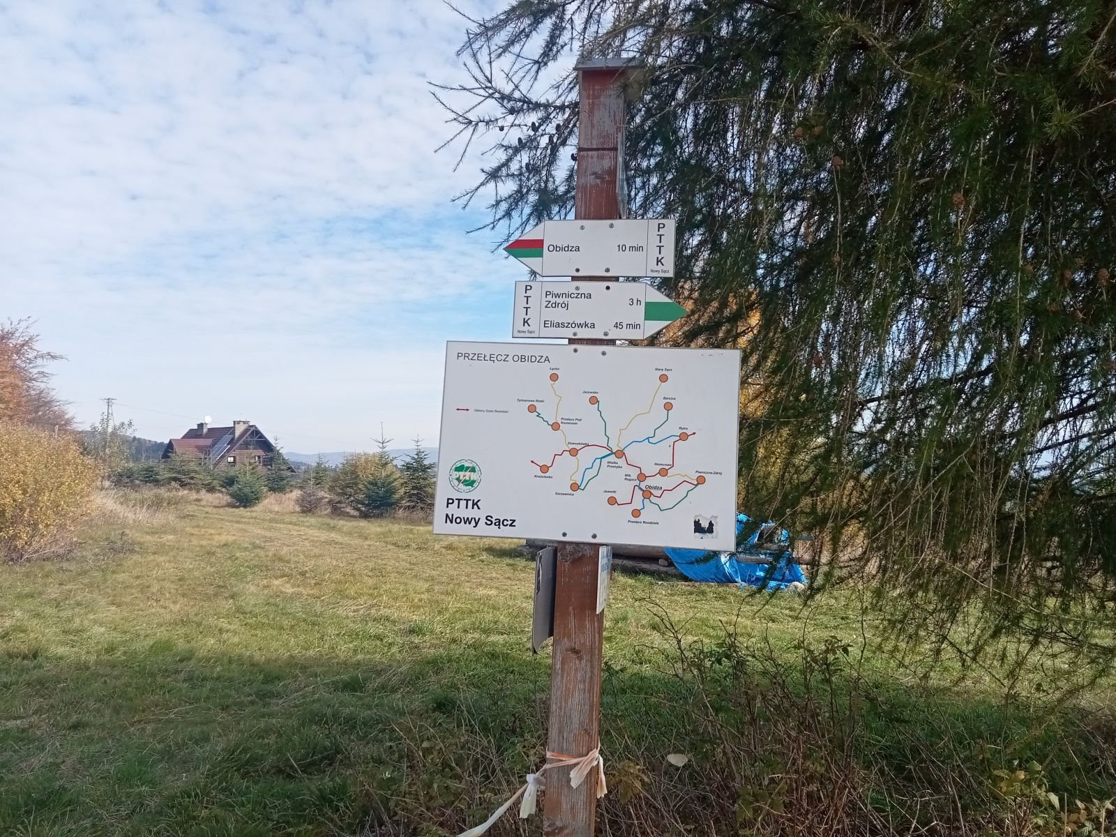 Tablica nie wytrzymała ale służy na swój sposób. Nie kierujemy się na Radziejową - obchodzimy wieże widokową.