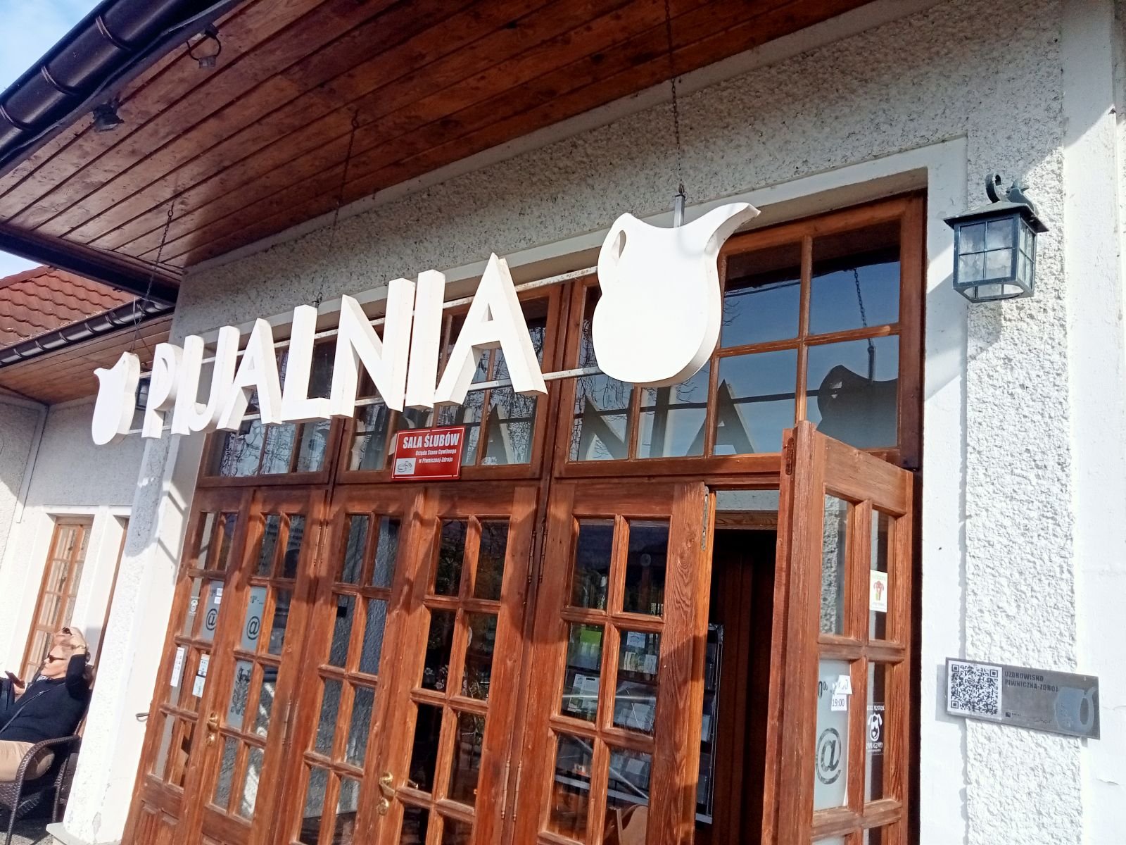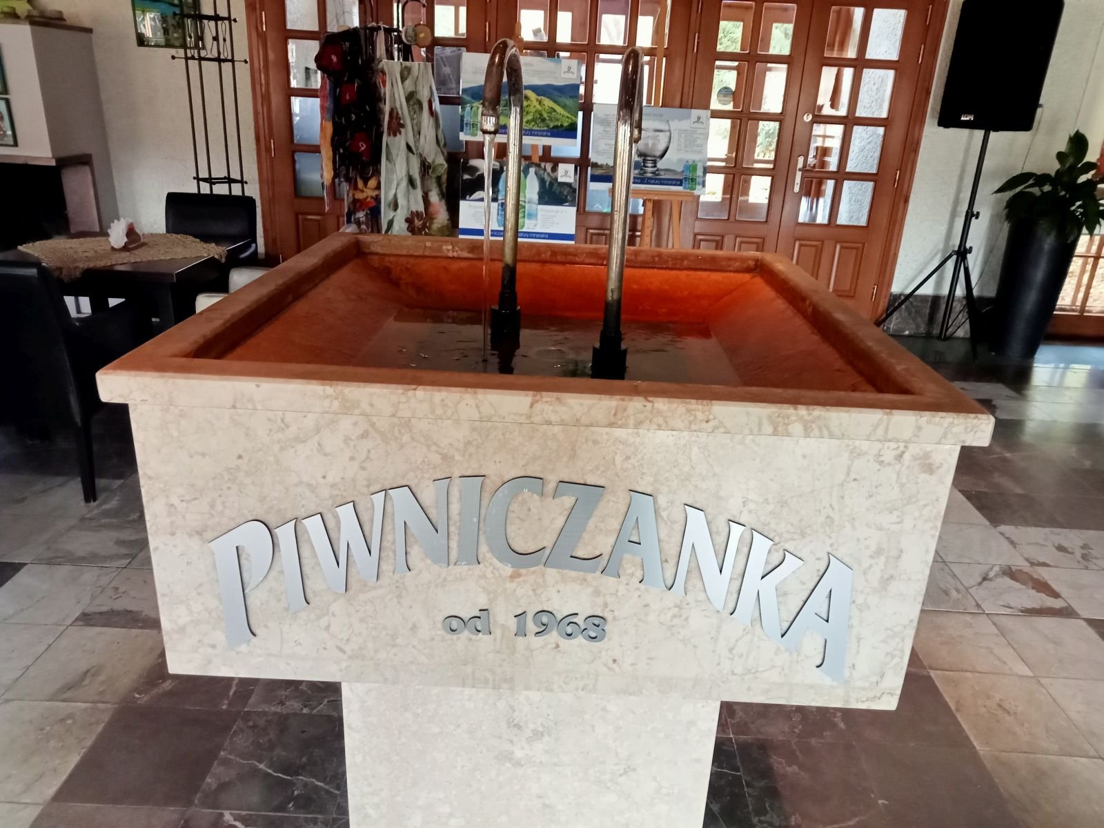 Przechodzimy przez park i wchodzimy do pijalni. Bardzo fajna miejsce, można nie tylko napić się wody mineralnej ale i wypić kawę, coś zjeść. Podobnie jak w Żegiestowie Zdrój. Miejsce godne polecenia. Poniżej tekst ze strony pijalni: