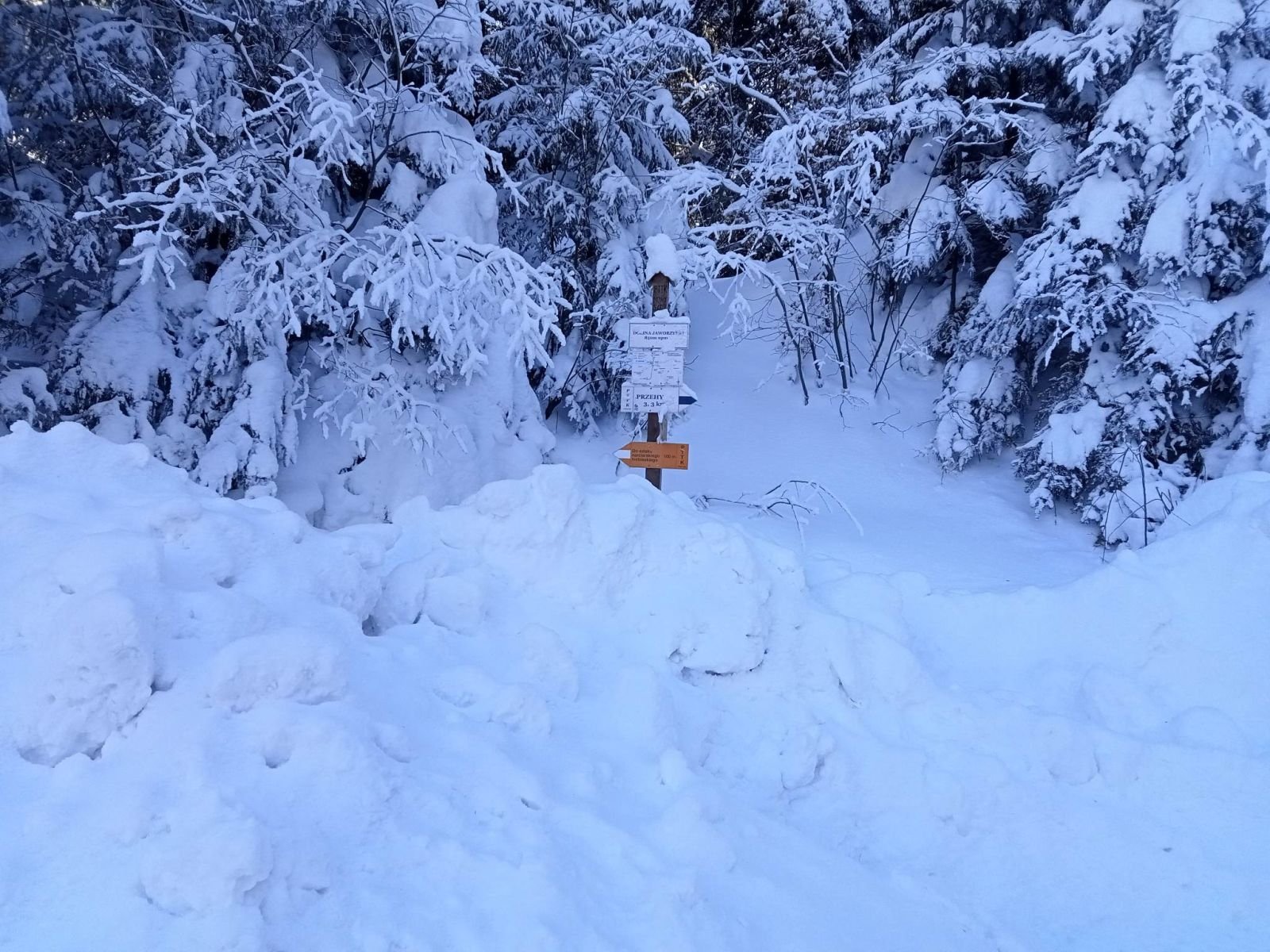 Szlak czerwony niedostępny, bardzo dużo śniegu.