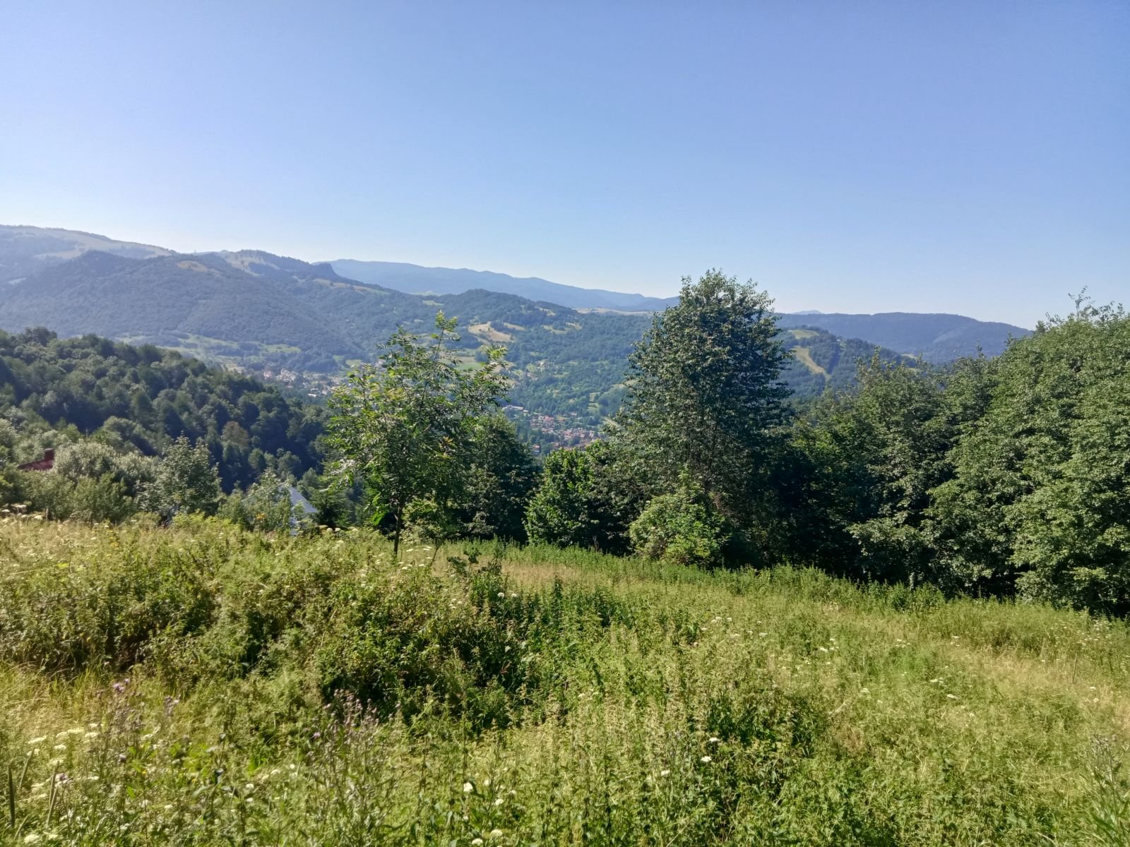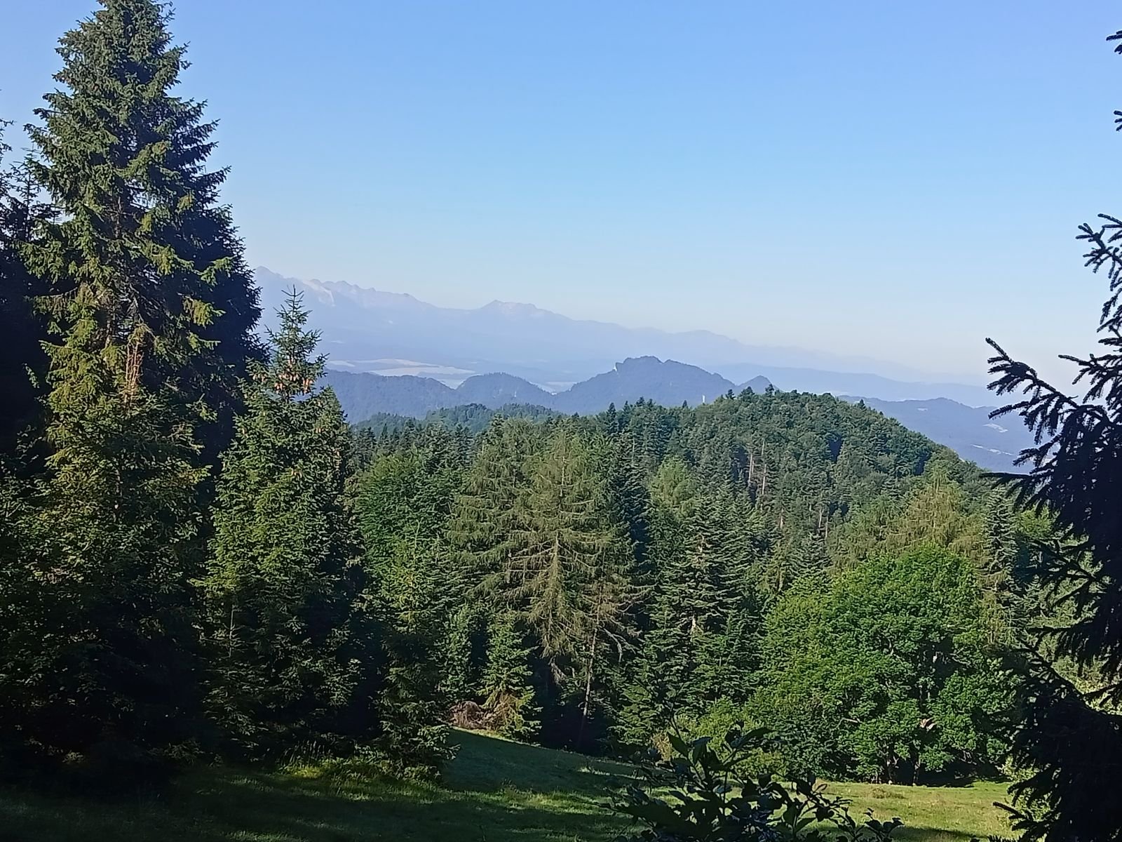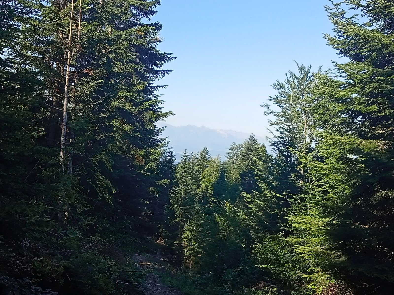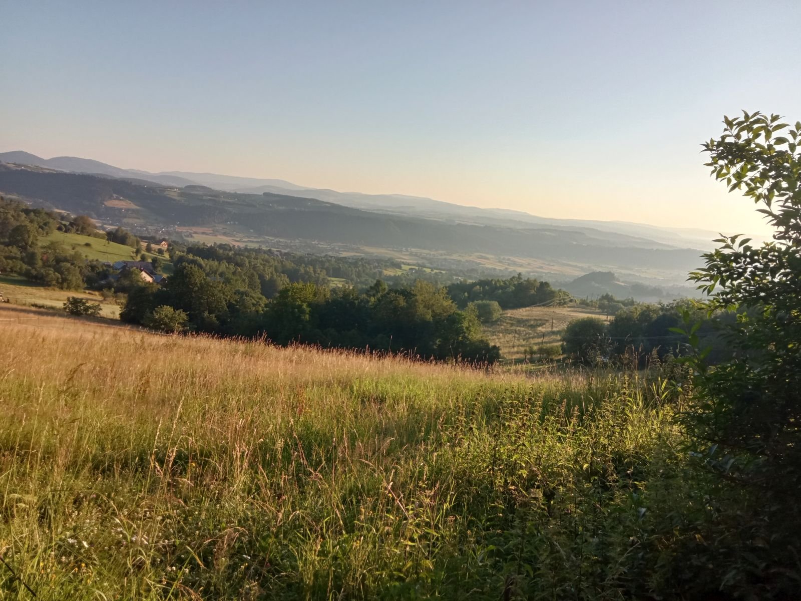 Jeden z niewielu widoków na tym odcinku, ale za to bardzo piękny. Pieniny a za nimi pasmo Tatr. Schodzimy do Sewerynówki.