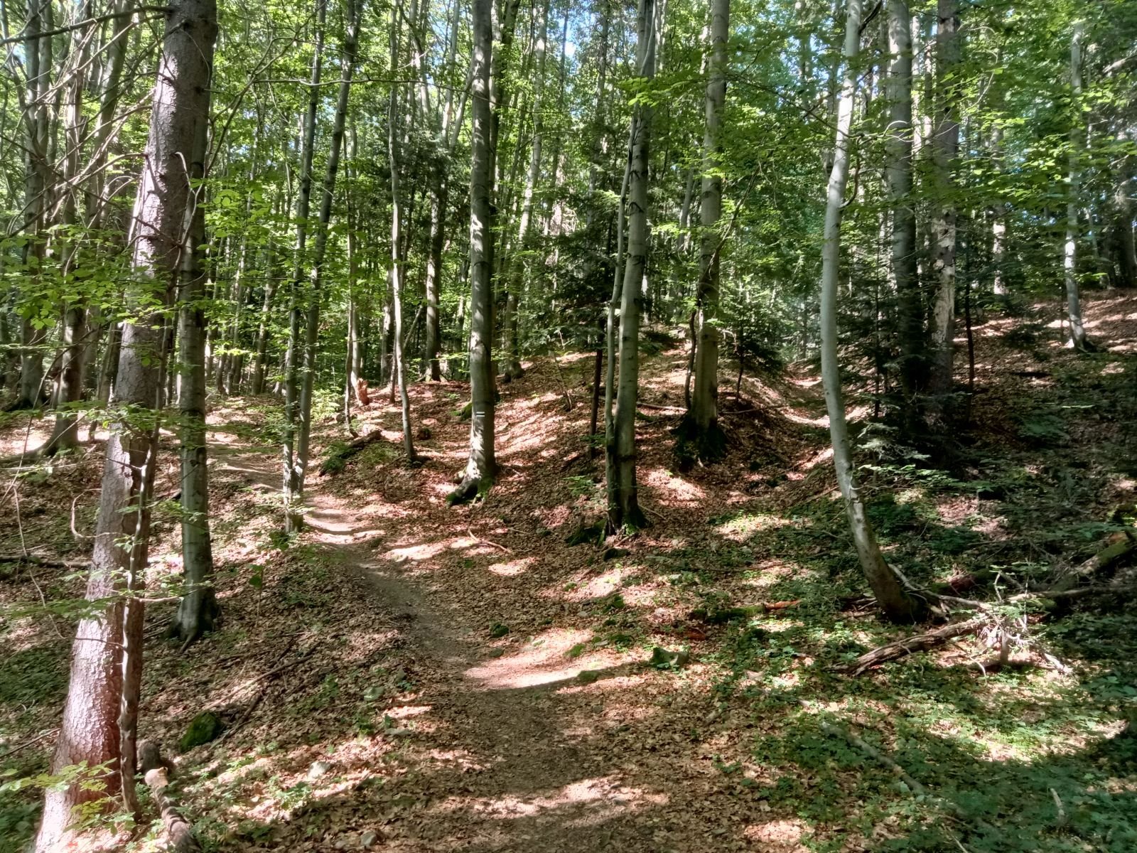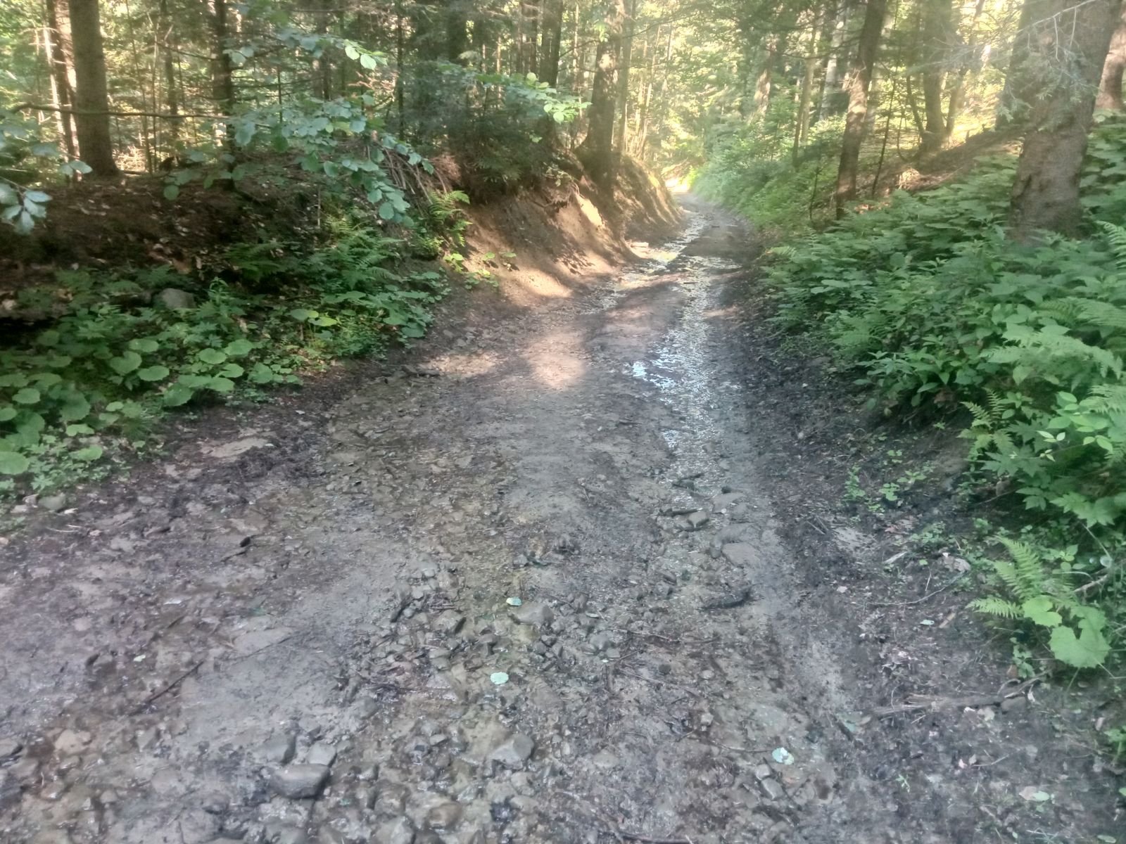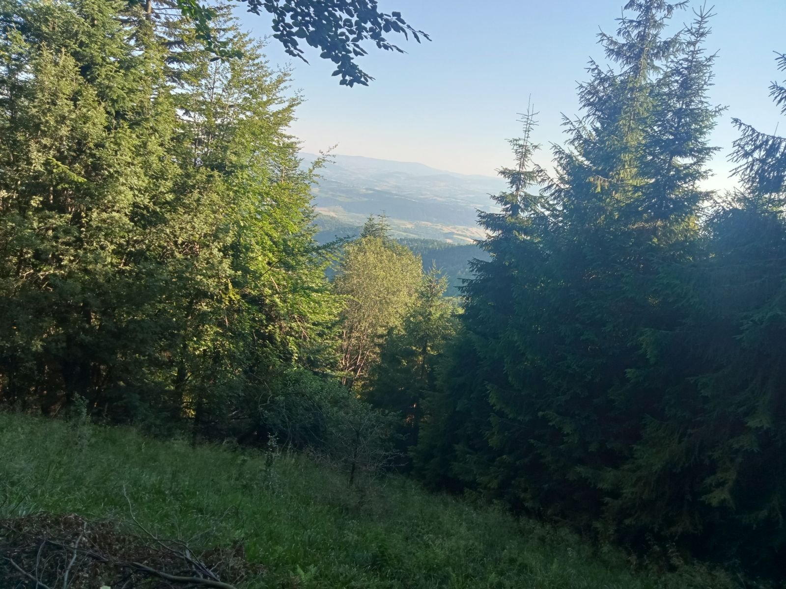 Jedyny widok na "dół" niebawem i to zarośnie. W lesie duszno, bardzo dużo jakiś muszek brrr lata, komarów i niezidentyfikowanych ujadaczy ;) Jest do tego mokro co lubią to te istoty latające.