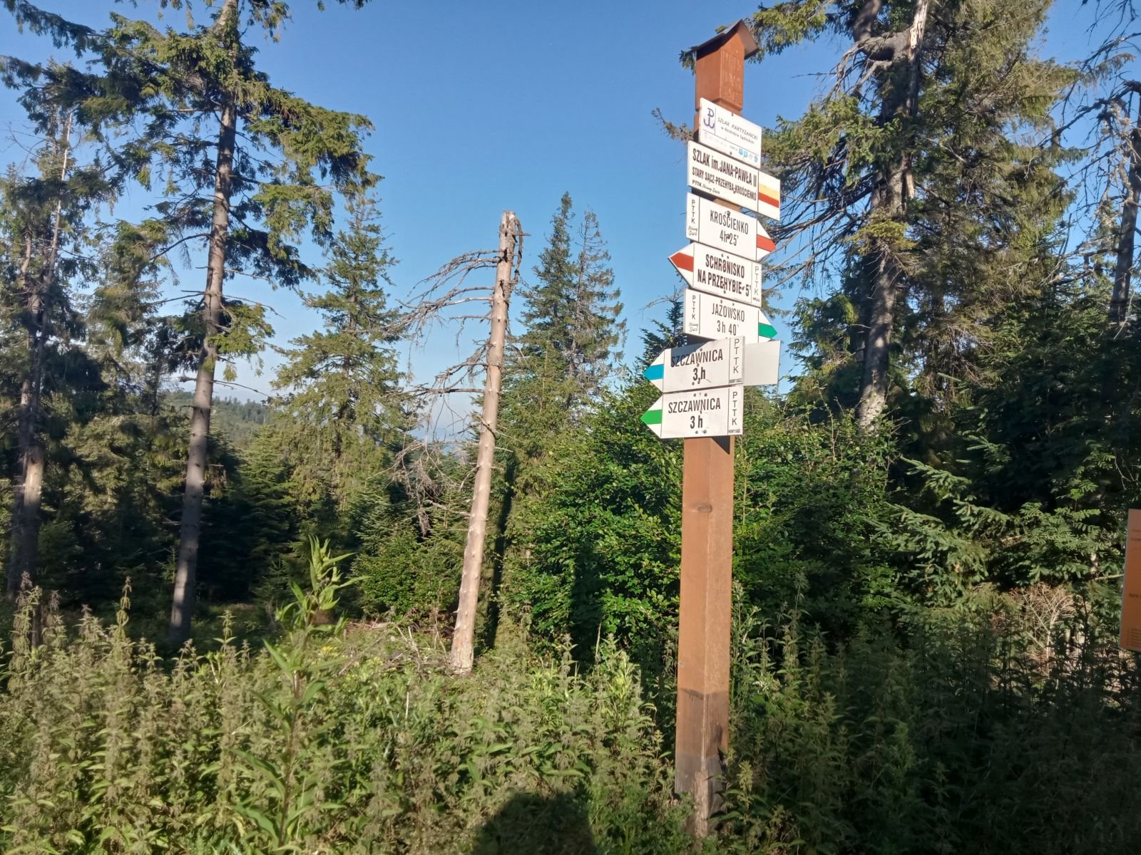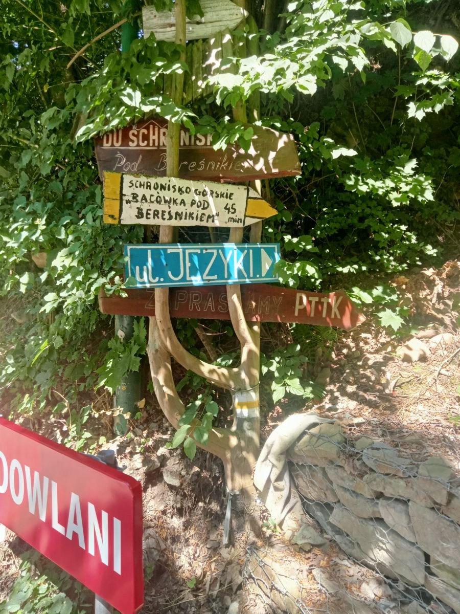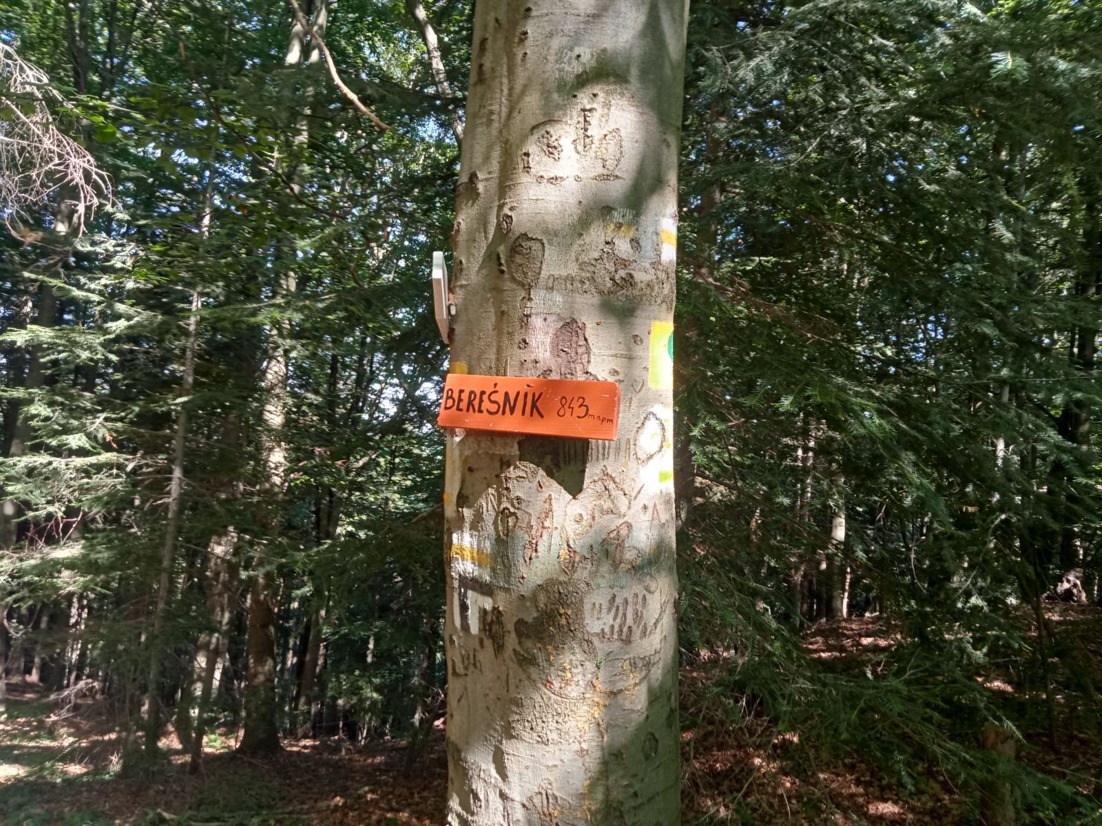 Bereśnik -Nazwa wzniesienia pochodzi od łemkowskiego słowa bereza oznaczającego brzozę. Szczyt całkowicie jest porośnięty, nie ma tu żadnych widoków więc nie mamy co tu oglądać i zmykamy ku schronisku.