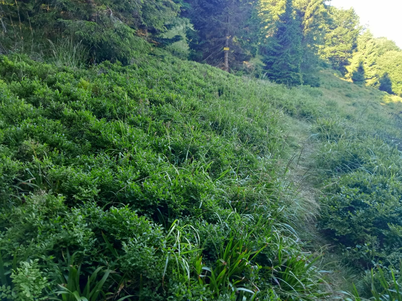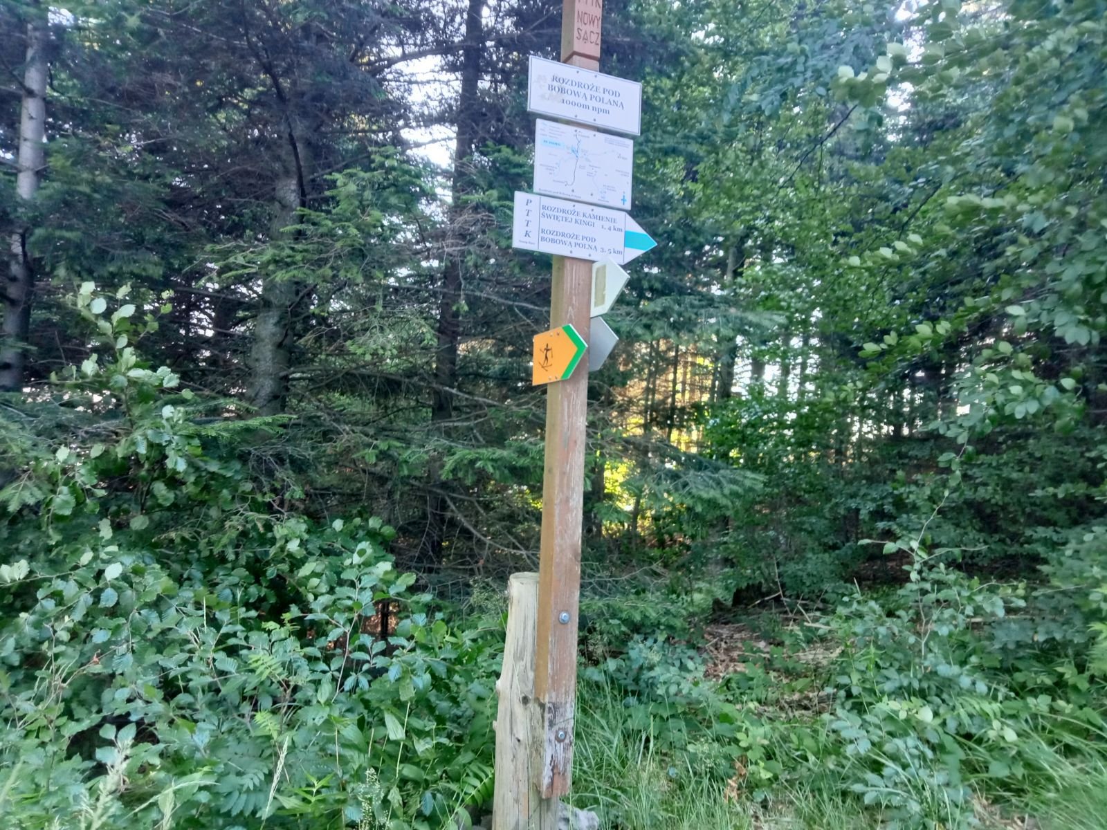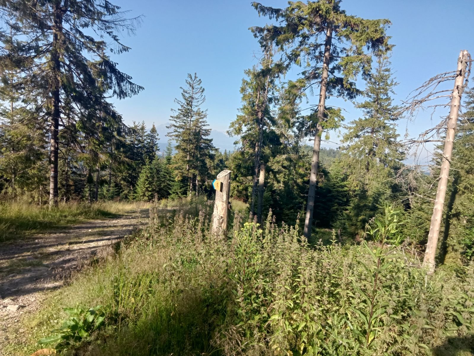 Bereśnik -Nazwa wzniesienia pochodzi od łemkowskiego słowa bereza oznaczającego brzozę. Szczyt całkowicie jest porośnięty, nie ma tu żadnych widoków więc nie mamy co tu oglądać i zmykamy ku schronisku.