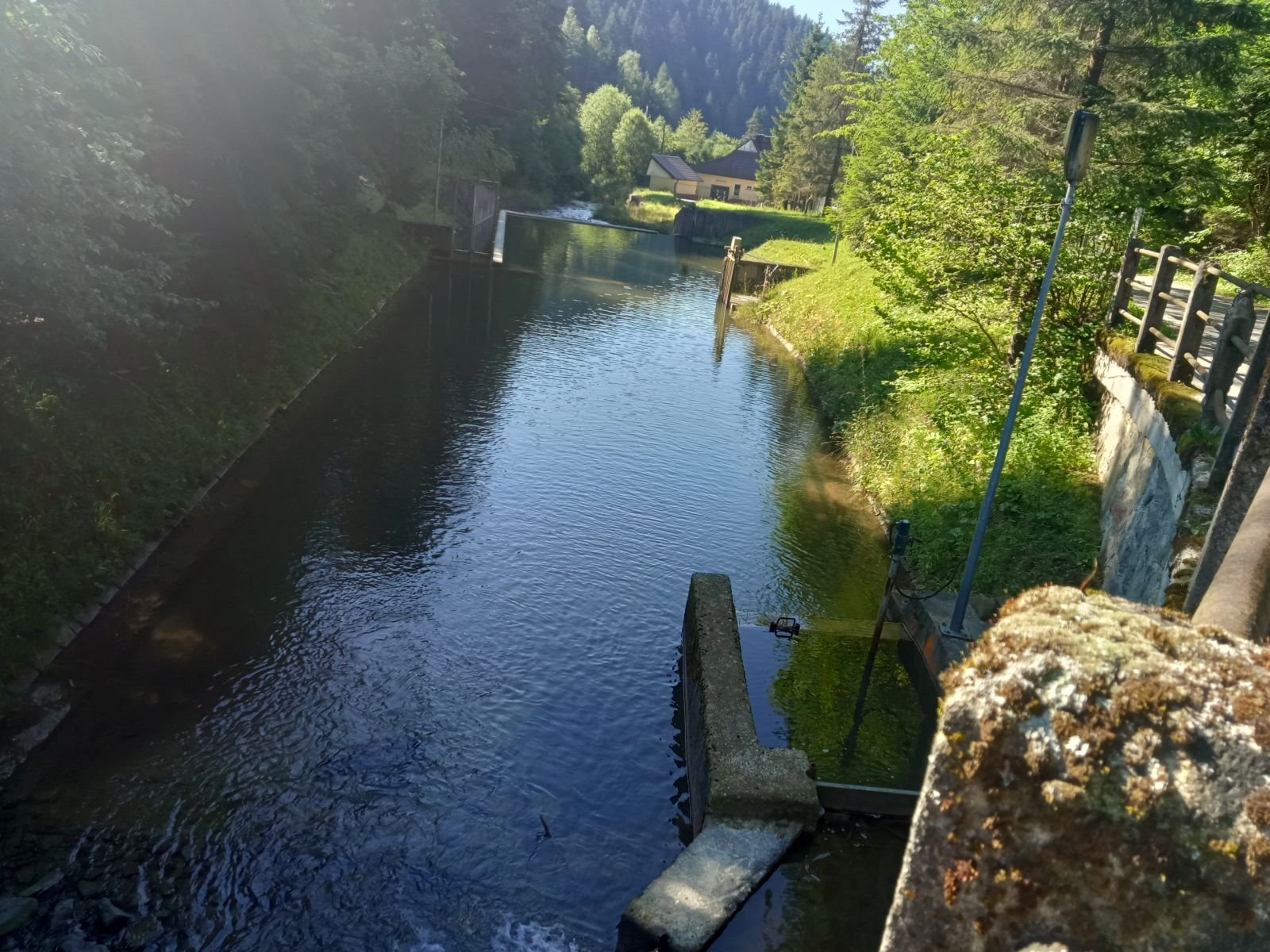 Tutaj robi się już tłoczno, obok kilka samochodów na parkingu. Pięknie szumi Sopotnicki Potok - ujęcie wody.