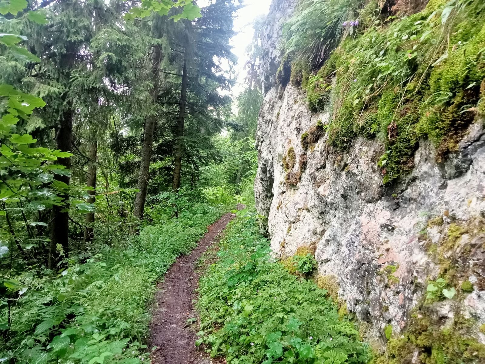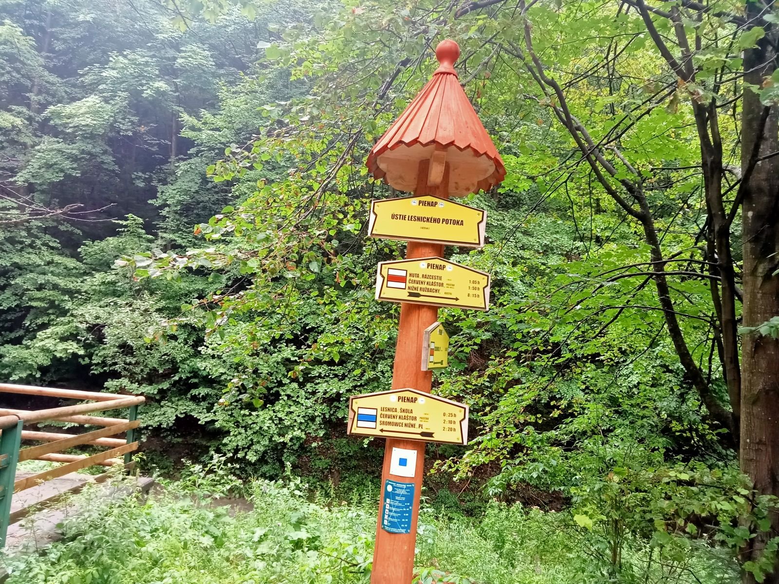 Idziemy ścieżką dla pieszych przy Leśnickim Potoku drogą do Pienińskiej Chaty. Z lewej mijamy skalny wąwóz i "Wylizaną skałę" Jak na tak niepewną pogodę ludzi nawet z małymi dziećmi bardzo dużo co troszkę dziwić może. Jesteśmy już oczywiście na terytorium Słowacji.