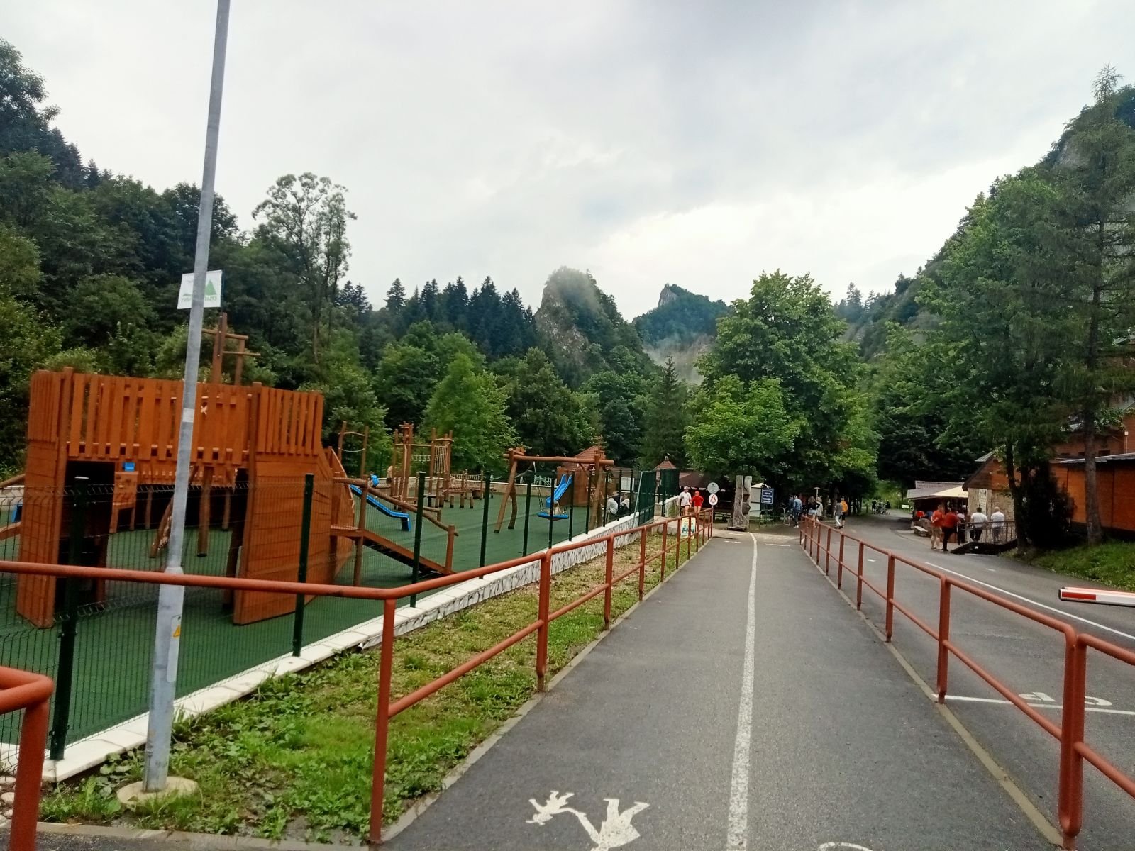 Mijamy zatłoczoną w tym dniu Restaurację Pienińska Chata i cały kompleks wypoczynkowy. Dla dzieci świetne miejsce, naprawdę mają co tu robić. Od tego miejsca zaczyna padać deszcz. Z każdą minutą, godziną coraz mocniej...