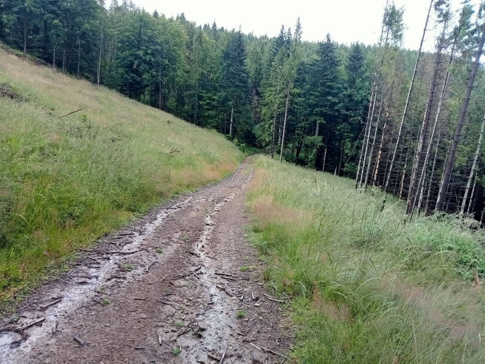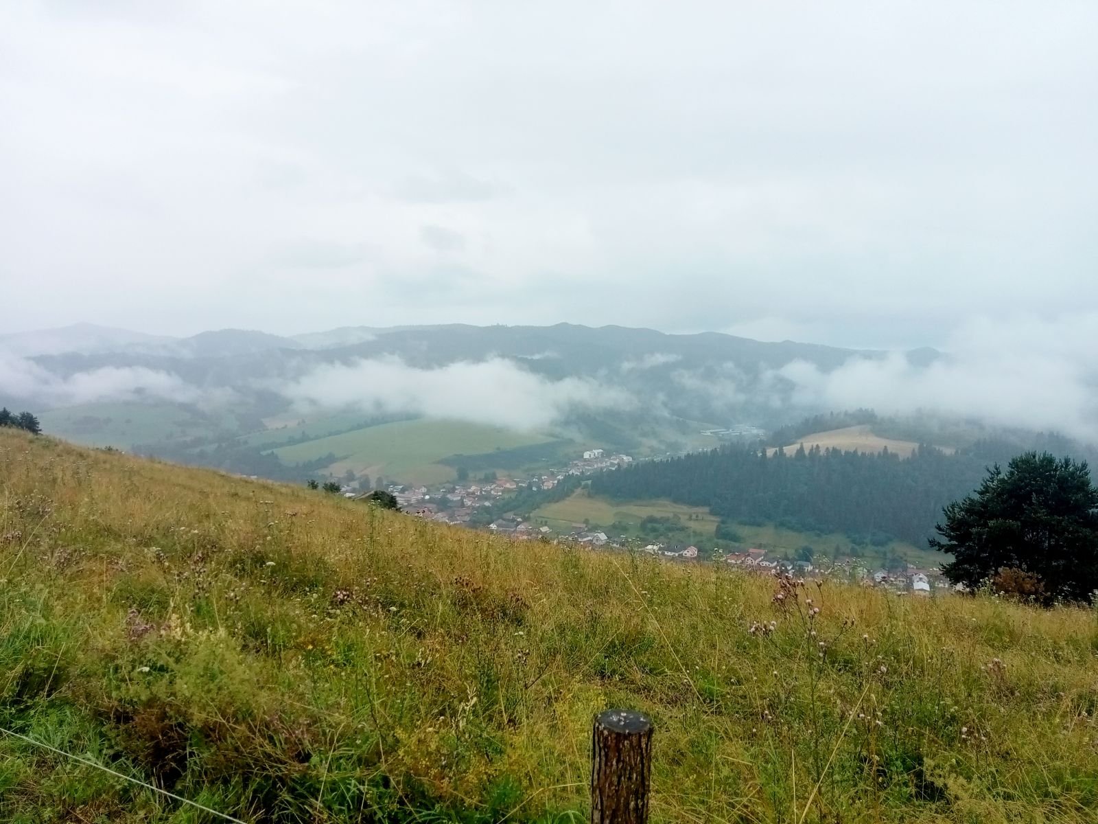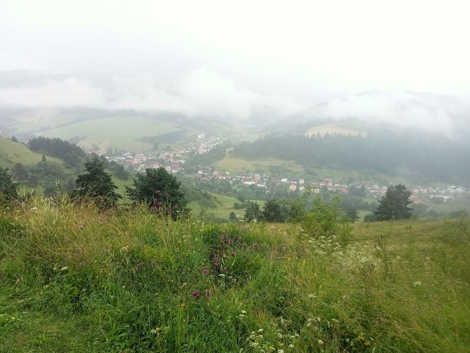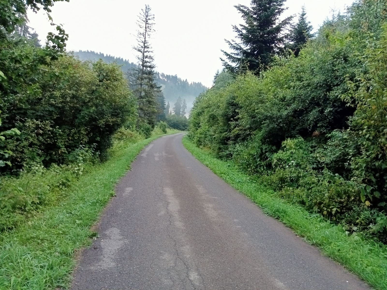 Wielki Lipnik cały we mgle i deszczu. Ciężko było nam zrobić zdjęcie z zejścia do tej miejscowości ponieważ lało niesamowicie. Samo zejście nieciekawe - błoto wysoka trawa....Ciężko, ciężko. Choć taka pogoda to... od samego wejścia na Słowację mijamy głownie rowerzystów.