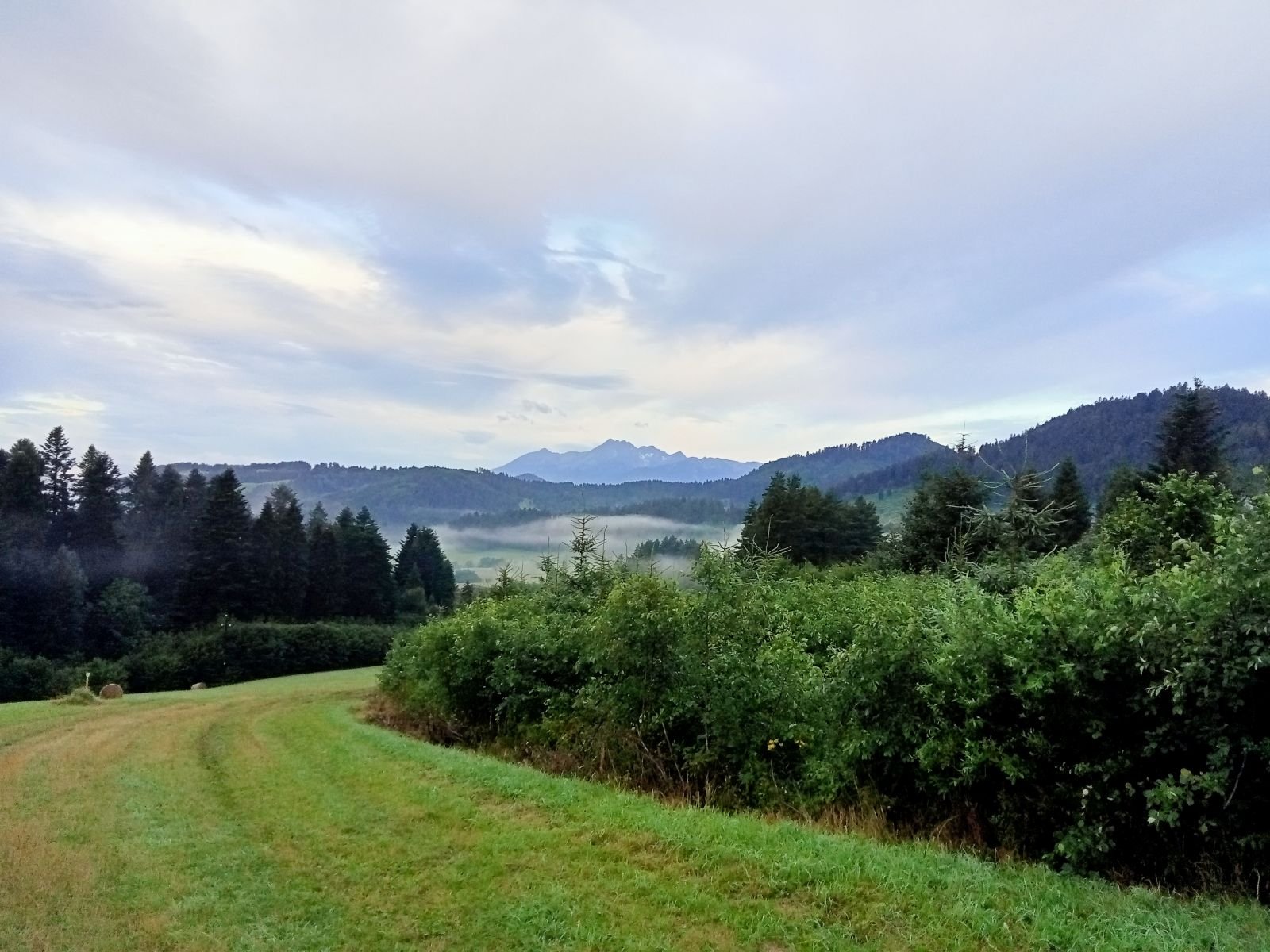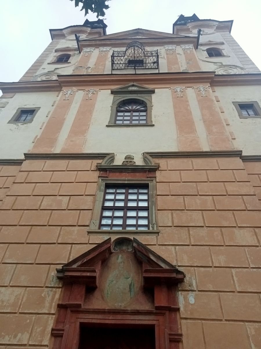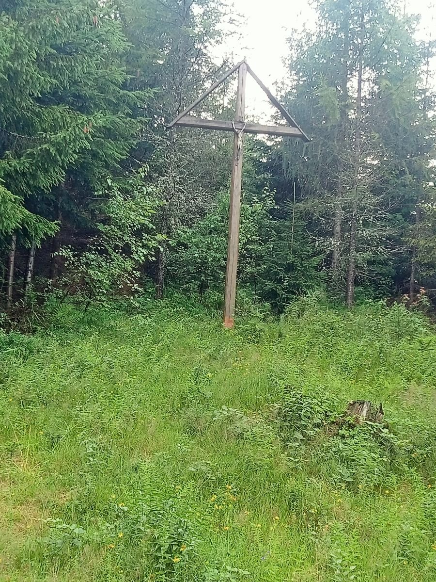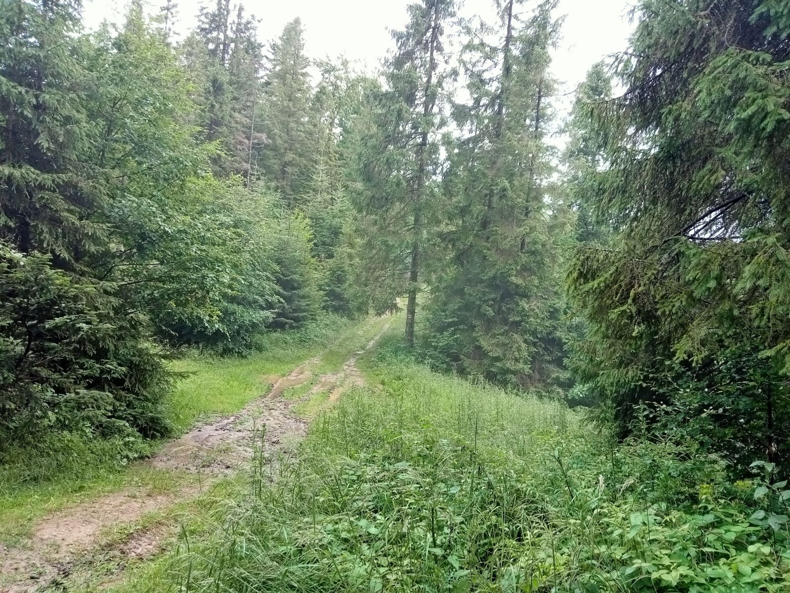 Po noclegu, pobudka o 4:00 i wyruszamy o 5:00. Buty po poprzednim dniu dalej całe mokre. Dobrze, że mamy ze sobą po kilka par zapasowych skarpet. Ciepły poranek, jest mgła. Nie ma żywej duszy w zadbanym centrum choć i może pamiętającym poprzednią epokę. Nie ma co nas cieszy.... psów ;) Kościół uroczo chowa się za mgłą wchodzimy na szlak do Podolinca.