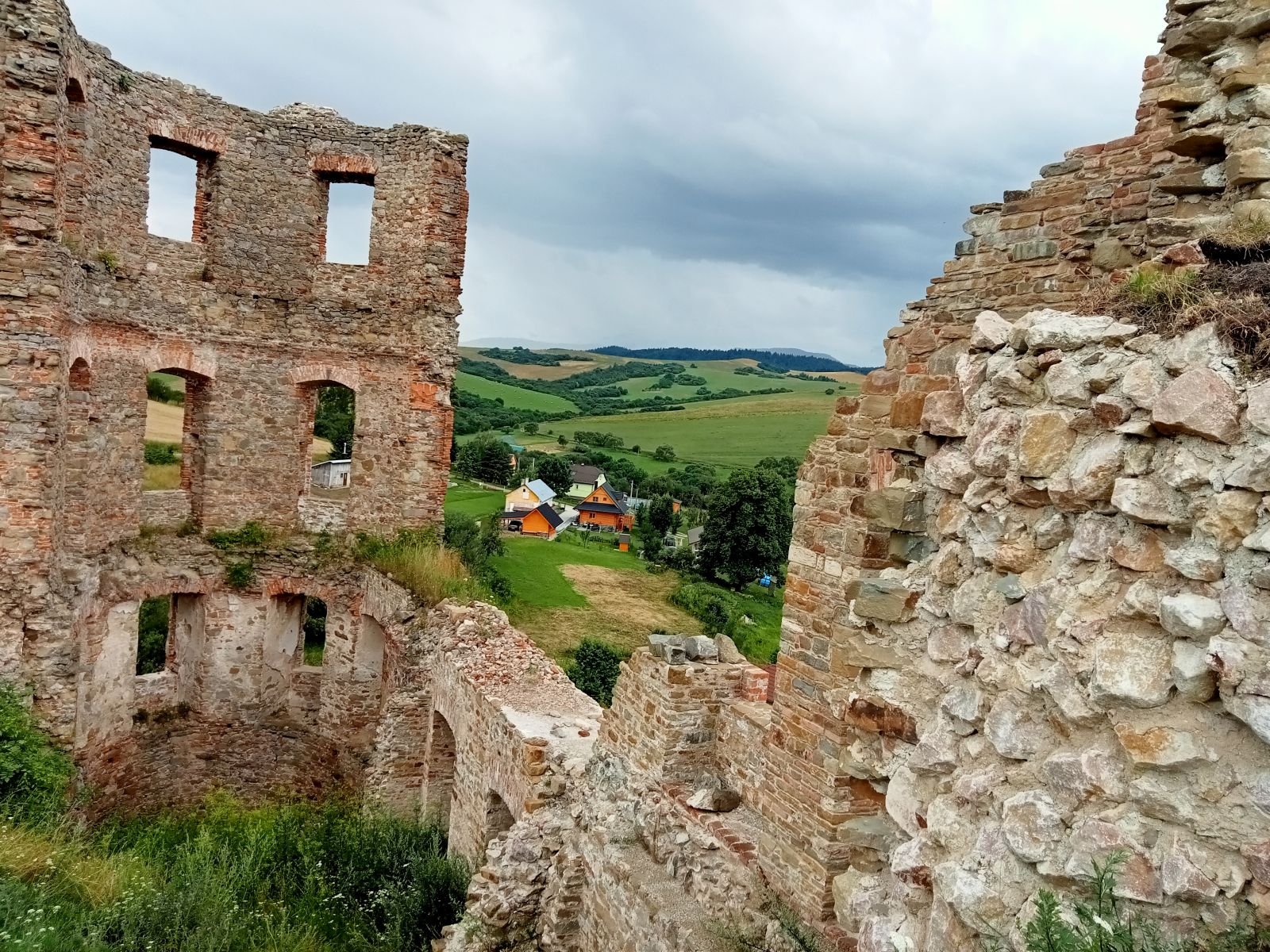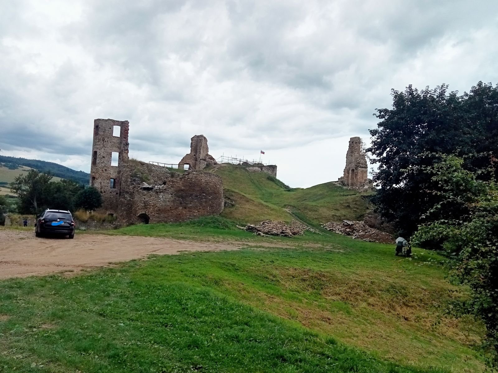 Wysiadamy w miejscowości Plavec. Do zamku mamy około kilometra, zaczyna kropić. Po niezbyt ostrym podejściu jesteśmy na szczycie. Jest tu informacja turystyczna - sporo zaskoczenie, można pracownika i to nie jednego zasięgnąć informacji. W Polsce nie spotkaliśmy się z takową placówką w takim miejscu. Są automaty do kawy itd. wiata gdzie można się schować przed deszczem i miejsce na ognisko z ławkami i .... grill. Zamek prezentuję się okazale. Jest rozłożone rusztowanie, betoniarka co świadczy, że cosik ten zamek remontują. Z samej góry fajny widok na Plavec - rzekę Poprad i staw.