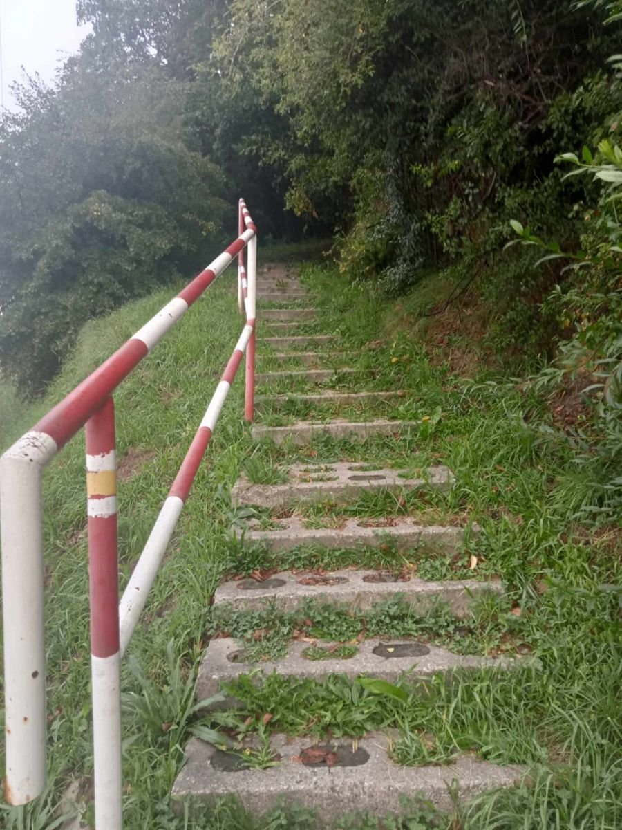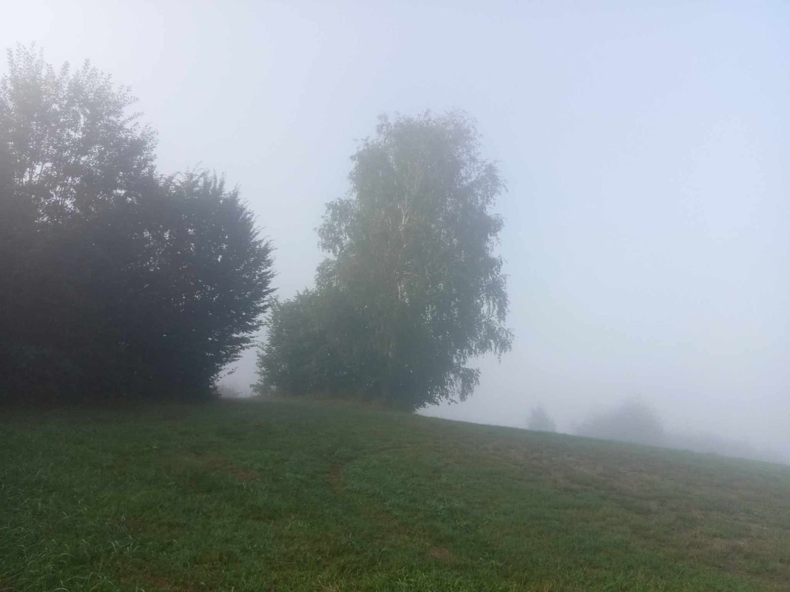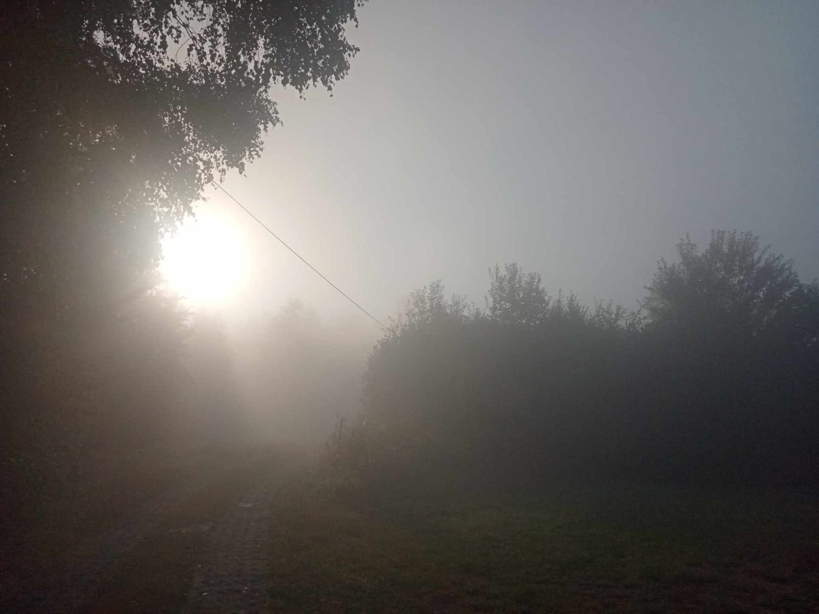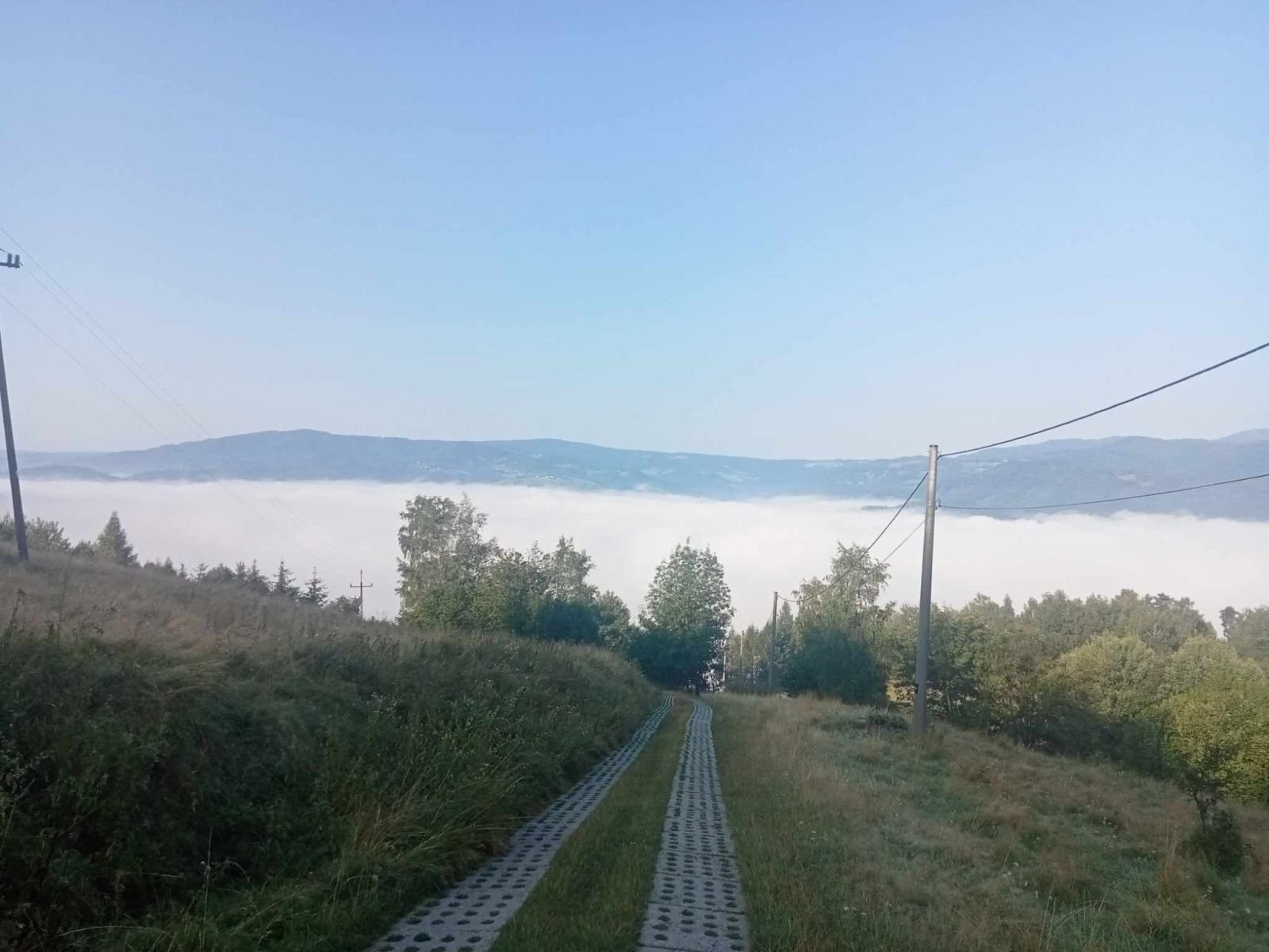 Etap przechodzenia przez gęstą mgłę, po chwili jesteśmy już w pełnym słońcu mgła została na dole. Jest duszno, parno.