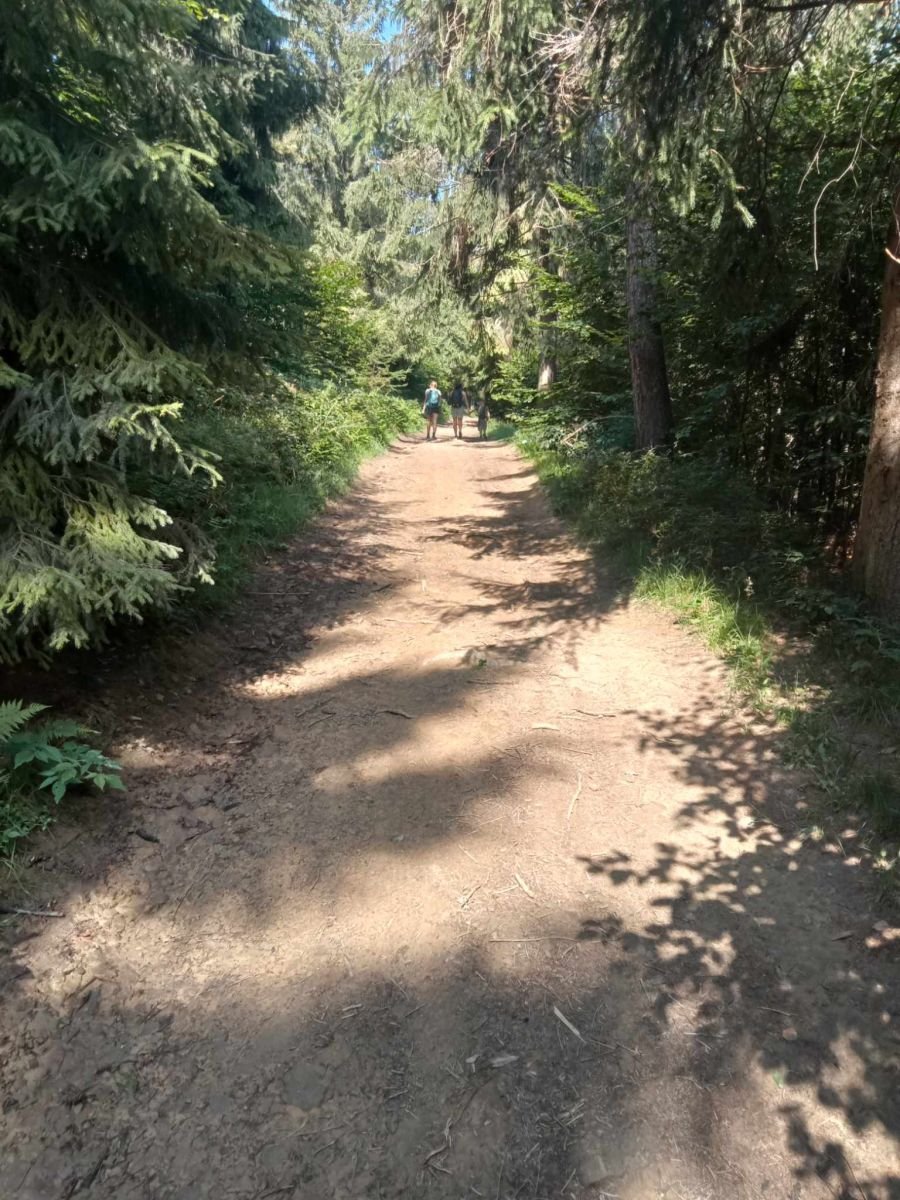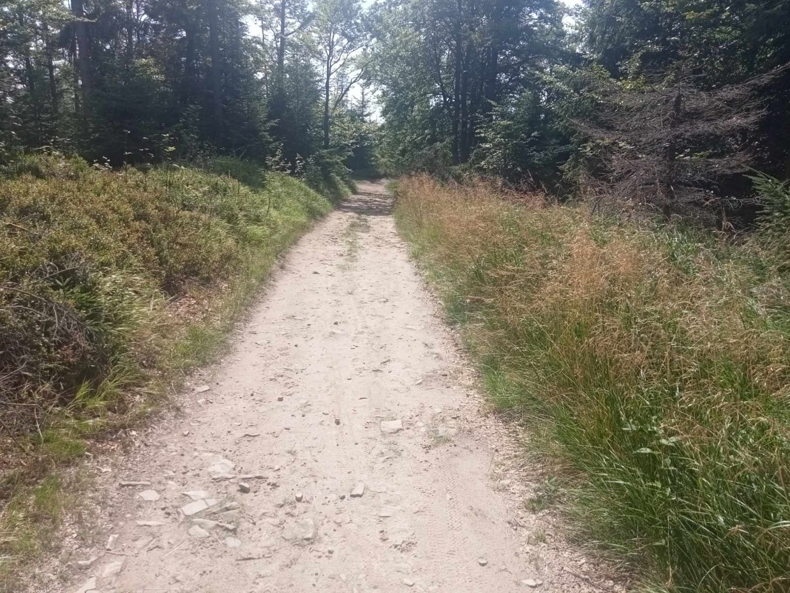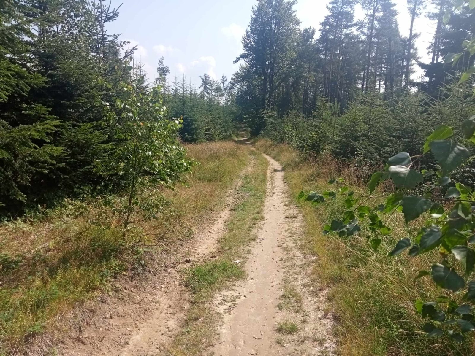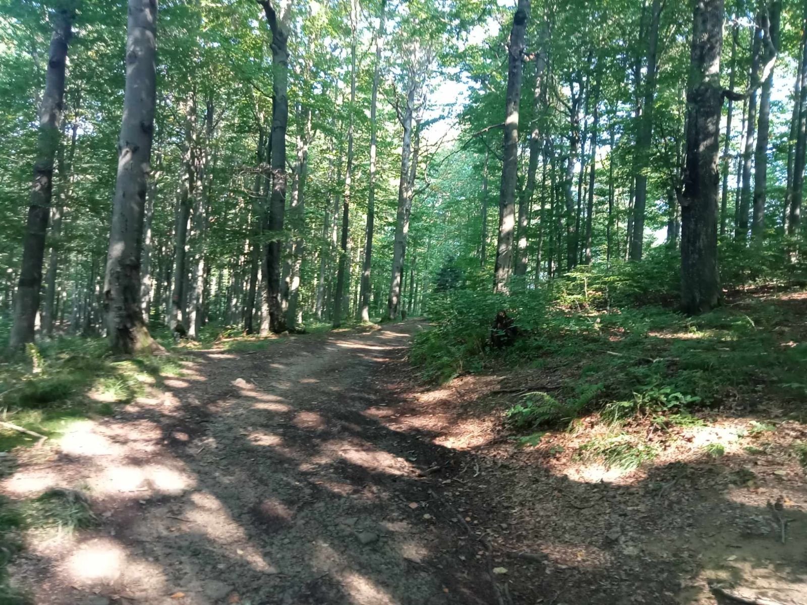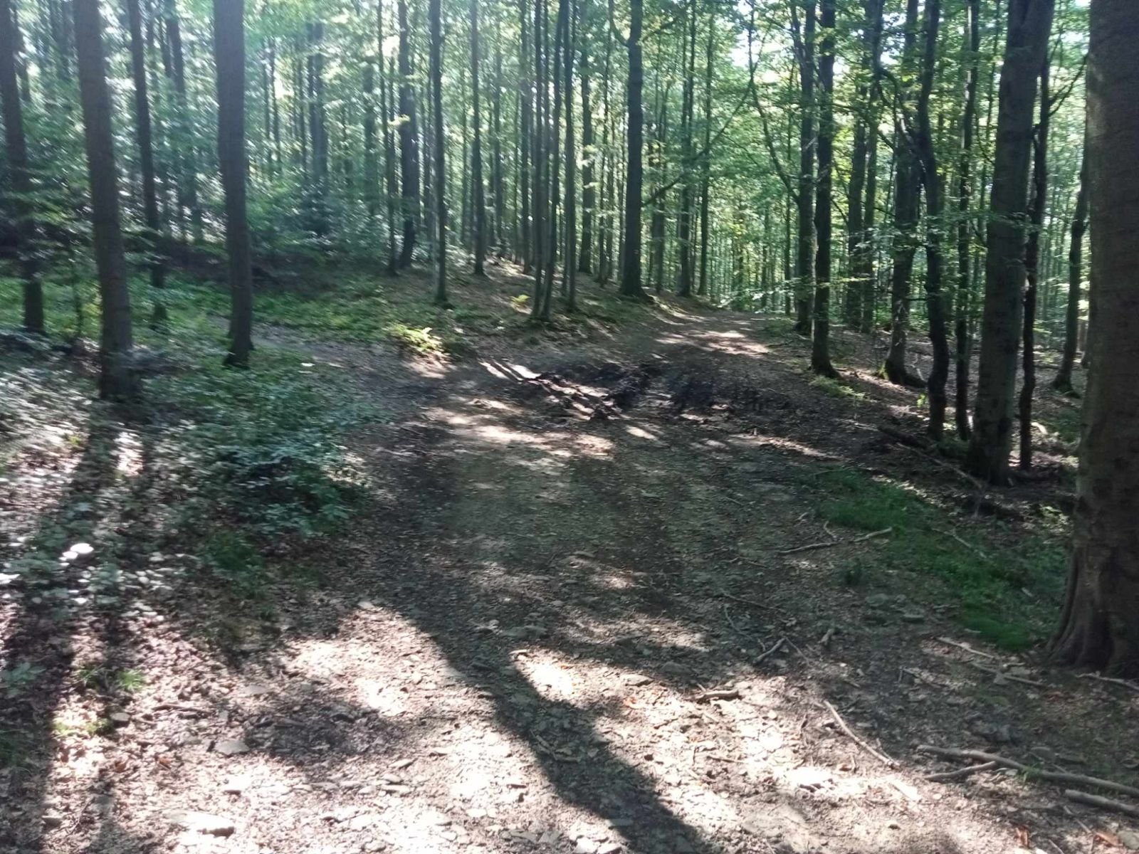 Runek szczyt do którego sporo osób podążą ze strony Muszyny - po drodze bardzo dużo osób taki cel miało przed sobą. Wierzchołek jest całkowicie pokryty lasem widoki są tu marne. Jeżeli już tu jesteśmy i to jest nasz cel wyprawy polecamy skręcić w kierunku Bacówki nad Wierchomlą i tam widoki już powinny być lepsze. Trochę tu wieje co przy tym upale daje trochę oddechu. Na szlaku spotykamy dość sporo osób z małymi dziećmi, które niekoniecznie są przygotowane na taką drogę...
