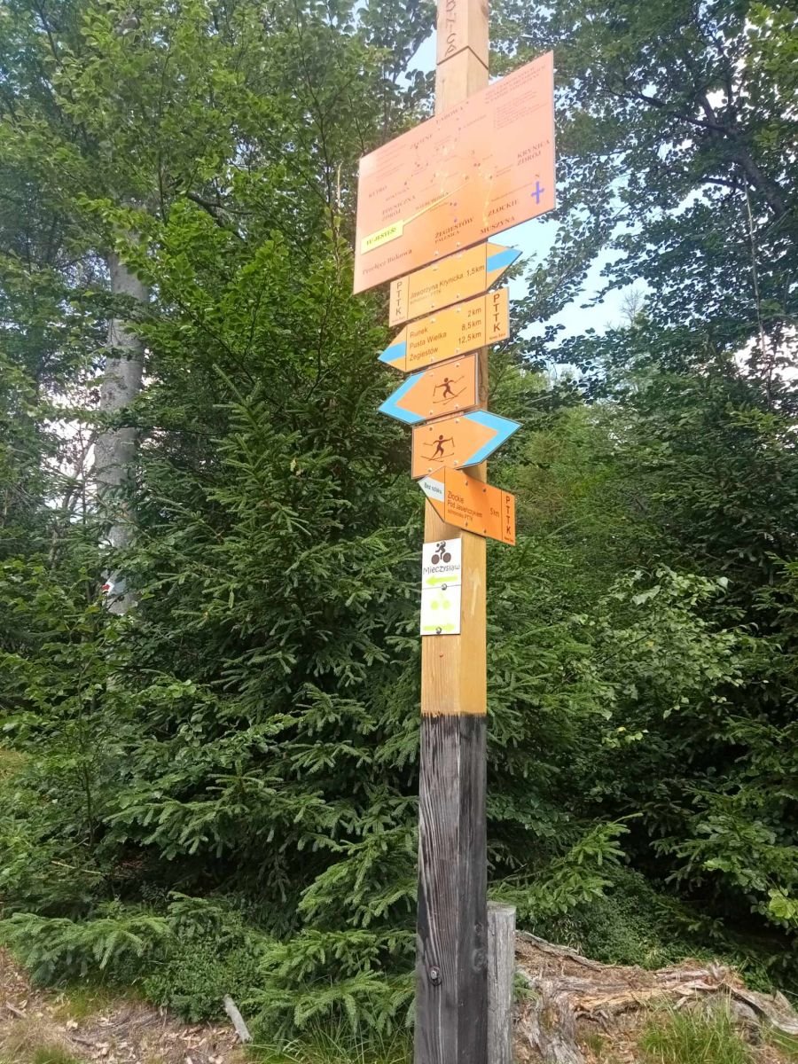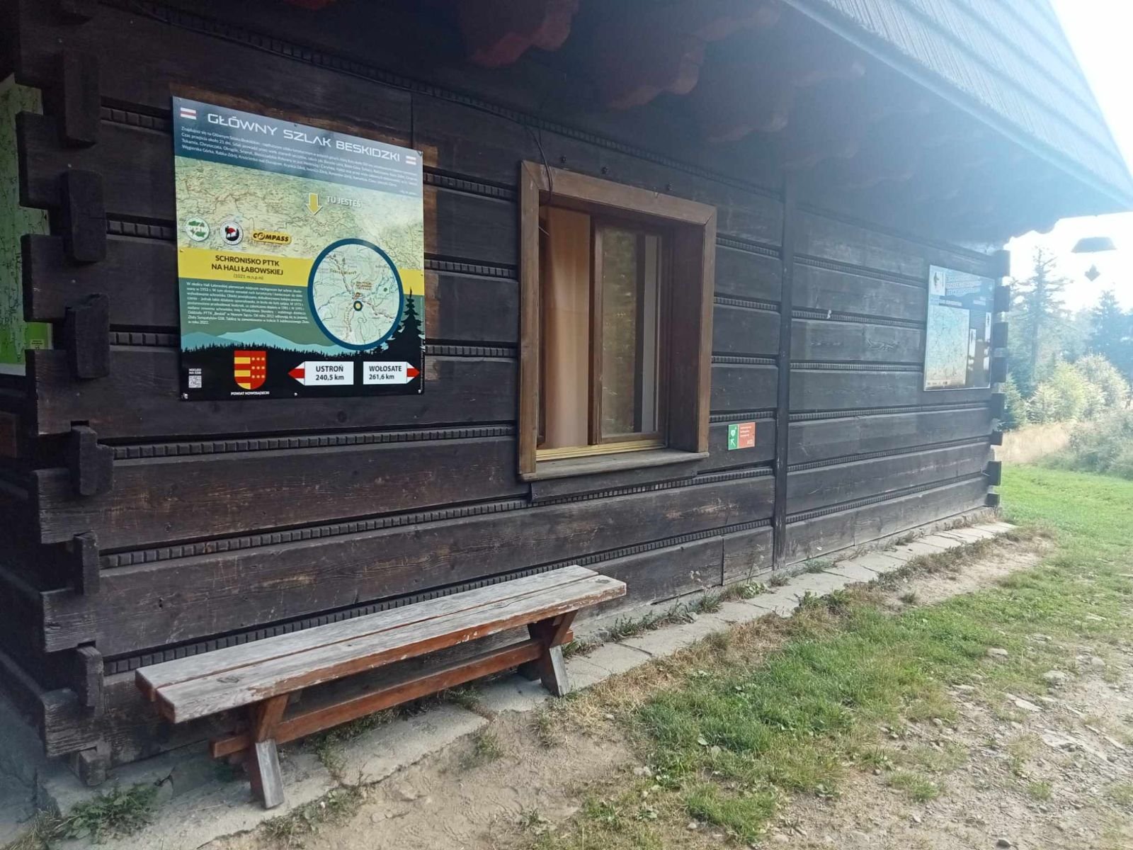 Jest godzina ... w schronisku sporo osób. Jedni jedzą pomidorową inni piją kawusie z rana jest bardzo przyjemnie. Schronisko jest położone mniej więcej w środku GSB czyli Głównego Szlaku Beskidzkiego. Są tu wiaty różnego rodzaju informację historyczne trochę tego na "naszej" Przehybie brakuję, choć zdecydowanie lepsze widoki są właśnie tam.