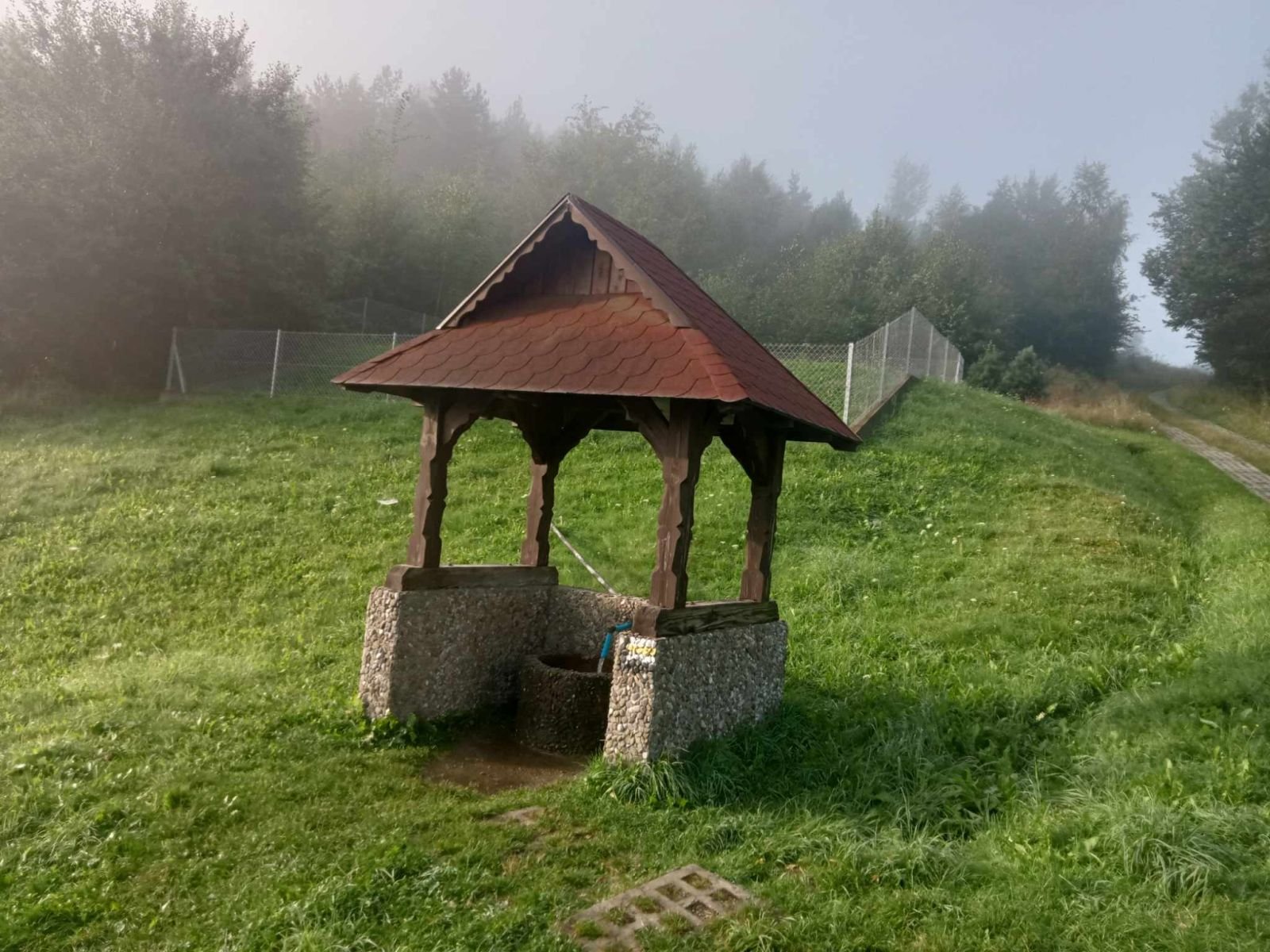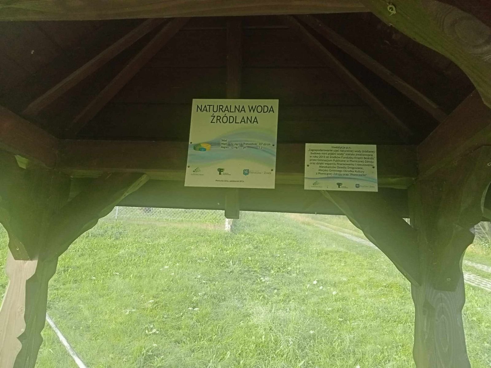 Po kilkunastu minutach marszu Źródełko na osiedlu Piwniczna Zdrój - Jarzębaki. Woda pyszna zimna. Ten "kompleks" powstał w 2013 roku ze środków Funduszu Kropli Beskidu. Przy wiacie podany jest skład naturalnej wody źródlanej jak ktoś się na tym zna. Idzie się naprawdę przyjemnie widoki na żółtym szlaku rzeczywiście kapitalne.