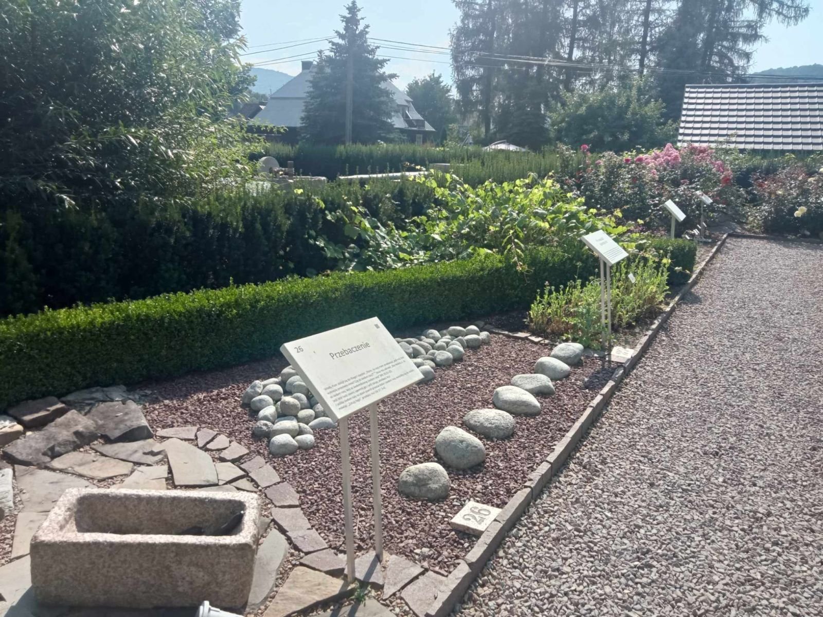 w 2015 roku powstało unikatowe miejsce na mapie Sądecczyzny. Na obszarze ok.1.3 ha umieszczono liczne tabliczki z cytatami biblijnymi, kompozycje roślinne oraz rzeźby i małą architekturę. Elementy te w sposób obrazowy zachęcają odwiedzających do odkrycia piękna Objawienia. Przybliżają geografię i kulturę rolniczą Ziemii Świętej. W ogrodzie można odpocząć , usiąść na ławce, napić się wody mineralnej ze źródła "Maryja" Jest też specjalne miejsce przeznaczone do zabawy dla dzieci /muszynskie ogrodybiblijne.pl/