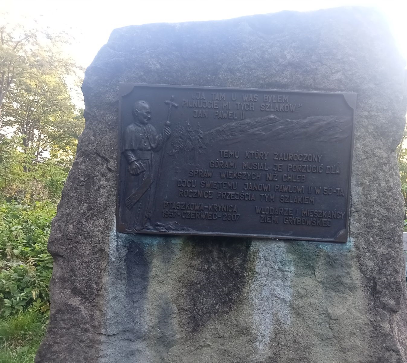 Informacja, że wędrował tym szlakiem Karol Wojtyła.