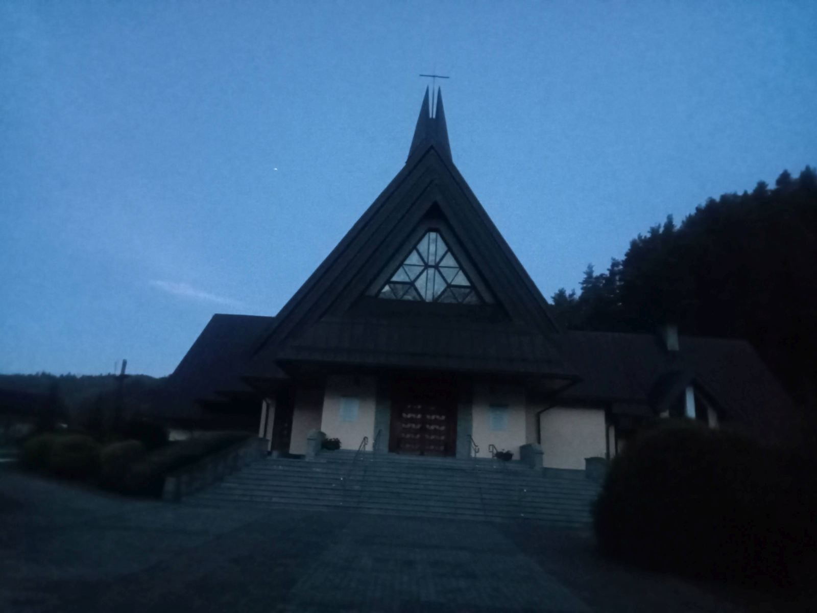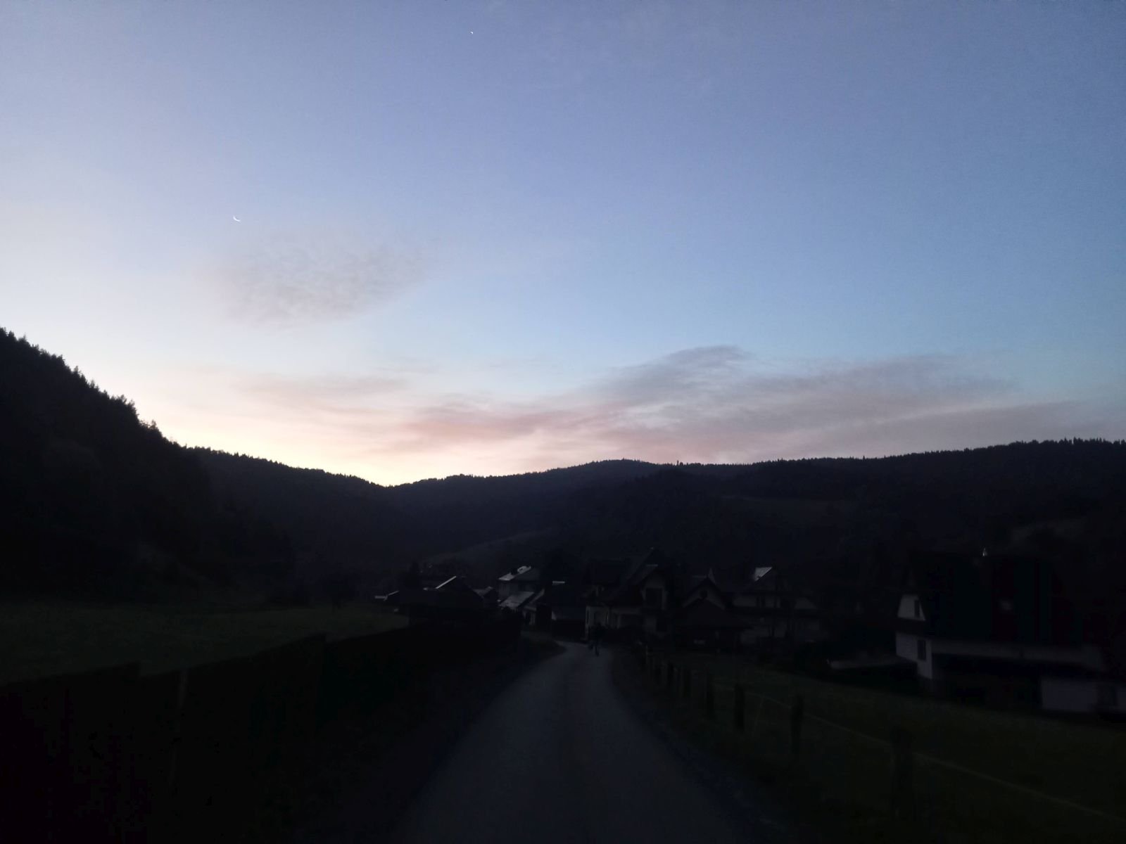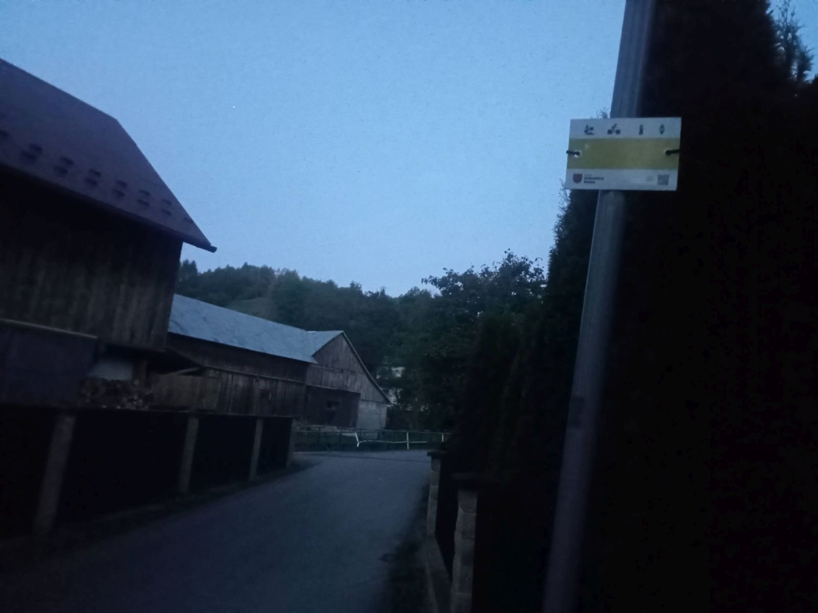 Ochotnica Górna, ponad 2 tysiące mieszkańców. Swego czasu wraz z Ochotnicą Dolną tworzyły najdłuższą wieś w Polsce. Zabudowania sięgają tu nawet powyżej 1000 m n.p.m. Jest ciemno, przechodzimy koło szkoły i kościoła. Coś nam się zdaję, że kiedyś w tym miejscu kończyliśmy jedną z wypraw;) kierujemy się na szlak. Idziemy wzdłuż potoku, robi się szybko coraz jaśniej.