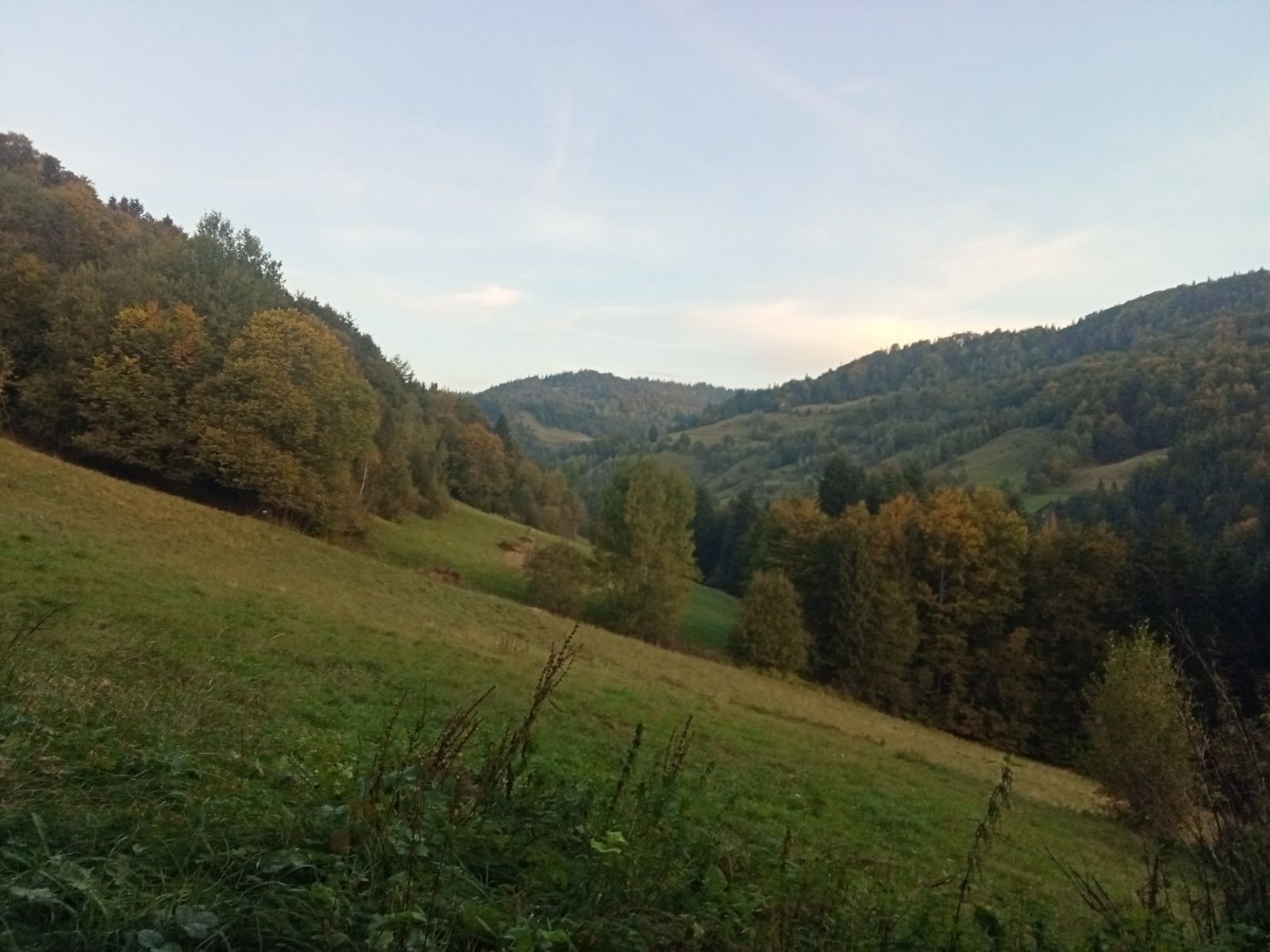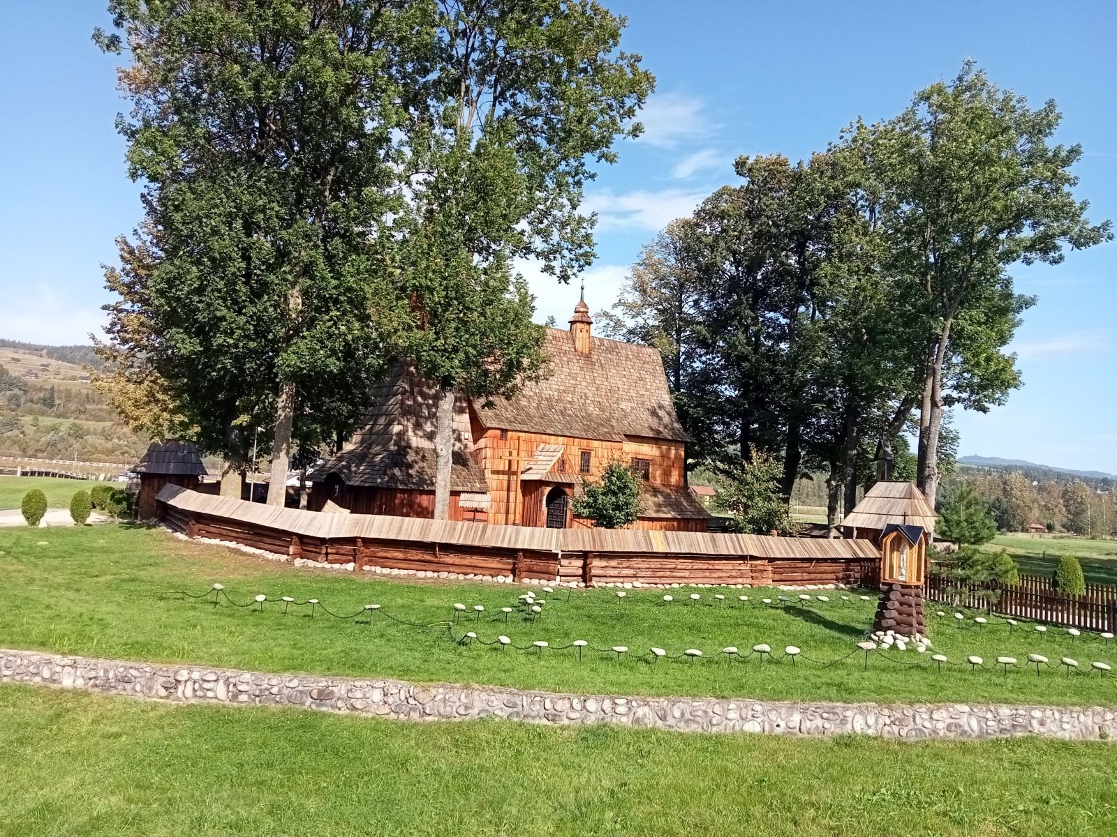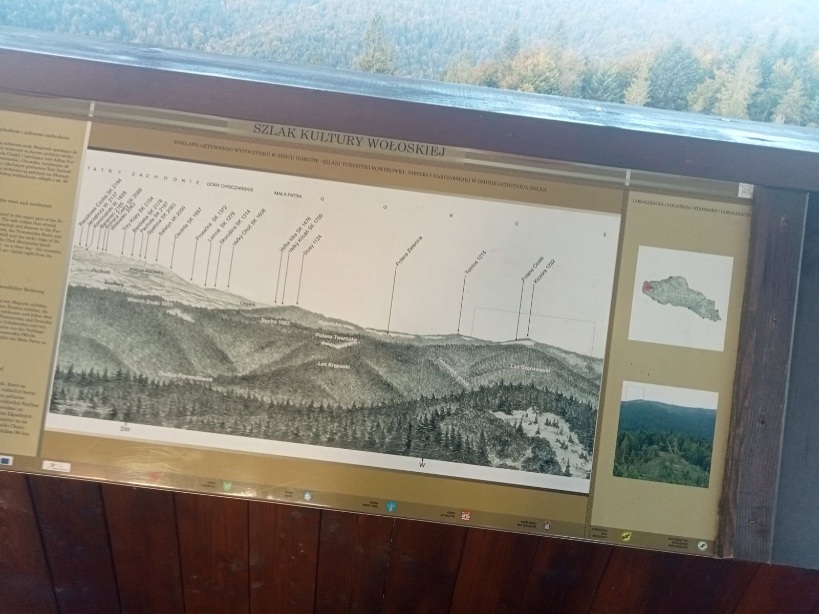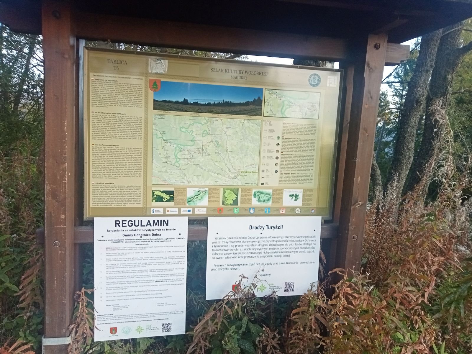 Koliba Królczyków na Polanie pod Magurką czyli luźne dawne zabudowania pasterskie - jesteśmy na Szlaku Kultury Wołoskiej. Sporo tablic edukacyjnych, idzie się bardzo dobrze szlak nie jest wymagający.