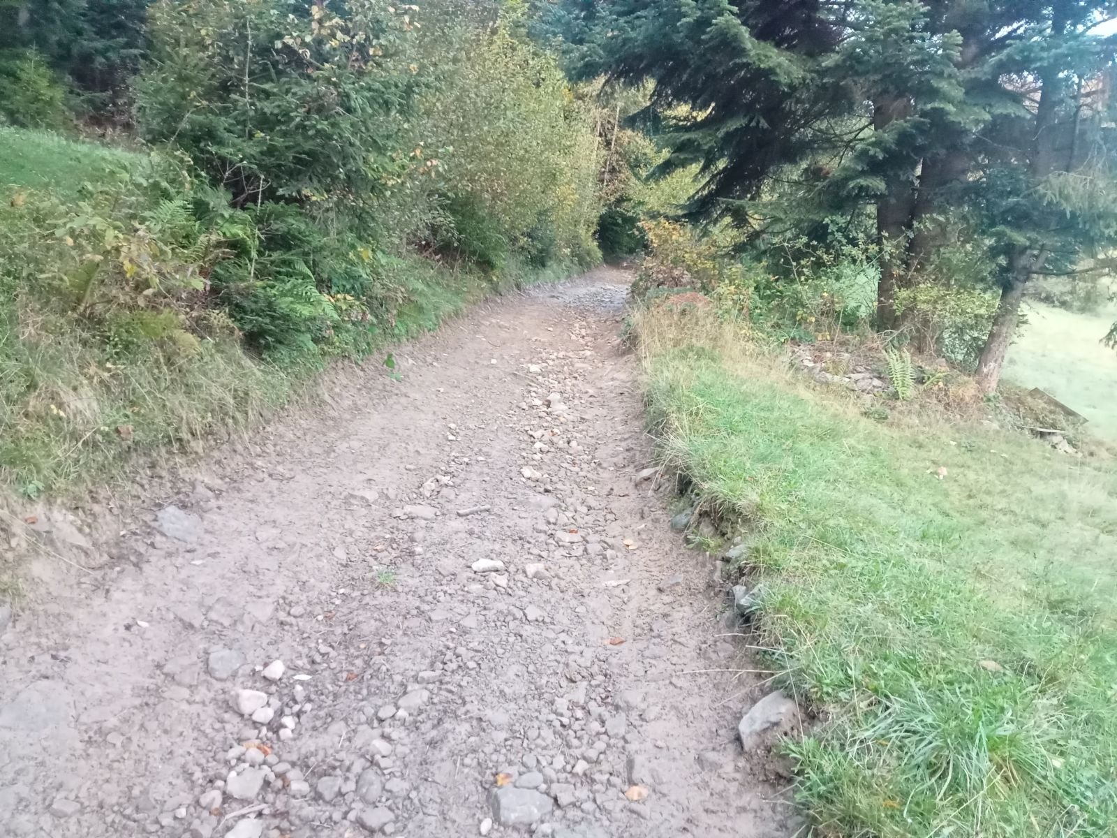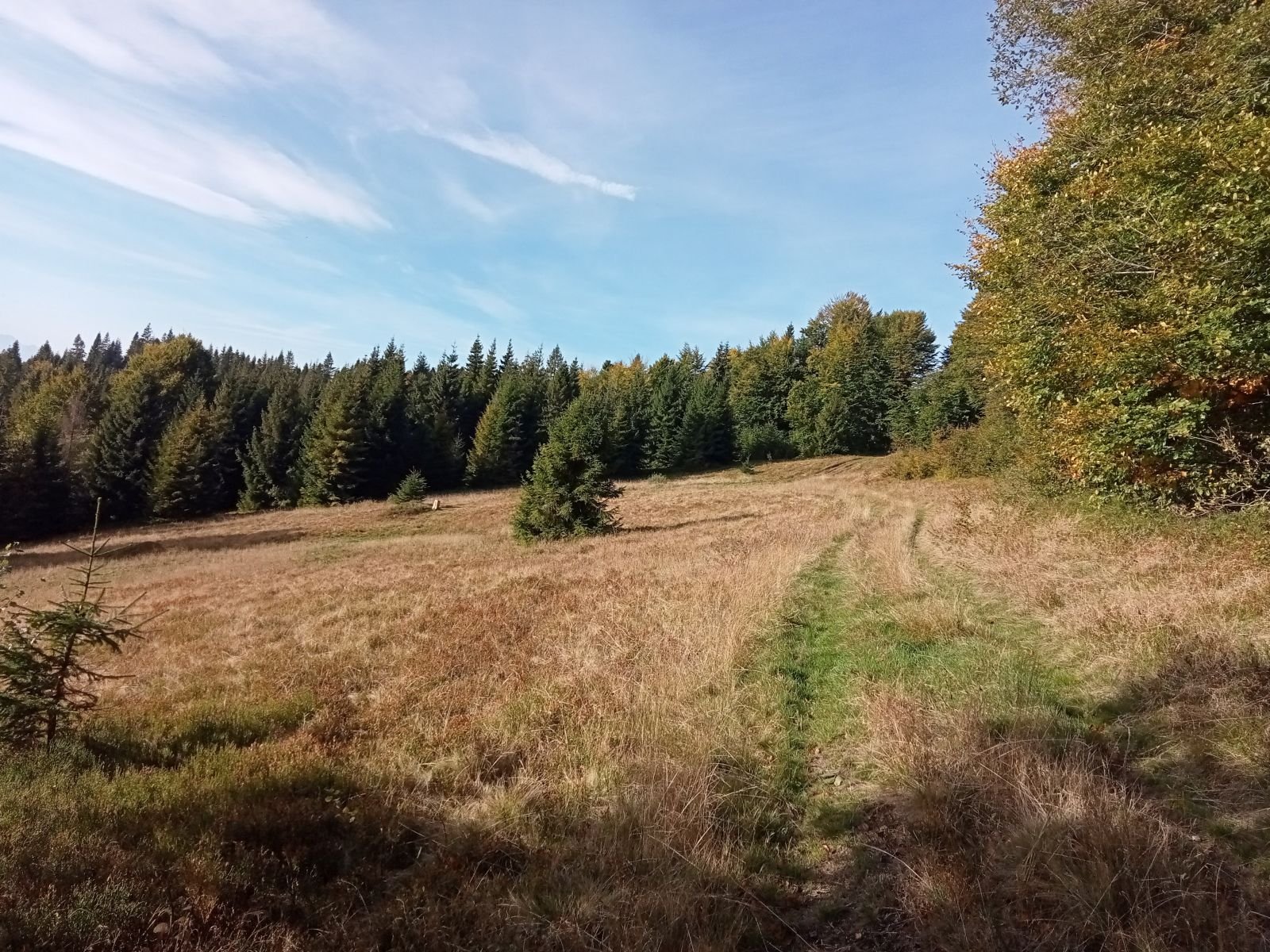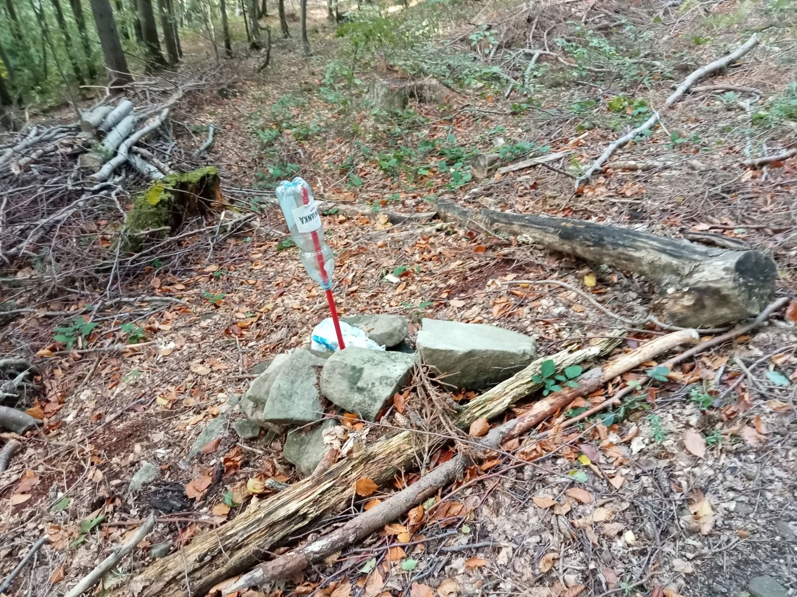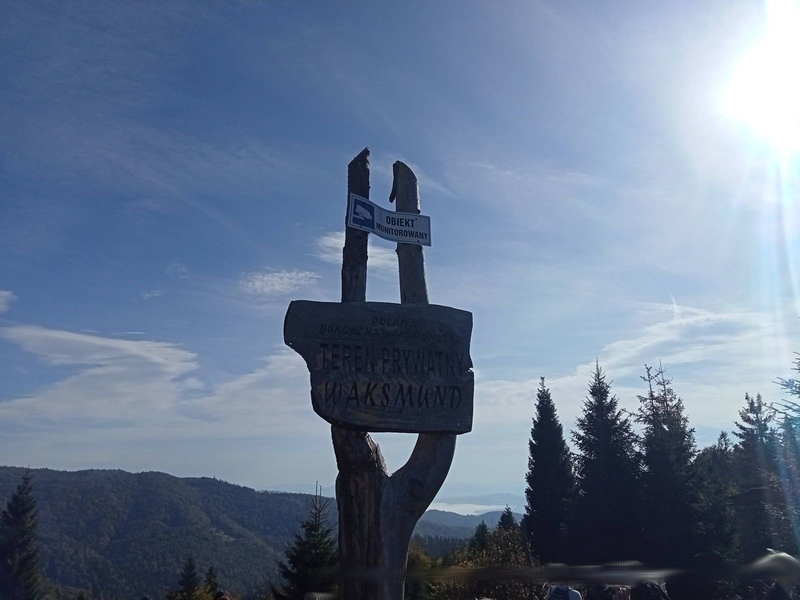 Między Magurkami a czerwonym szlakiem, który prowadzi na Turbacz nie ma typowego szlaku, jest tylko ścieżka. Co jakiś czas mijamy takowe oznaczenia, czy tu powstanie szlak? czy oznacza to coś innego tego nie wiemy. Samo dojście do czerwonego szlaku sprawia nam wiele trudności. Nawigacja w telefonie wiesza się lub myli ścieżki, których tu w niektórych miejscach jest sporo. Bardzo trudny etap wycieczki jeden z najtrudniejszych jakie nas spotkały przez te lata. Według nas nie ma możliwości przejścia tego etapu bez błądzenia. Na szczęście udało nam się wbić na czerwony szlak ufff teraz to już z górki, a było naprawdę nerwowo.