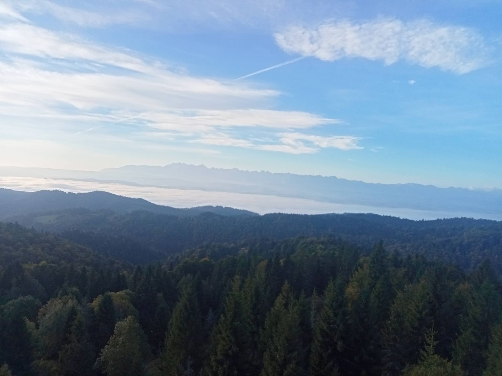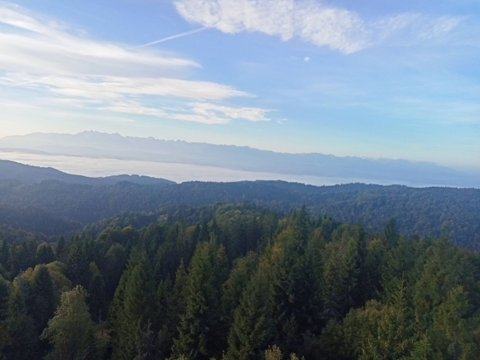 Tego dnia widoki z wieży niczego sobie. W oddali Tatry i poniżej biała kołderka...