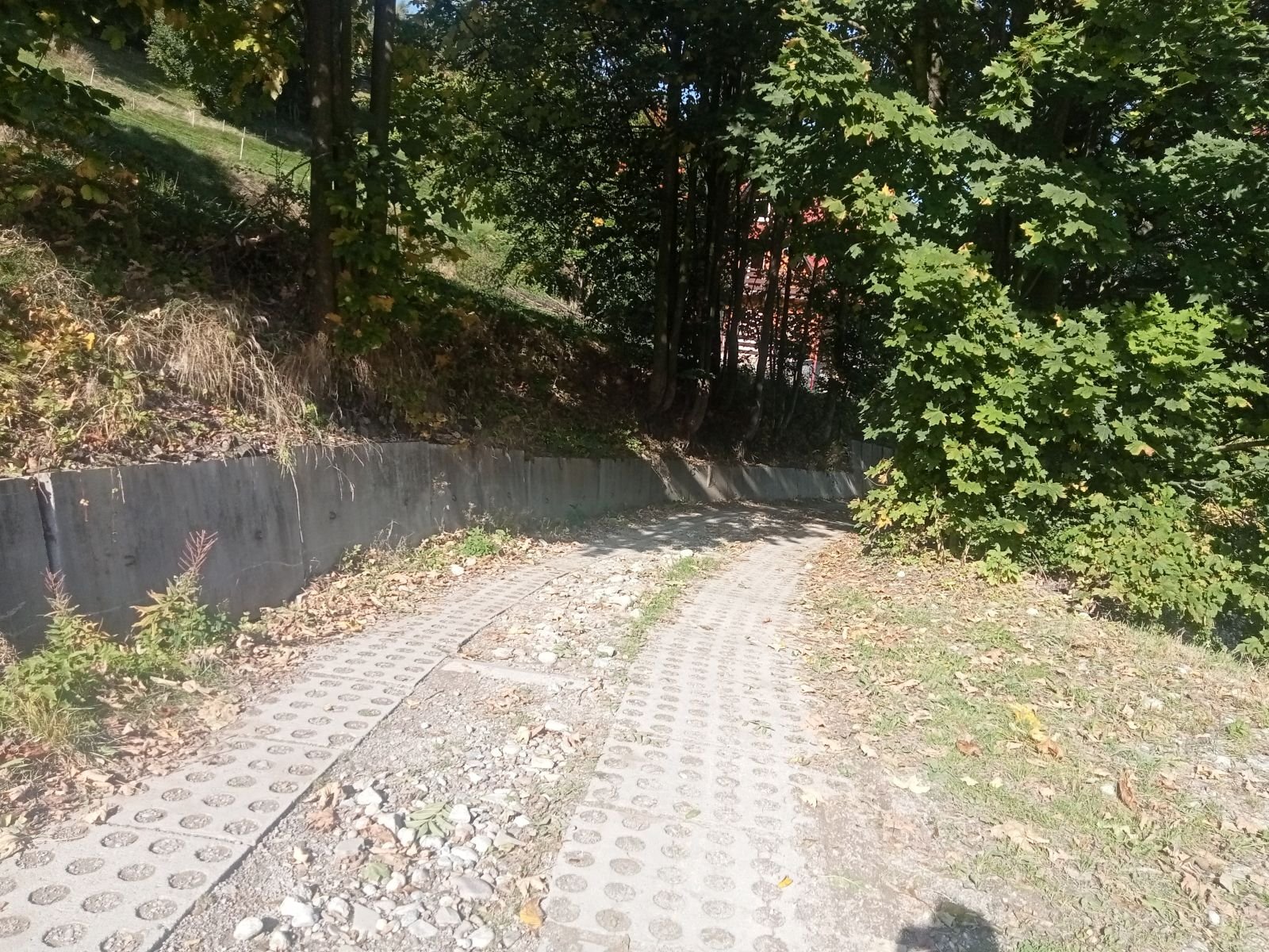 Idąc przez osiedle Kosarzyska, towarzyszy nam gęsta zabudowa. Domy naprawdę bardzo ładne a ogrody ho ho. Dochodzimy do początku ścieżki! Spokojnie do tego etapu można dojechać samochodem gdziesik tam w oddali znajduję się parking. My skręcamy w lewo a jeżeli ktoś idzie ścieżką edukacyjną wróci prawą stroną.