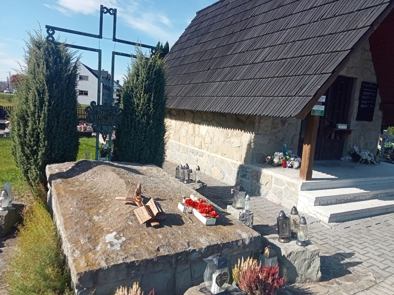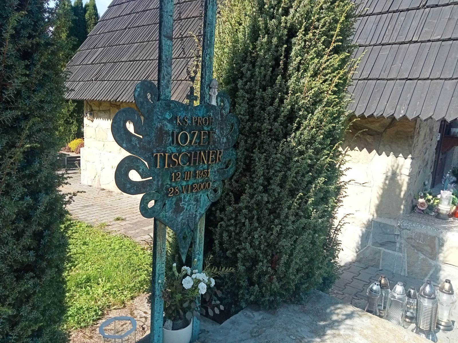 Grób Księdza Józefa Tischnera. Józef Tischner zmarł w Krakowie w 2000 roku. Był Profesorem Papieskiej Akademii Teologicznej w Krakowie i kawalerem Orderu Orła Białego. Autor wielu książek. Generalnie jego osoby nie trzeba przedstawiać, wspaniały człowiek. Grób ma nierówną powierzchnie na wzór pasma Gorców. Ksiądz Józef organizowała msze święte w kaplicy pod szczytem Turbacza skąd zeszliśmy.