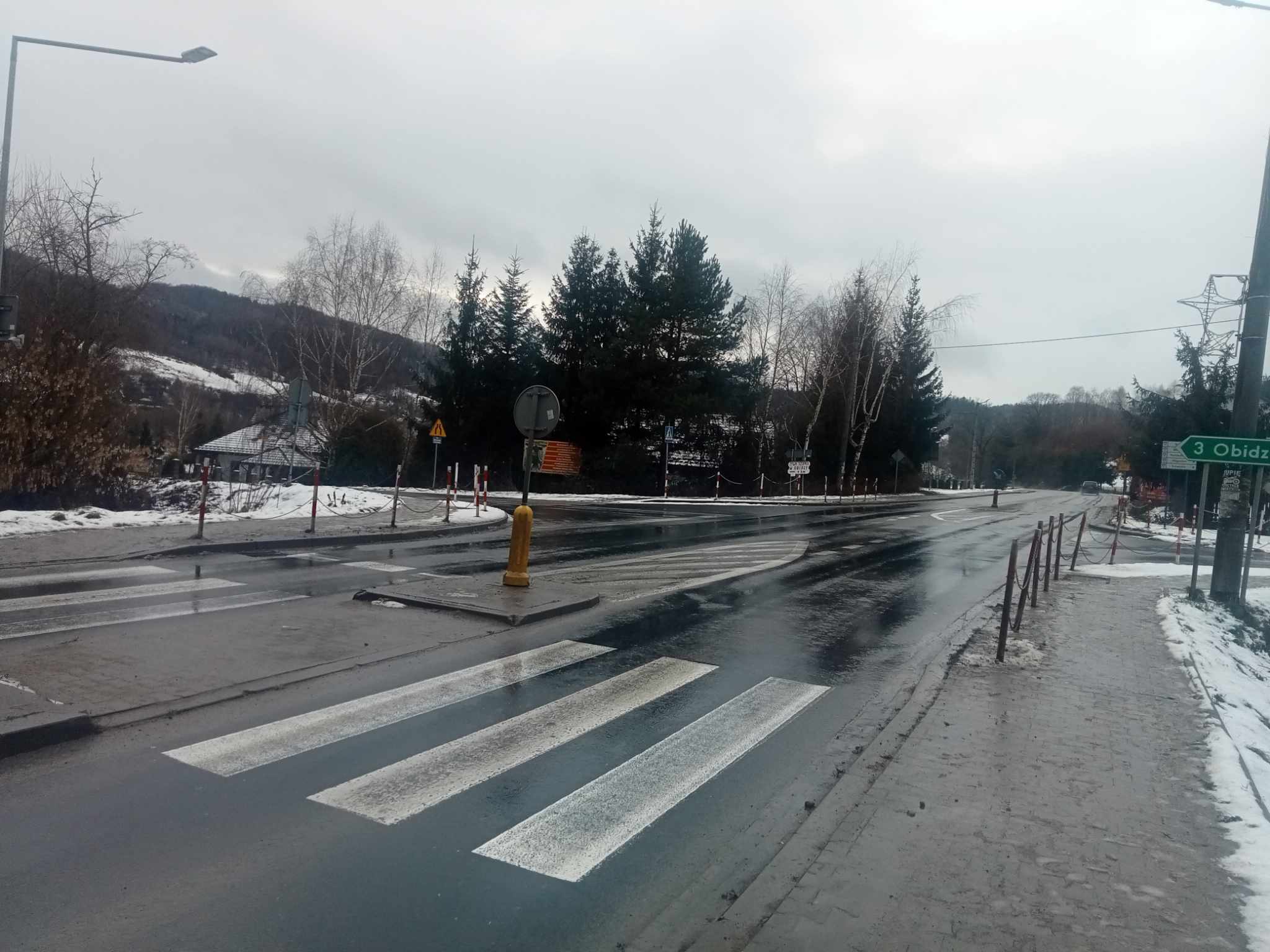 Skręt do szopki i na parking przy kościele w Obidzy.