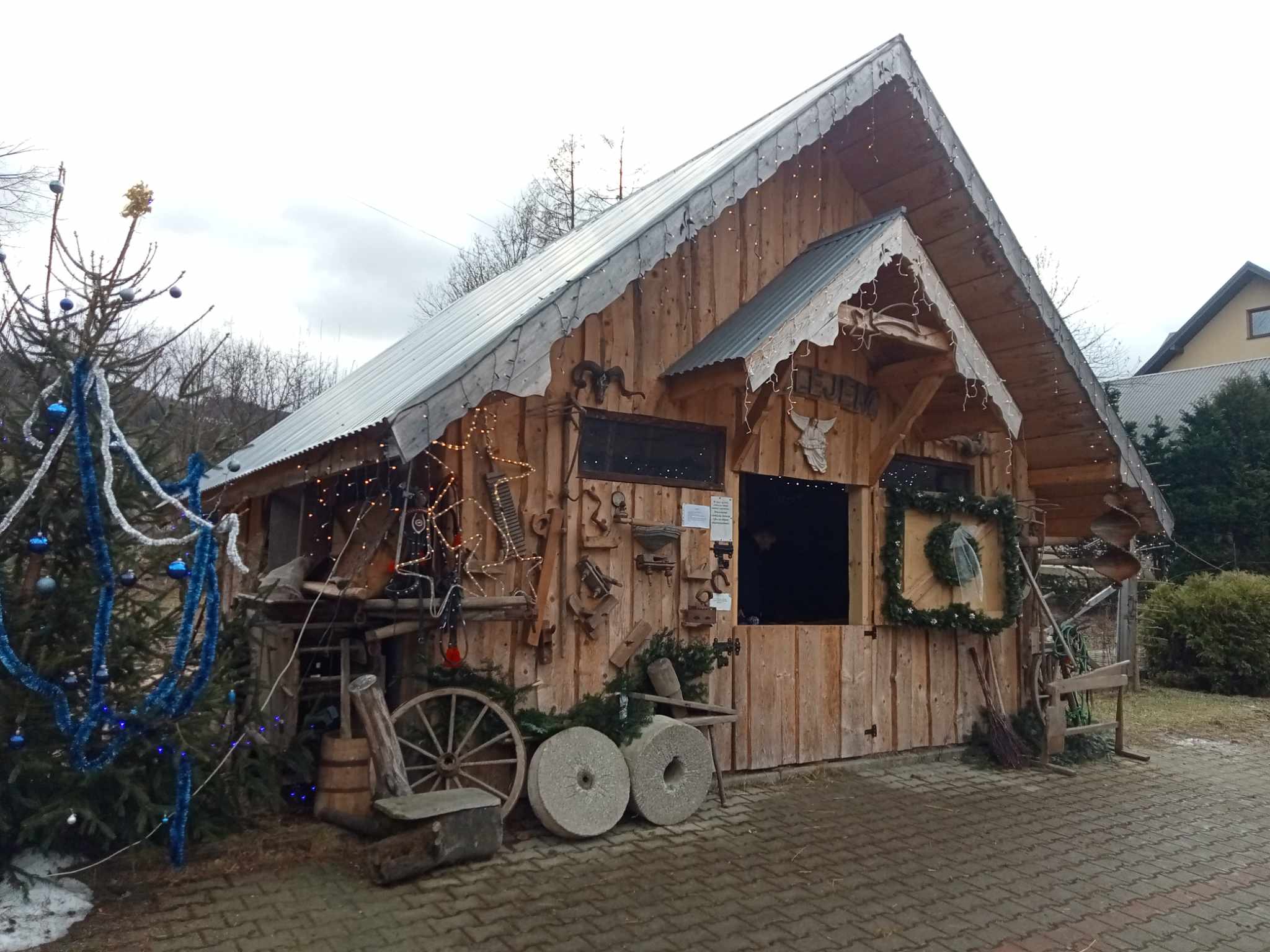 Szopkę można zwiedzać do 7 stycznia w godzinach 9:00 - 20:00. Jadąc od Nowego Sącza mijamy stację paliw Moya, budynek OSP w Jazowsku i po chwili na skrzyżowaniu drogi skręcamy w lewo ( w prawo jest skręt do kościoła w Jazowsku) i tak jak na widocznym zdjęciu jedziemy 4 kilometry powiatową drogą w górę Obidzy.