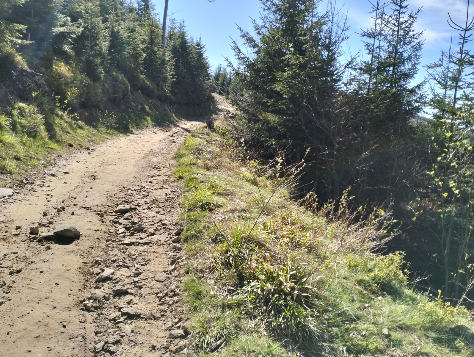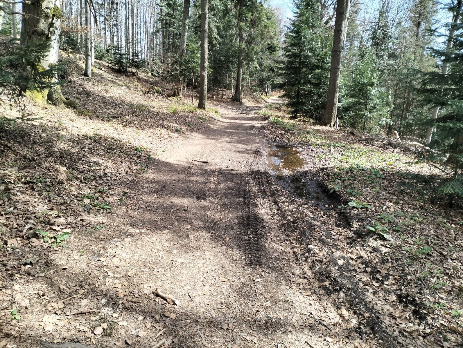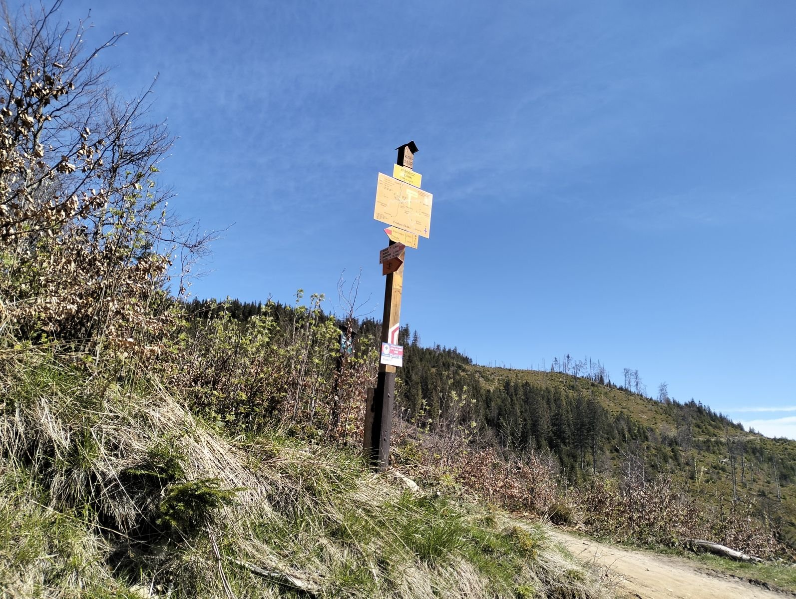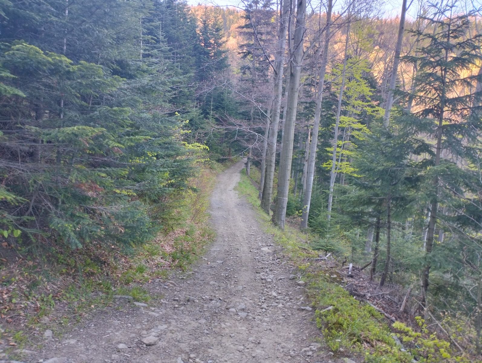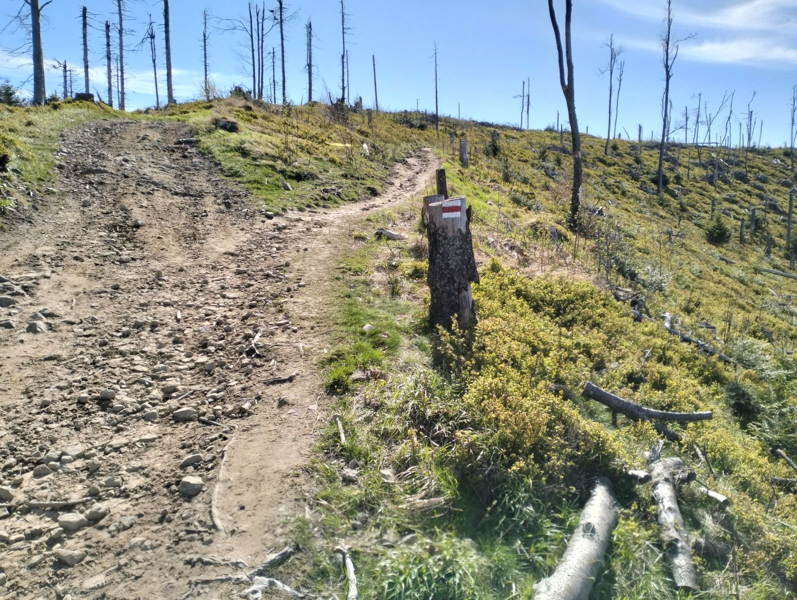 Skręcamy na słynny czerwony szlak, którym podąża kultowy najdłuższy szlak w Polsce GSB. Do samego Rytra albo idziemy płaską drogą, albo schodzimy w dół.