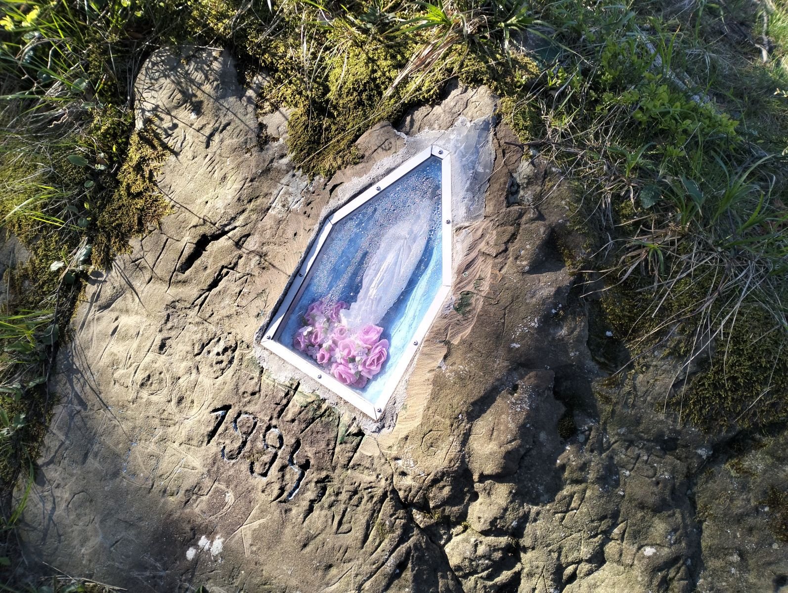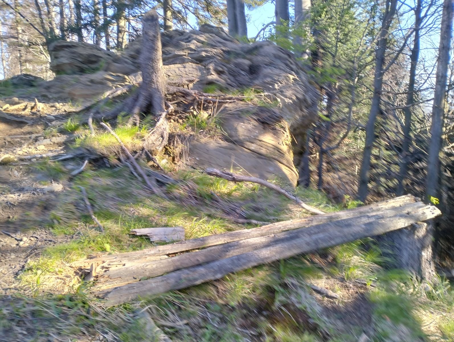Skała z wizerunkiem Świętej Kingi. Jest to fantastyczne miejsce, dookoła skałki, fajny klimat. Jest tu gdzie siąść i porozmyślać....Jeżeli planujecie przerwę w marszu to koniecznie w tym miejscu. Najtrudniejsze chwilę marszu mamy już za sobą, jeszcze małe podejście na Polanę Bobową i idziemy już do schroniska bez większego wysiłku.