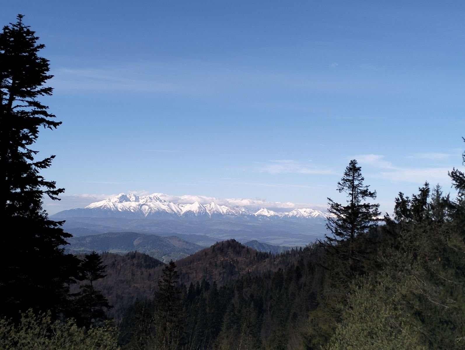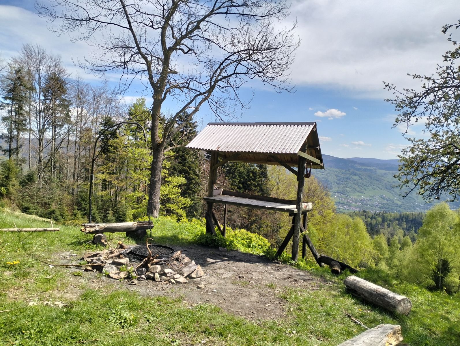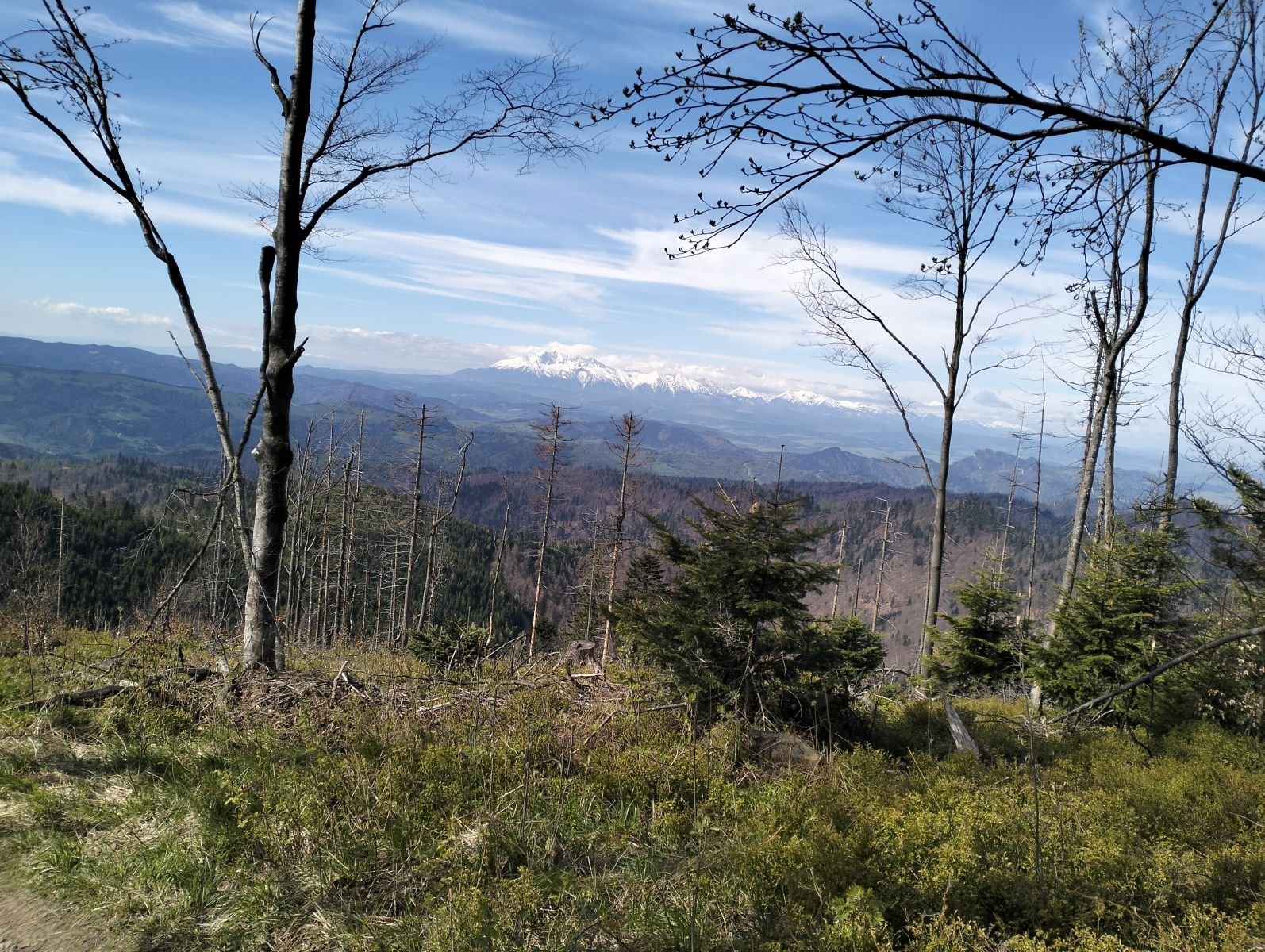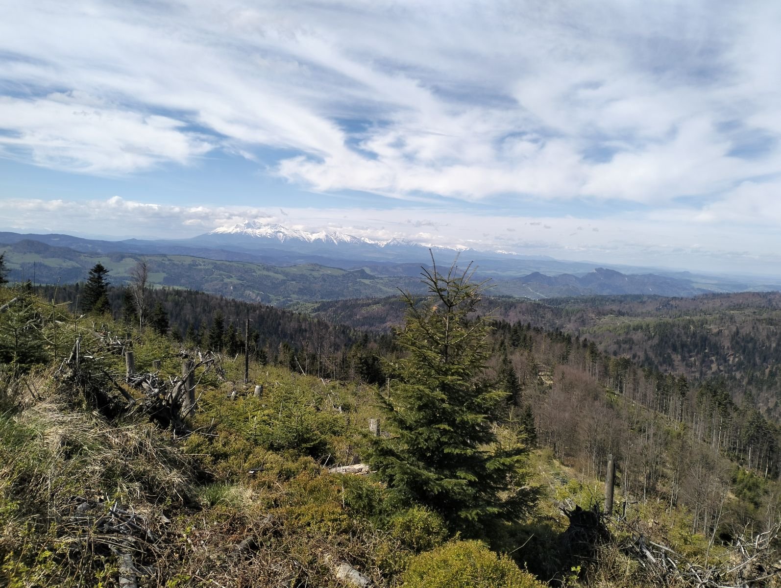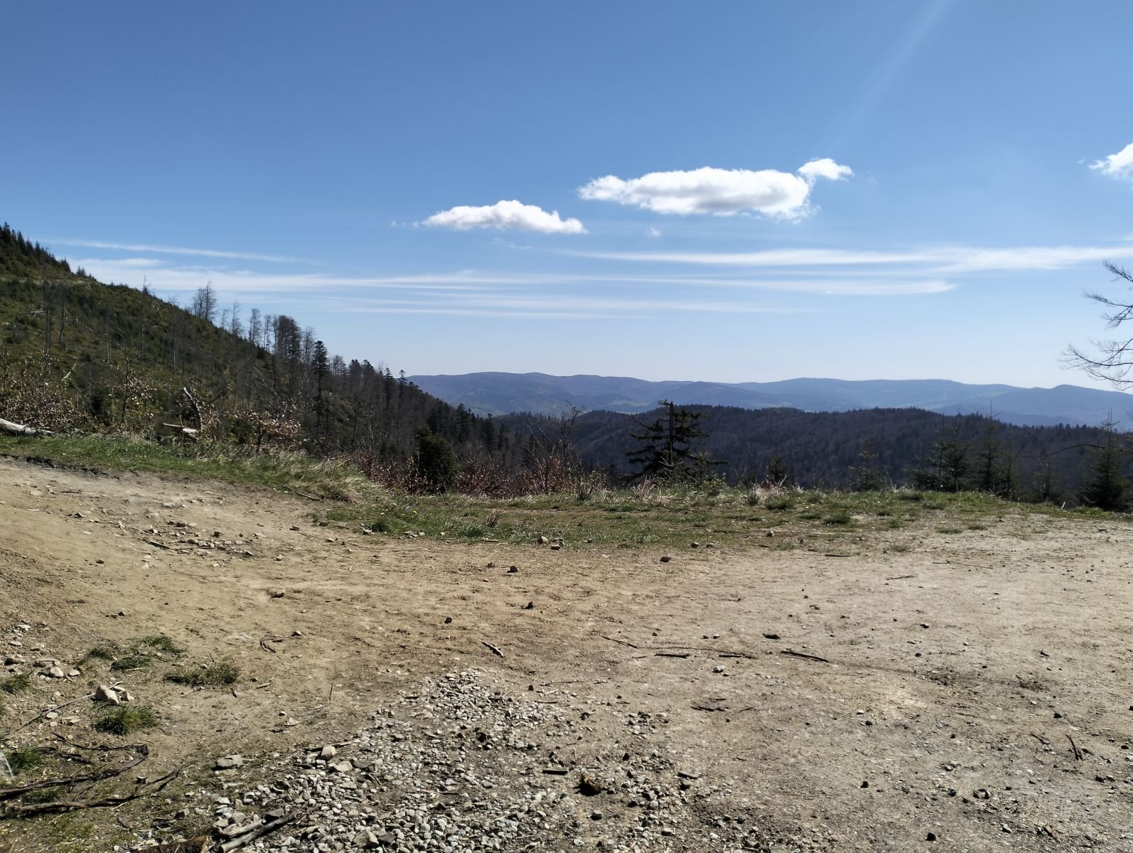 Z tego miejsca znakomicie widać Pasmo Jaworzyny. Kilkadziesiąt metrów dalej co widać na zdjęciu ławeczka, z bardzo dobrym miejscem na ognisko.... i z takim widokiem... fantastyczna sprawa.