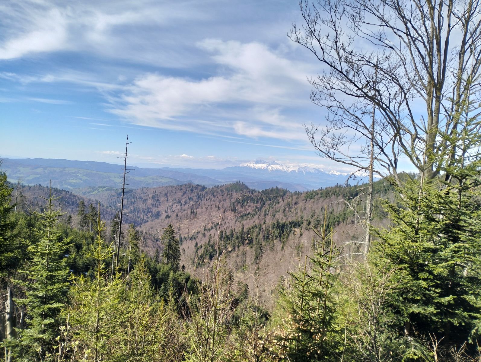 Takie piękne widoki w tym dniu mieliśmy z Przehyby. Przejrzystość powietrza bardzo dobra. Generalnie wszystko wspaniale tylko ten wiatr. Turystów w schronisku bardzo dużo, większość oczekujących na bufet to osoby, które nocowały. Oczekiwanie na posiłek, dłuższa przerwa.