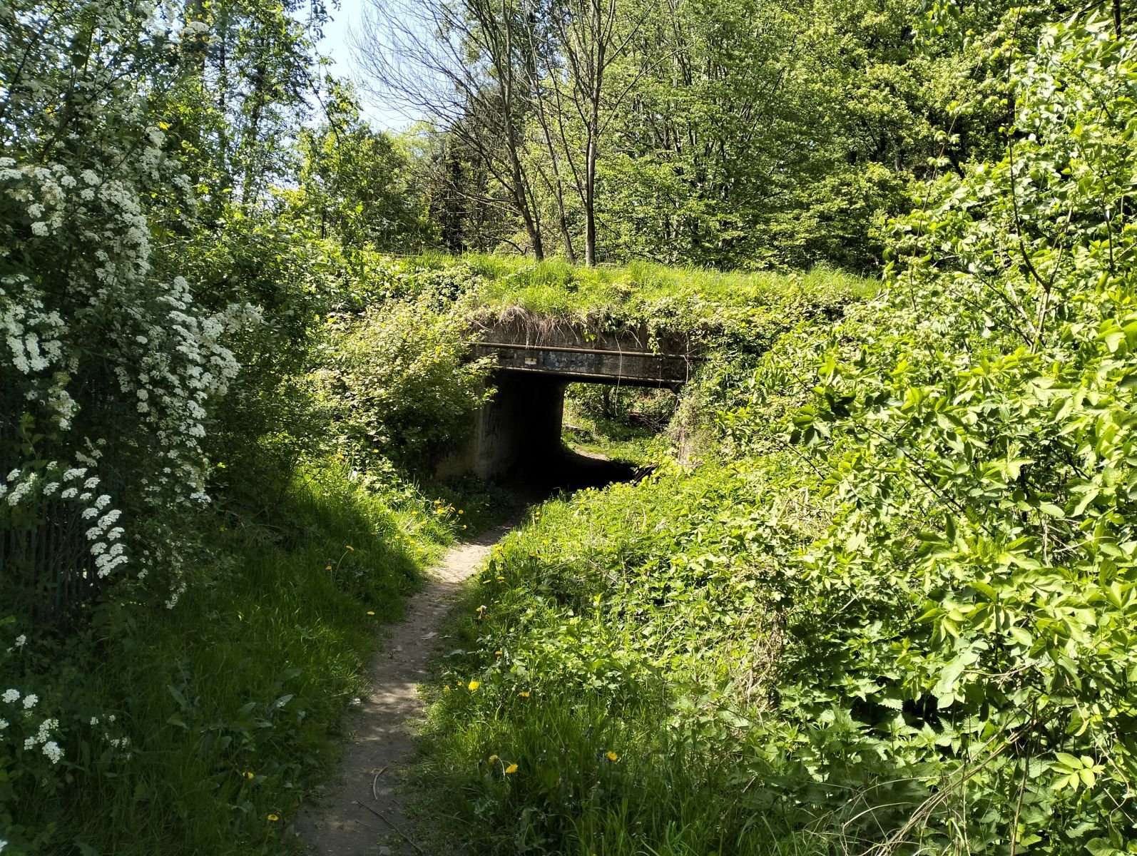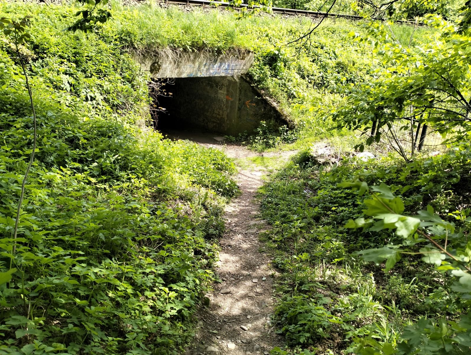 No niesamowite. Pierwszy raz spotykamy się z tak ciekawym rozwiązaniem. Jedna z najlepszych atrakcji tej wyprawy, przejście pod torami gdy akurat jechał pociąg. Teraz znowu idziemy w górę.