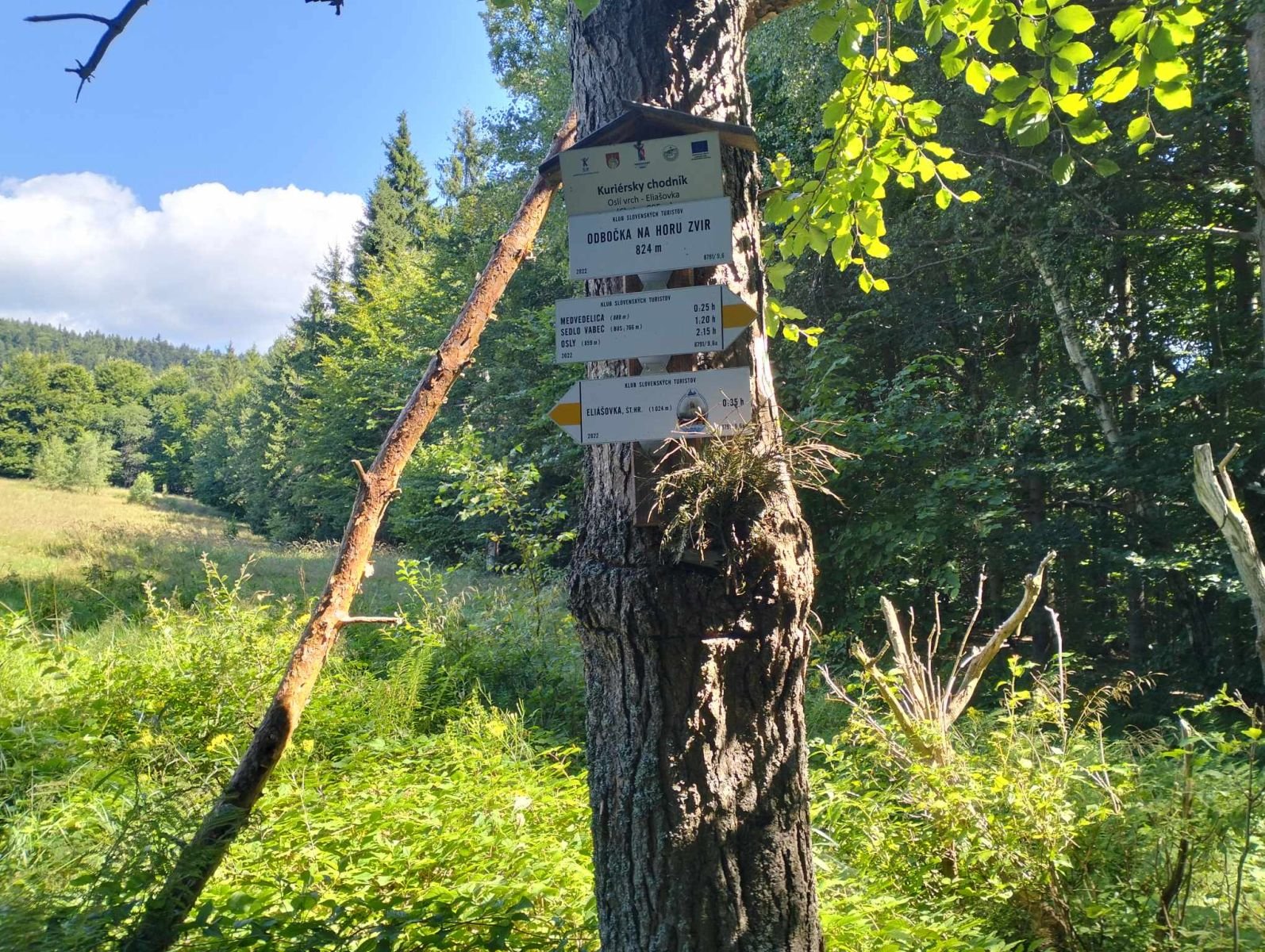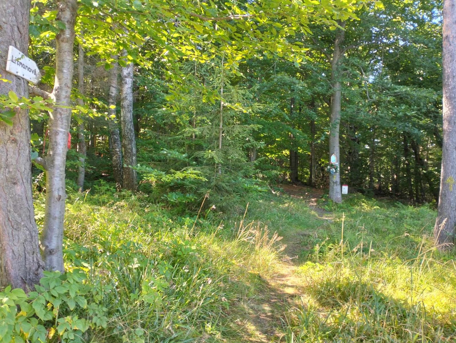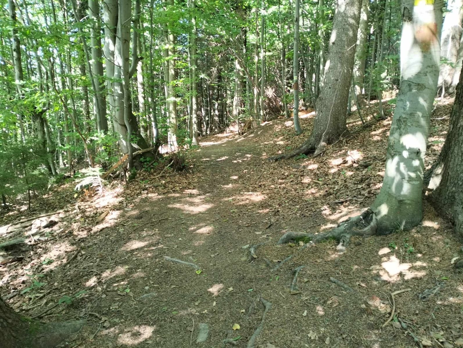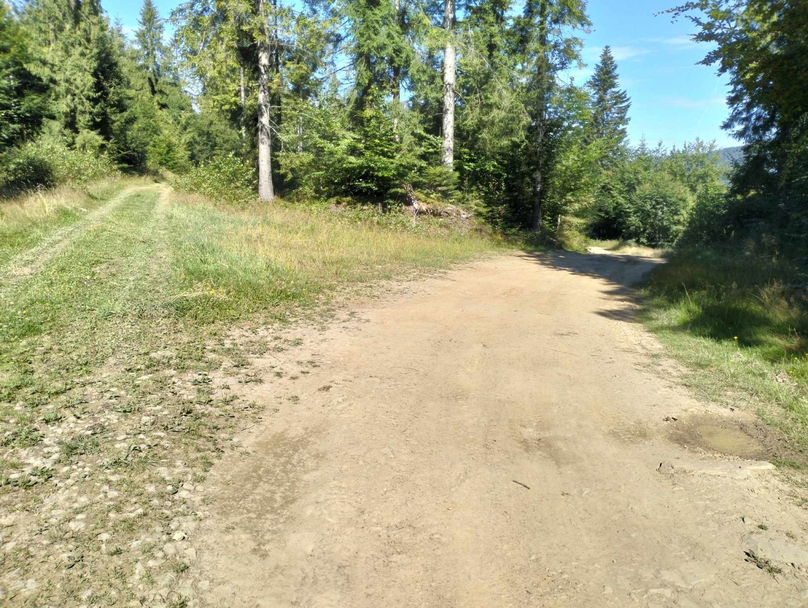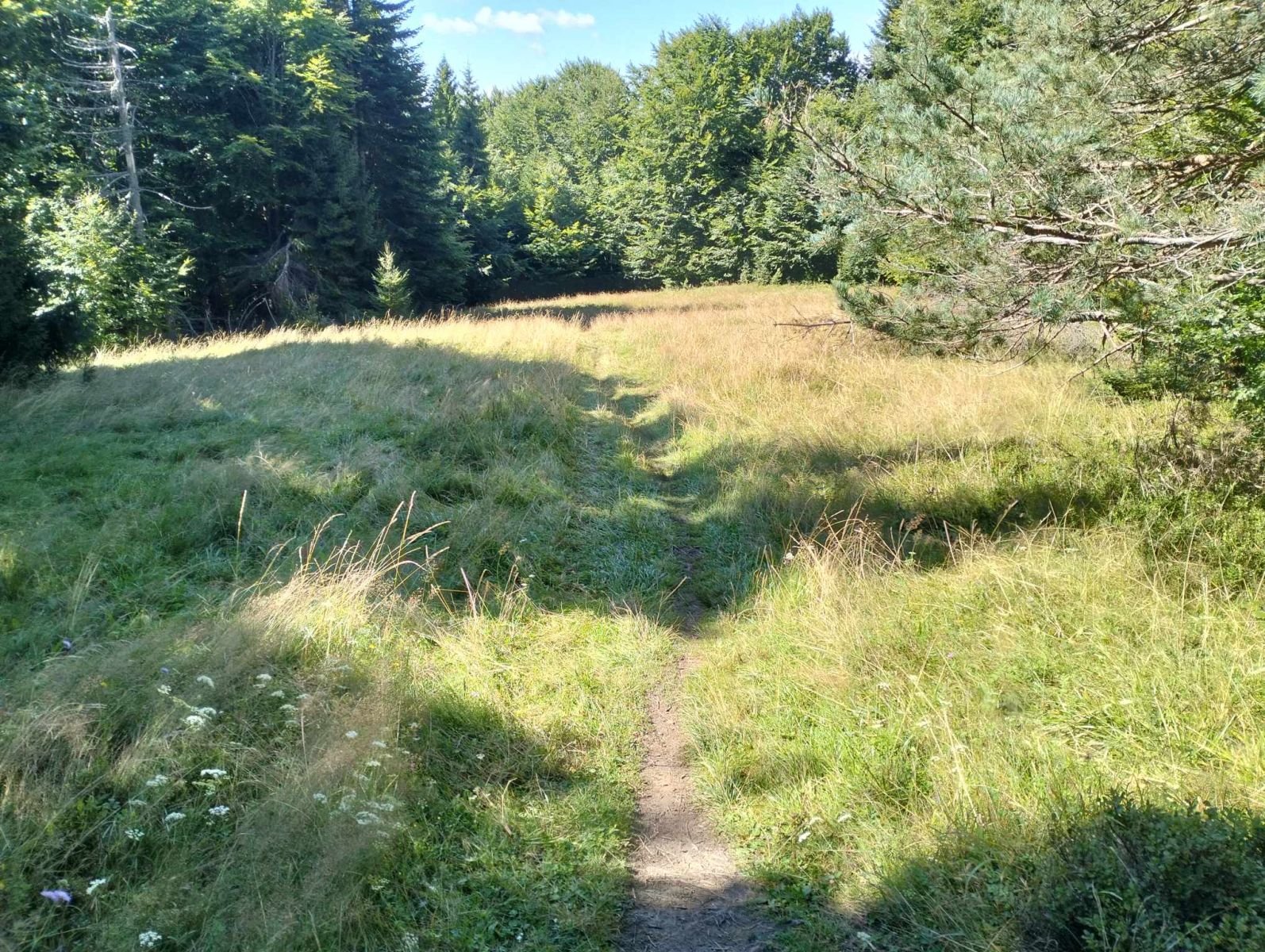 Tutaj prowadzi ścieżka, jednak większej ochoty nie mieliśmy, by nią iść. Z tego miejsca mieliśmy powrócić do Polski i kierować się na Kosarzyska, jednak przy tym upale jednak lepiej było schodzić w dół niż z powrotem, stopniowo piąć się ku górze.