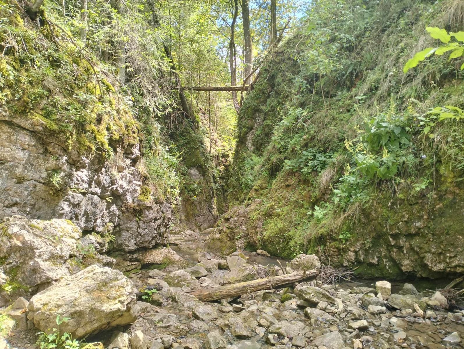 Z całego wąwozu, mającego długość 0,5 km, najpiękniejszy jest dolny odcinek długości 150 m, w którym kanion przebiega pod skalistą Łysą skałą./pieniny.sk/