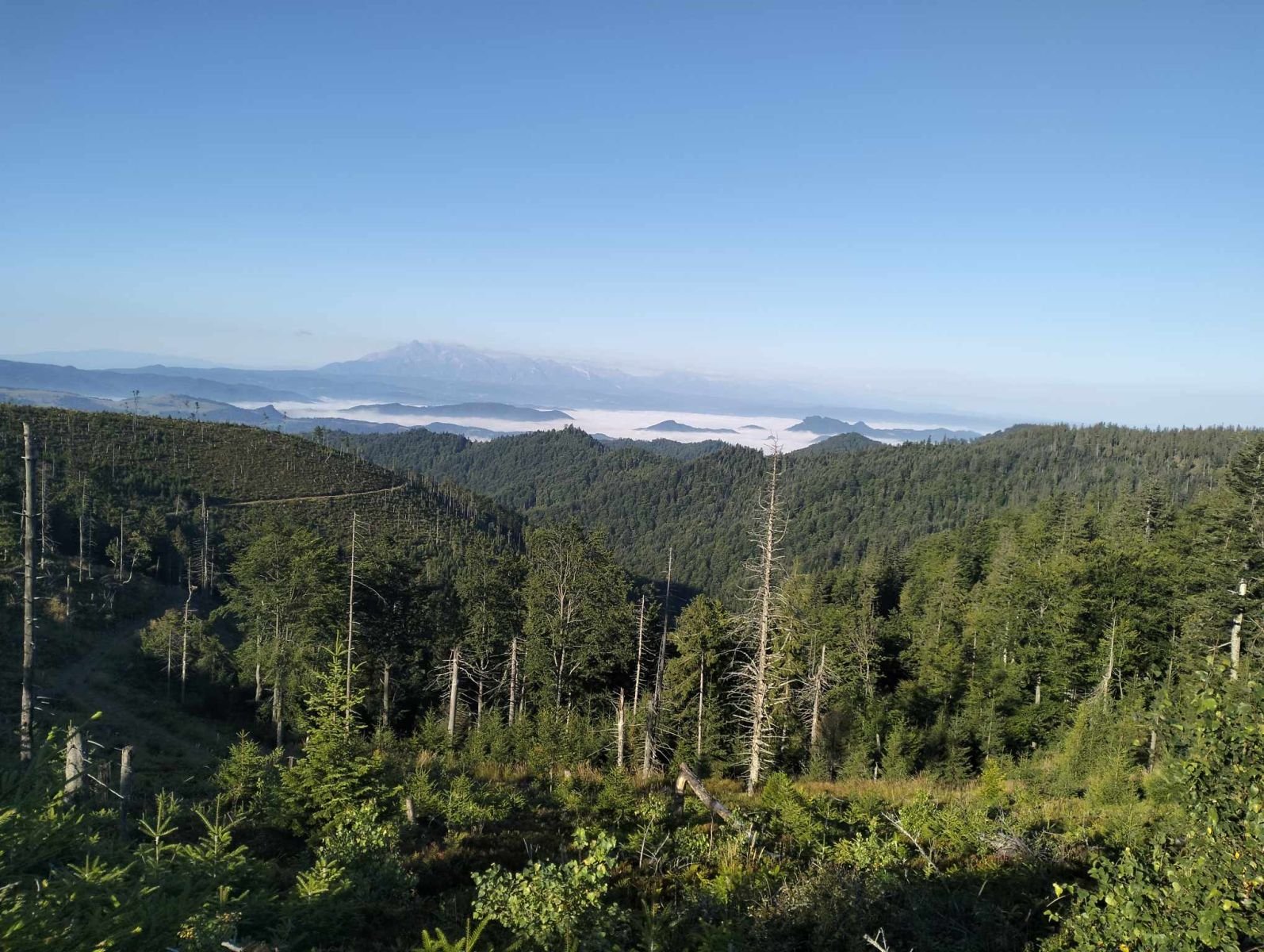 Bardzo rzadki widok na tym szlaku, by na terenie Słowacji szło się przez gęsty las. Tu raczej wędruję się przez otwarte polany.