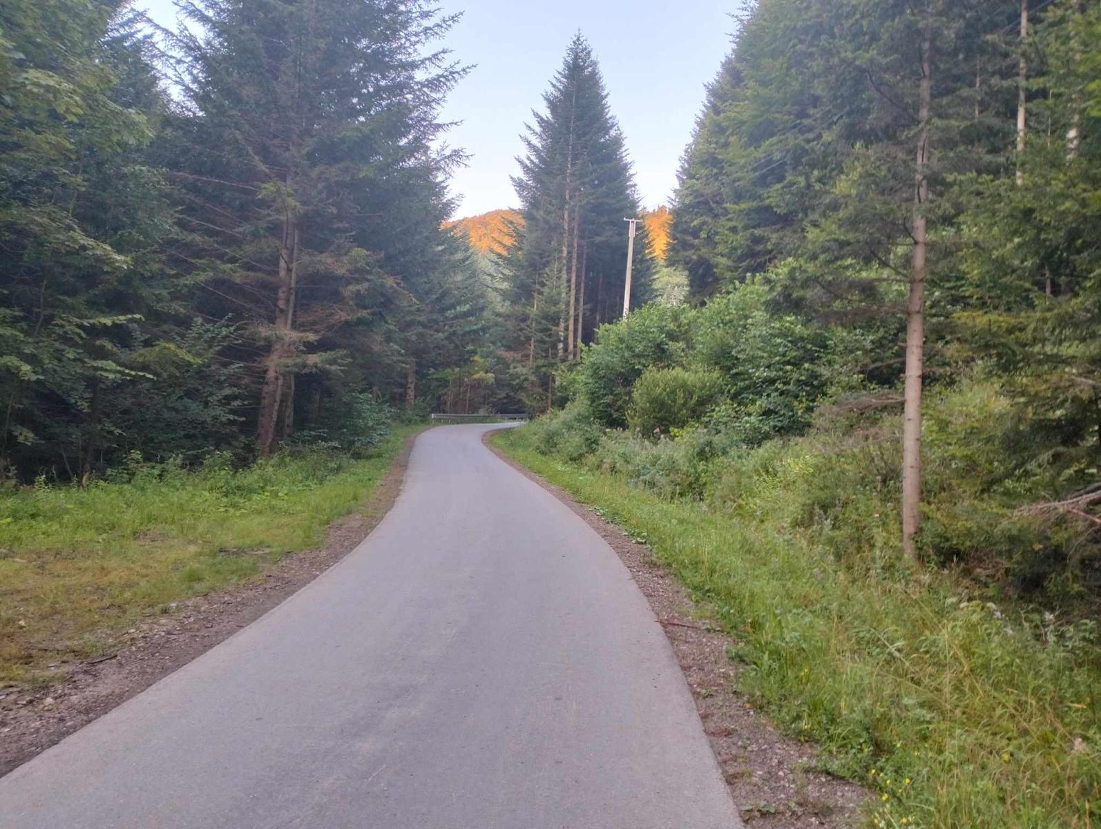 Bezchmurnie o poranku chodź idąc drogą asfaltową z Gabonia, słońce łapiemy dopiero na górze. Widać to na zdjęciu - góry w słońcu. Wyprawę zakończyliśmy w Starej Lubovni, ale plany były jednak inne.... o czym w dalszej części. Godzina 5:30 w lesie o tej porze cisza... na wiosnę był piękny śpiew ptaków, teraz już tego nie ma... idzie się przyjemnie, mijamy rowerzystę z Jazowska... o której Pan wyjechał ?