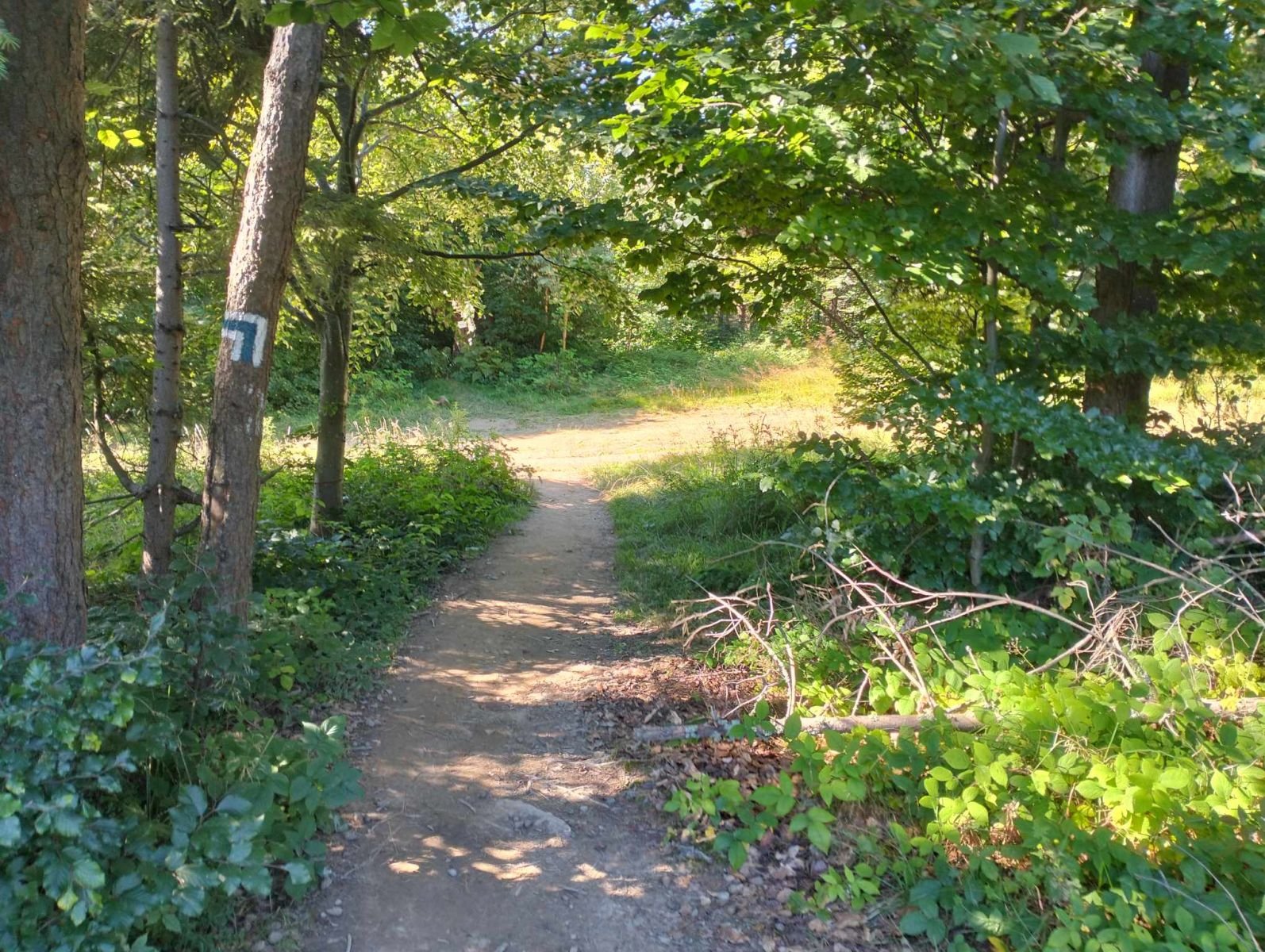 Jakby nie ten znak można, by było pomylić się i iść prosto. Bardzo fajnie, że na szlaku ktoś o tym pomyślał. Troszkę pod górę, by się wdrapać na wieżę ale tragedii nie było. Zawsze przed każdą wieżą widokową jest podejście:) tutaj aż tak stromo nie było - całkiem łagodnie.